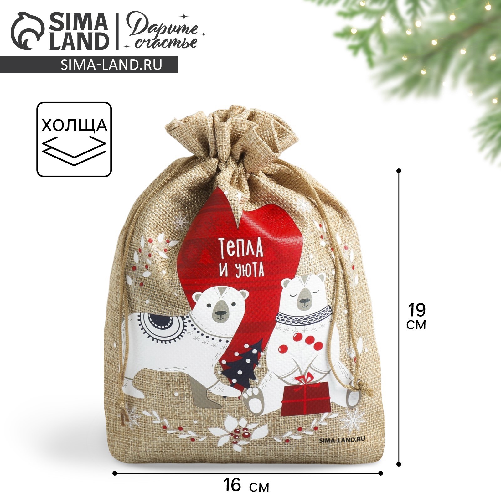 Мешочек новогодний подарочный с термонаклейкой «тепла и уюта», 16 х 24 см +/- 1.5 см. Размер товара может варьироваться до 1,5 смЦвет:Красный|Цвет:Бежевый|Размер, см:16 х 24|Допустимый вес вложения, г:800|Тематика:Новогодняя|Рисунок:Да|Символ года:Нет|Тематика праздника:Новый год|Материал:Холща|Страна:Китай  развернуть описание ▼