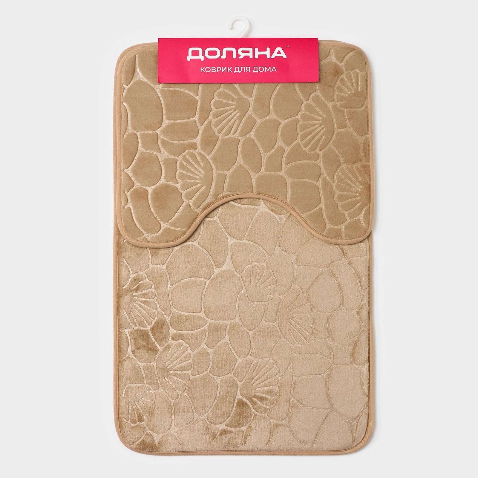 Набор ковриков для ванной и туалета доляна «галька, ракушки», 2 шт, 39x40 см, 50x80 см, цвет бежевый
