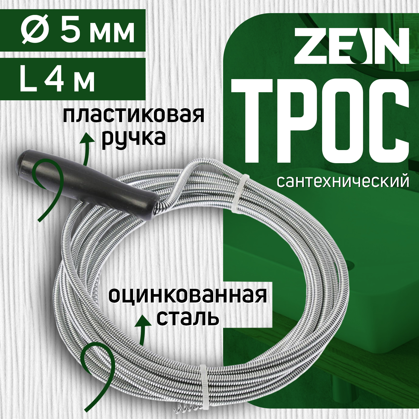 Трос сантехнический Zein Engr, оцинкованный, с ручкой, D=5 мм, L=4 м