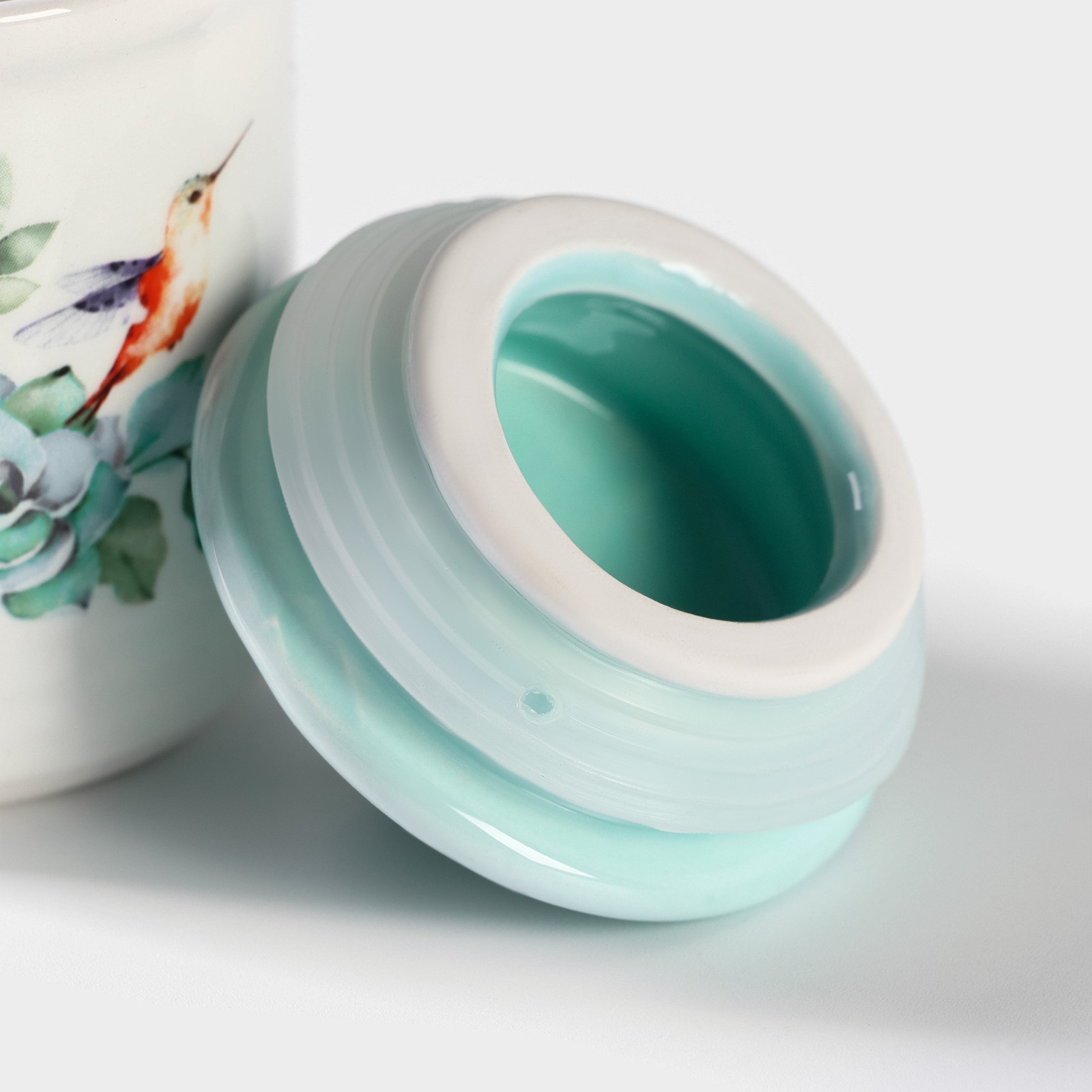 Сахарница доляна «пташка», 150 мл, d=7 см. Сахарница Доляна «Пташка» изготовлена из качественного доломита. Благодаря оригинальному дизайну изделие гармонично дополнит сервировку стола, а также прекрасно подойдёт в качестве подарка. Посуда выполнена в приятных тонах, что позволит вписать её практически в любой интерьер. Доломитовая сахарница универсальная и подходит не только для сахара, но и для мёда, конфет, изюма, орехов и многого другого. Не рекомендуется мыть посуду в посудомоечной машине и использовать в СВЧ-печи. В качестве ухода использовать мягкие губки и неабразивные чистящие средства. Цвет: Белый Цвет: Голубой Форма: Цилиндрическая В наборе, шт.: 1 Объём, мл: 150 Тематика: Птицы Тематика: Цветочно-растительная Материал: Керамика (Доломит) Герметичная крышка: Да Можно мыть в посудомоечной машине: Нет Можно использовать в СВЧ-печи: Нет Текстура: Гладкая Особенности: Без особенностей Матовая поверхность: Нет Запрет реализации по сегментам: 00000000485  развернуть описание ▼