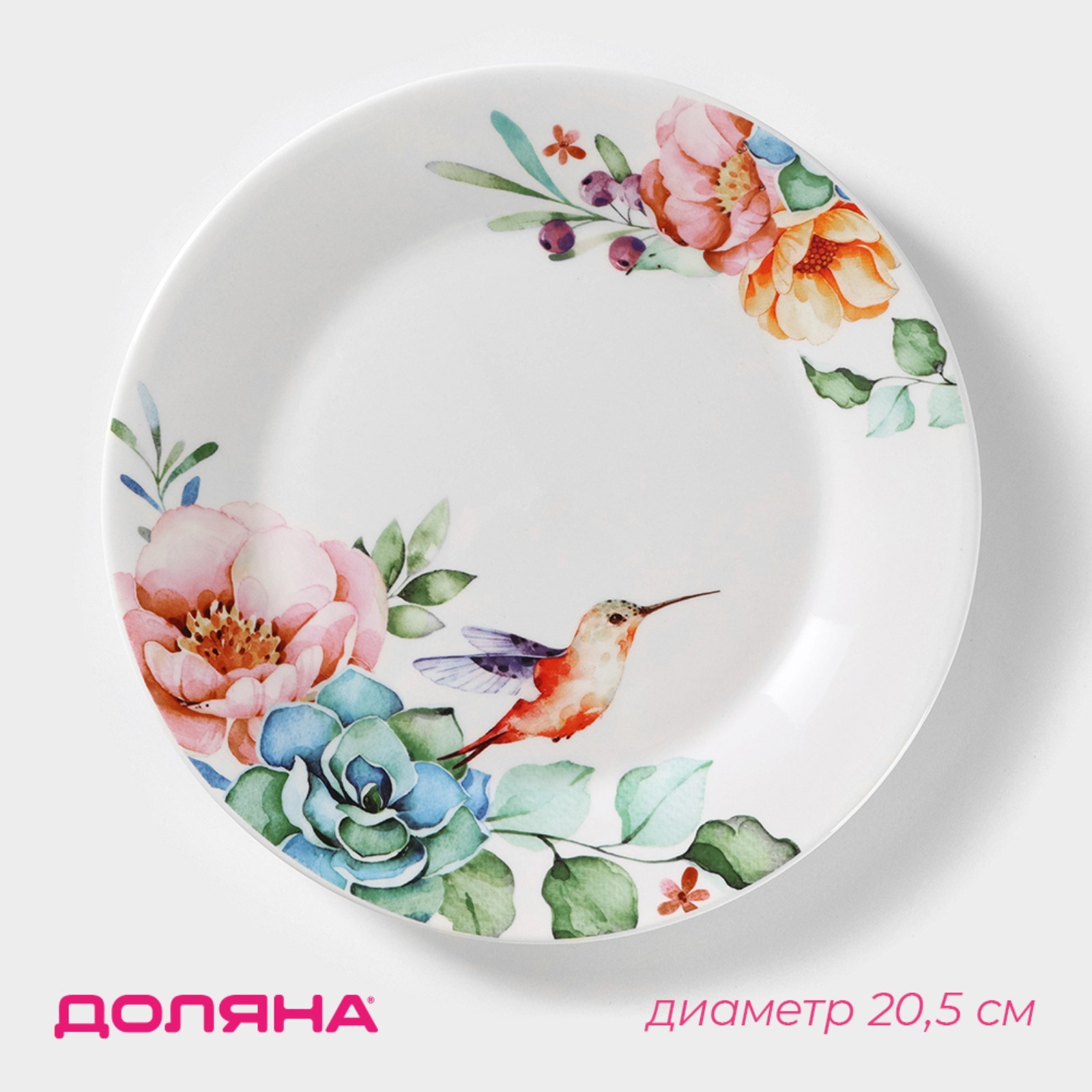 Тарелка фарфоровая десертная доляна «пташка», D=20,5 см, цвет белый