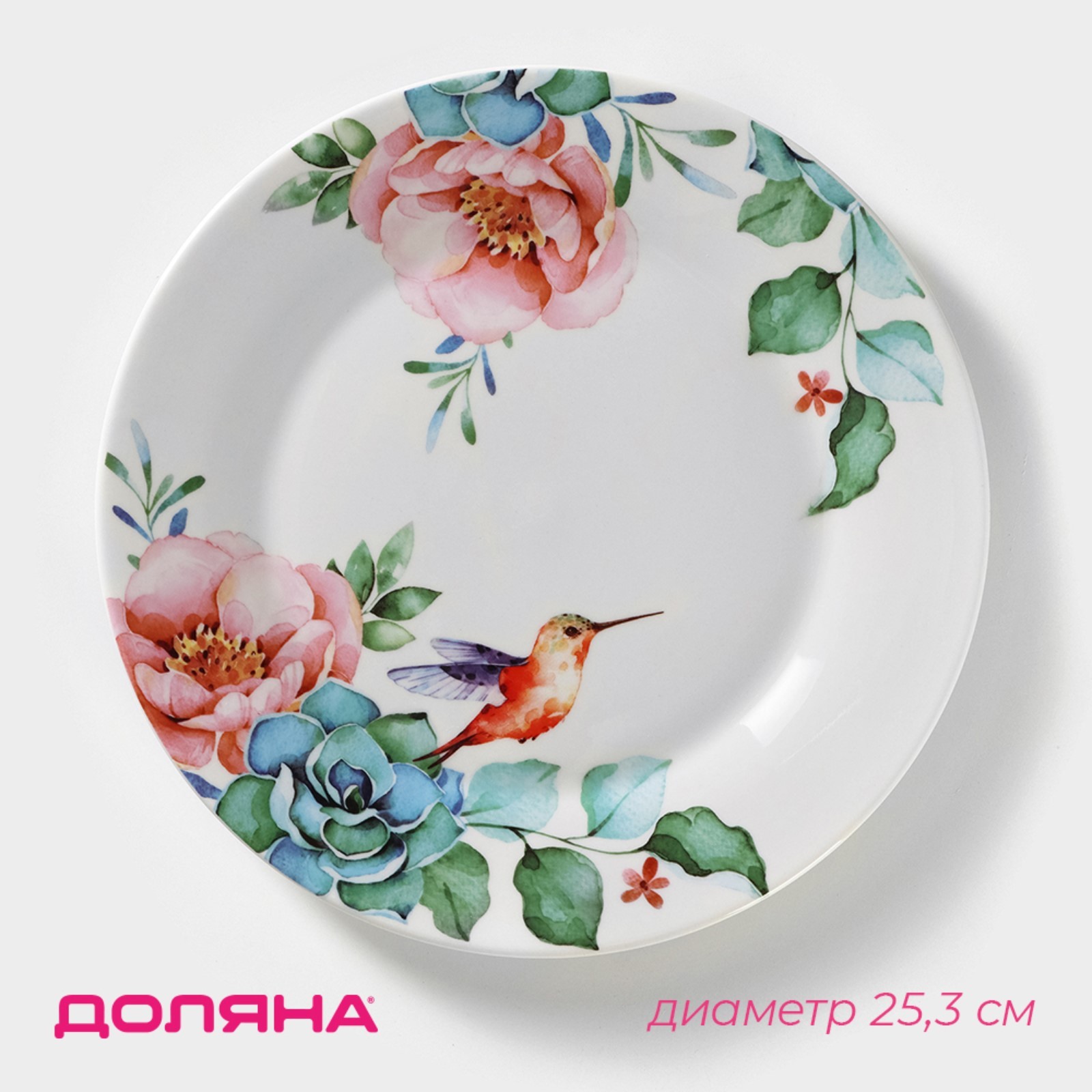 Тарелка фарфоровая обеденная доляна «пташка», D=25,3 см, цвет белый