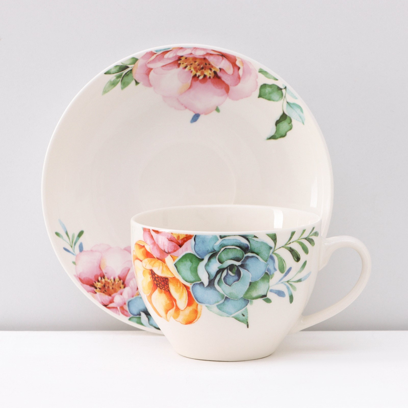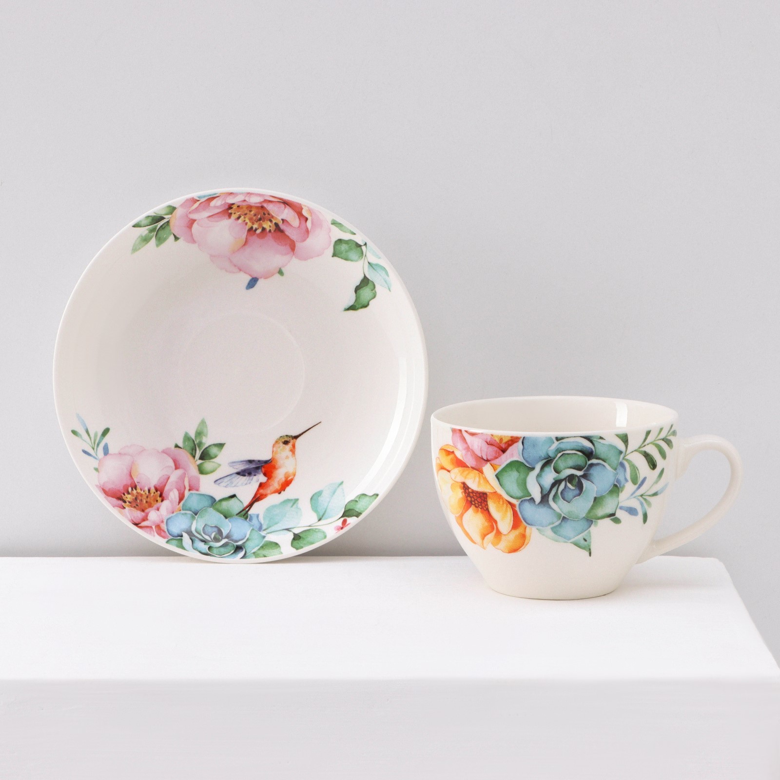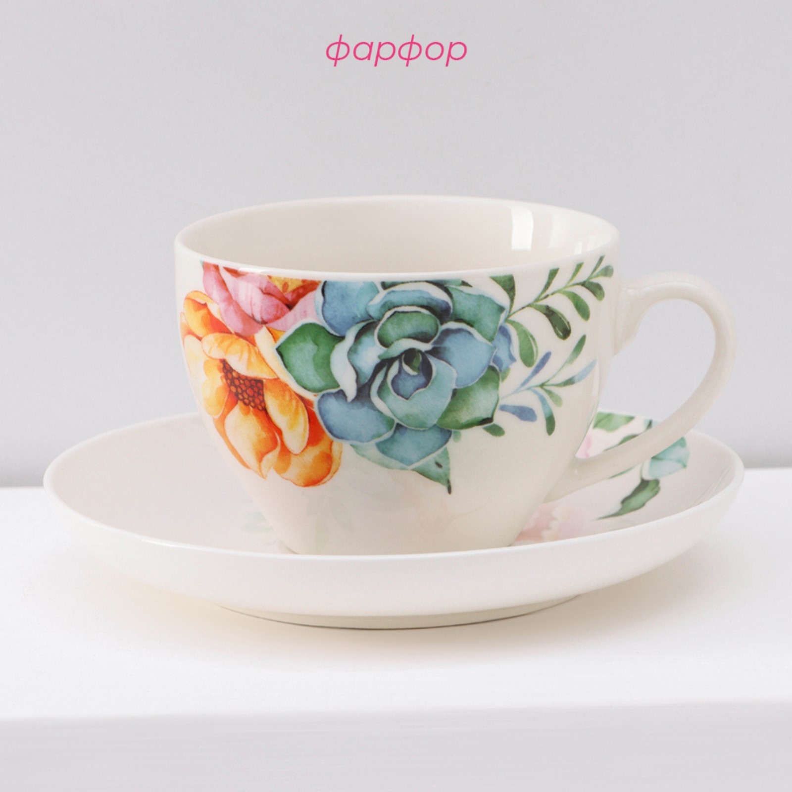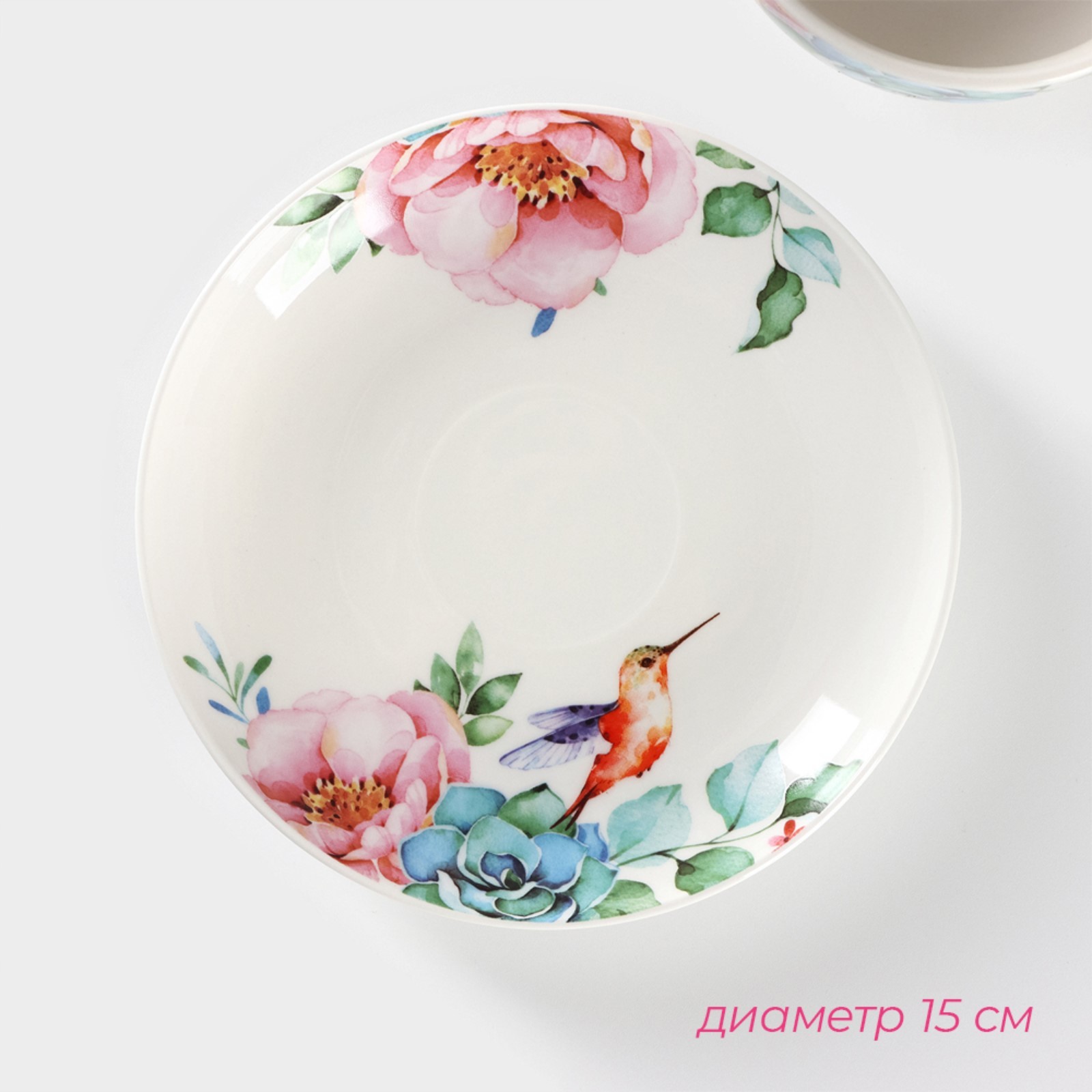Сервиз фарфоровый чайный доляна «пташка», 12 предметов: 6 чашек 250 мл, 6 блюдец D=15 см