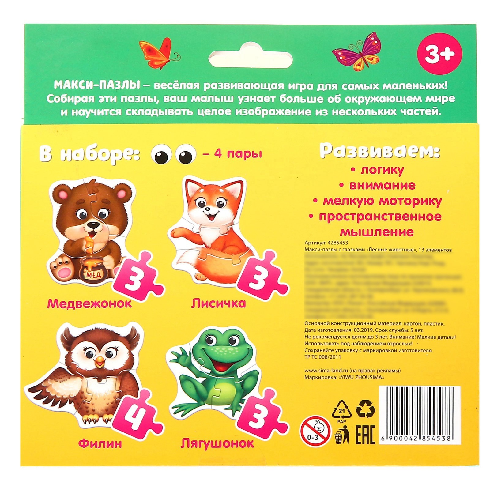 Макси - пазлы с глазками «лесные животные», 4 пазла, 13 деталей