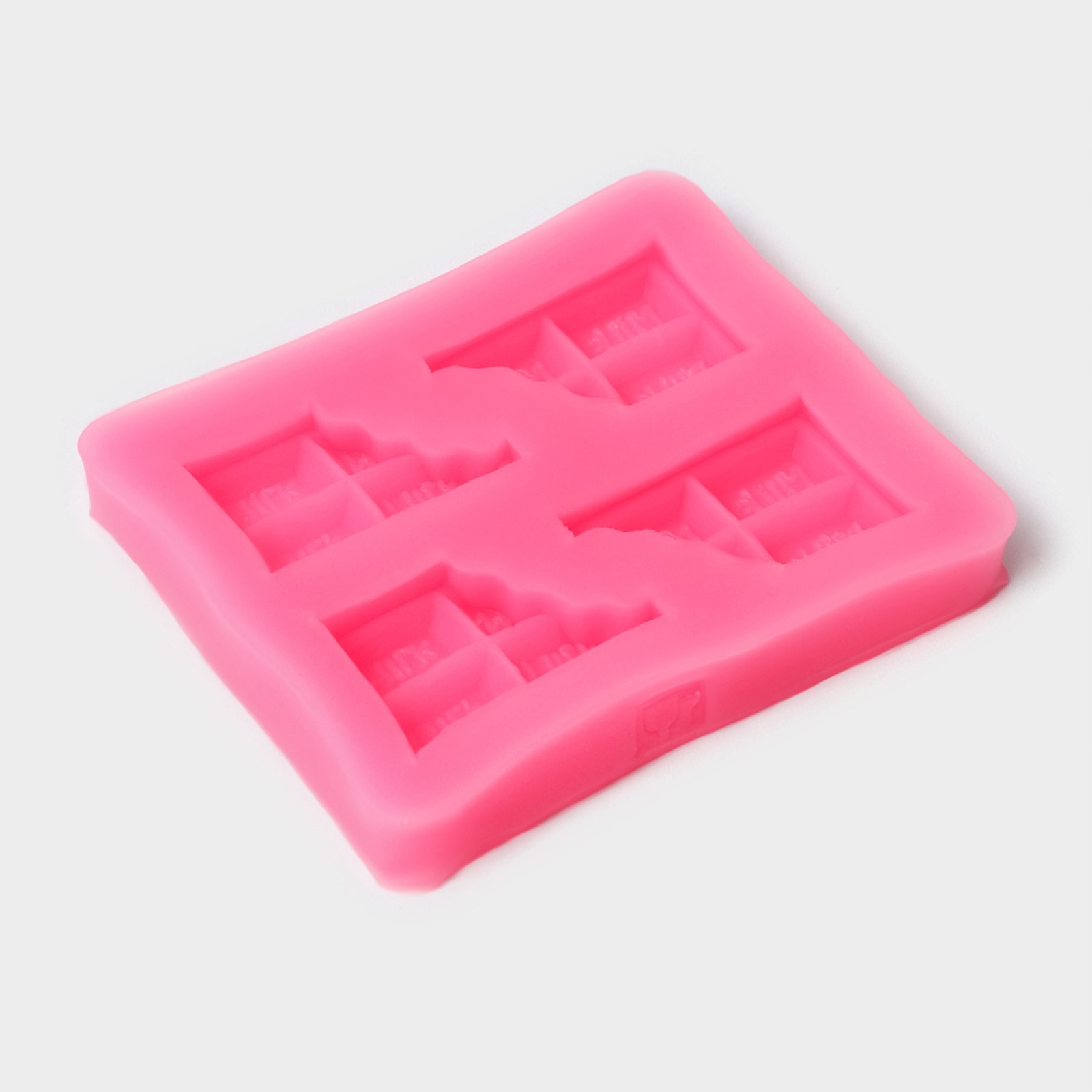 Молд «плитка шоколада», силикон, 6,9x6 см, цвет розовый