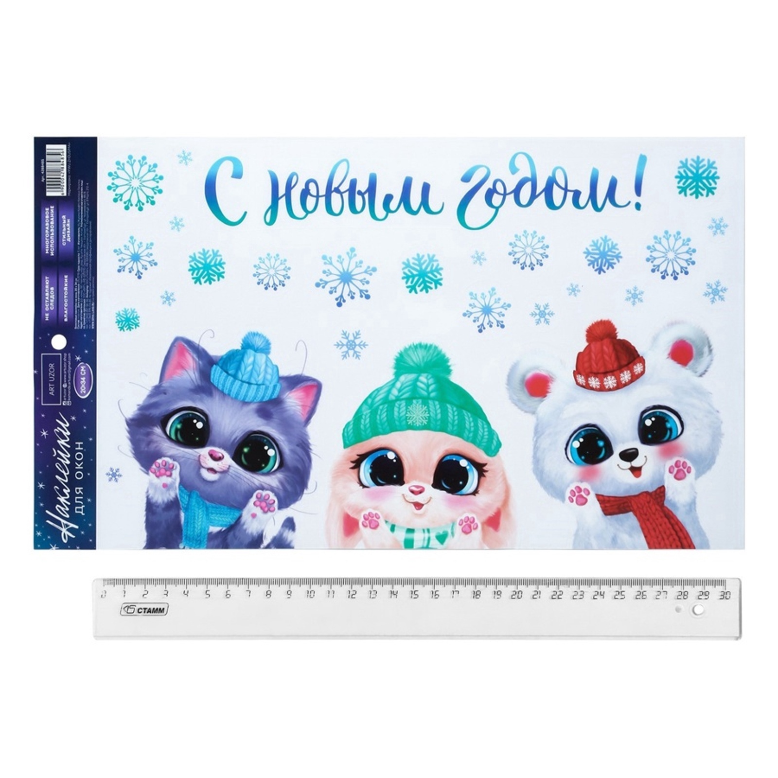 Наклейки на окна многоразовые «с новым годом», зверята, 20 х 34 см
