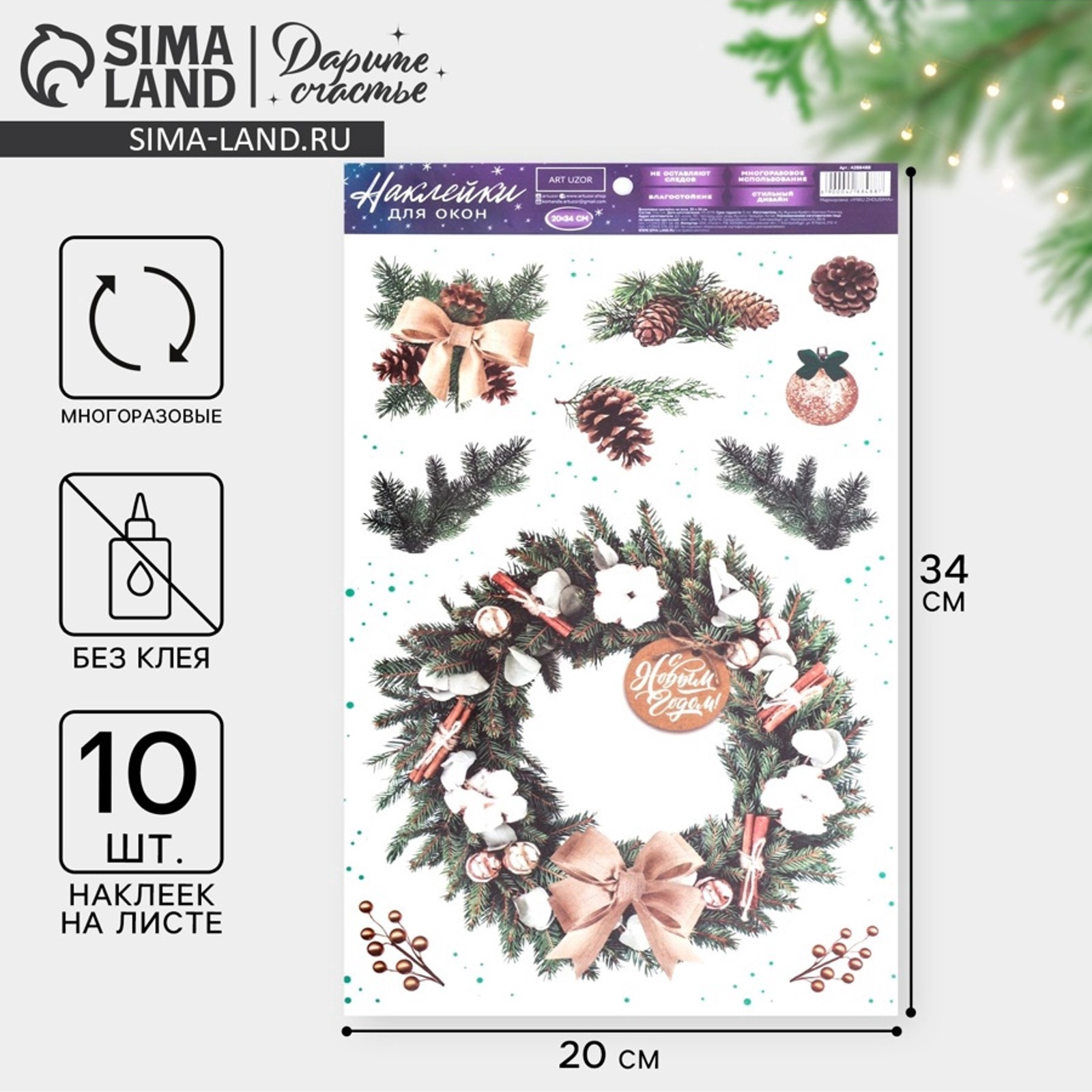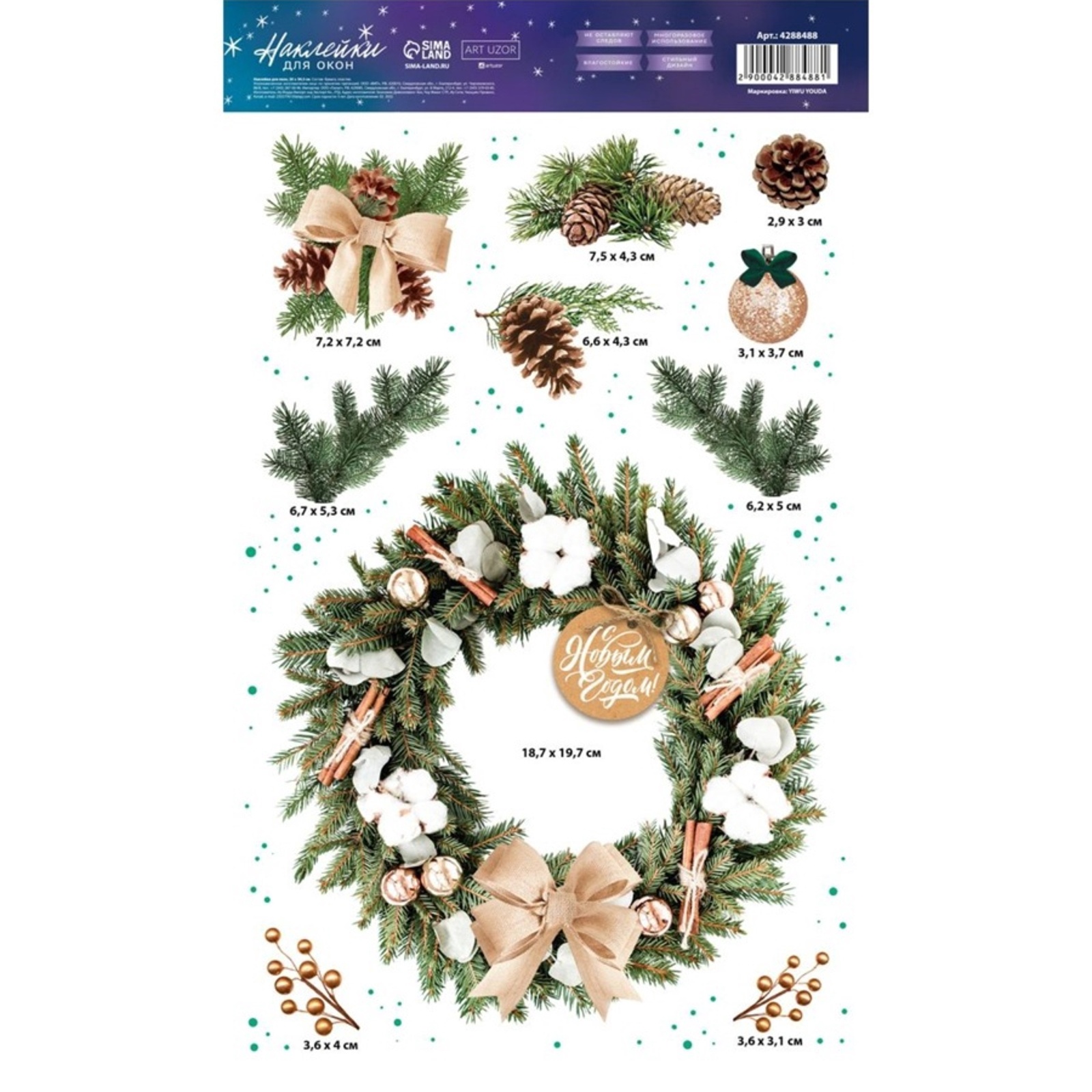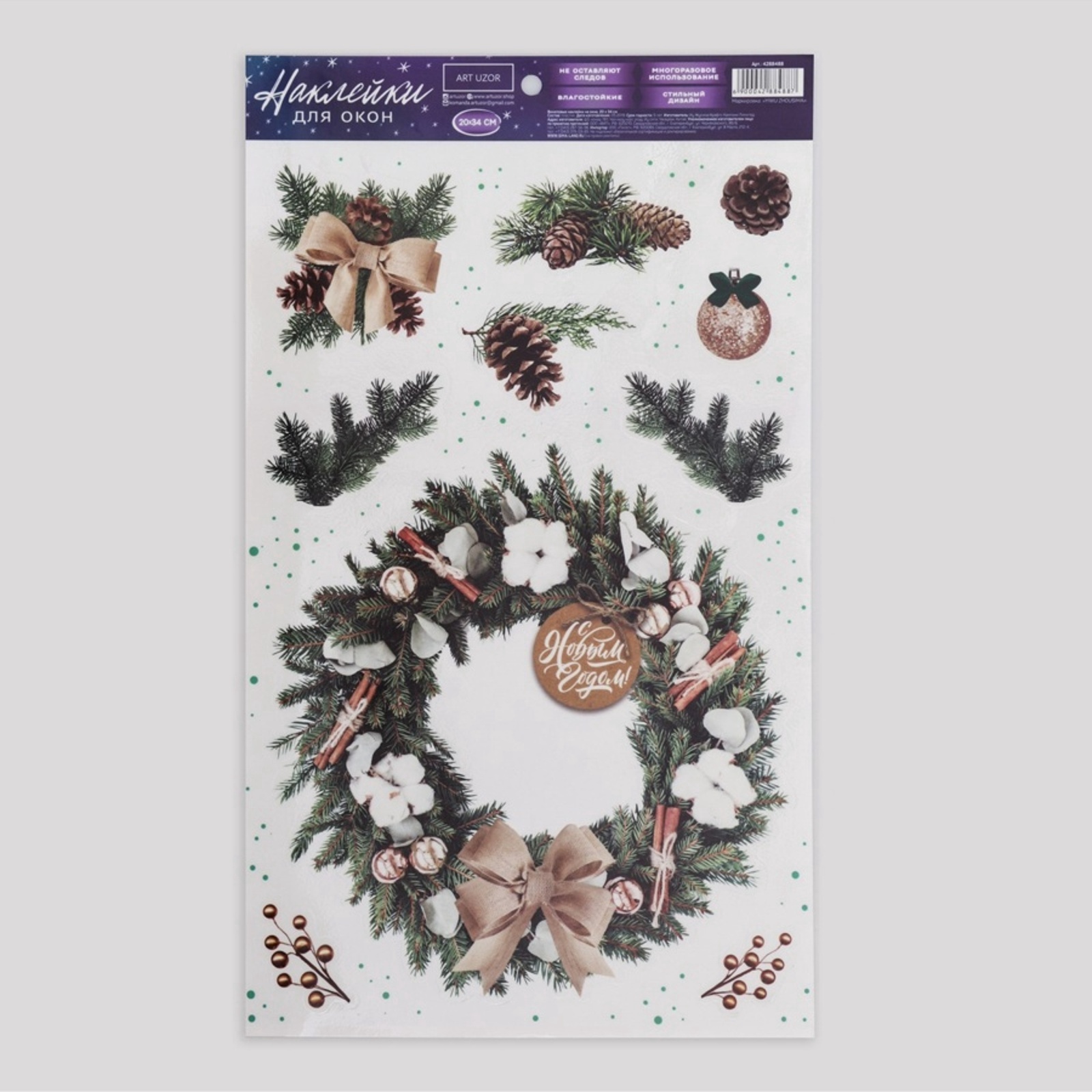 Наклейки на окна многоразовые «новогодний венок», 20 х 34 см