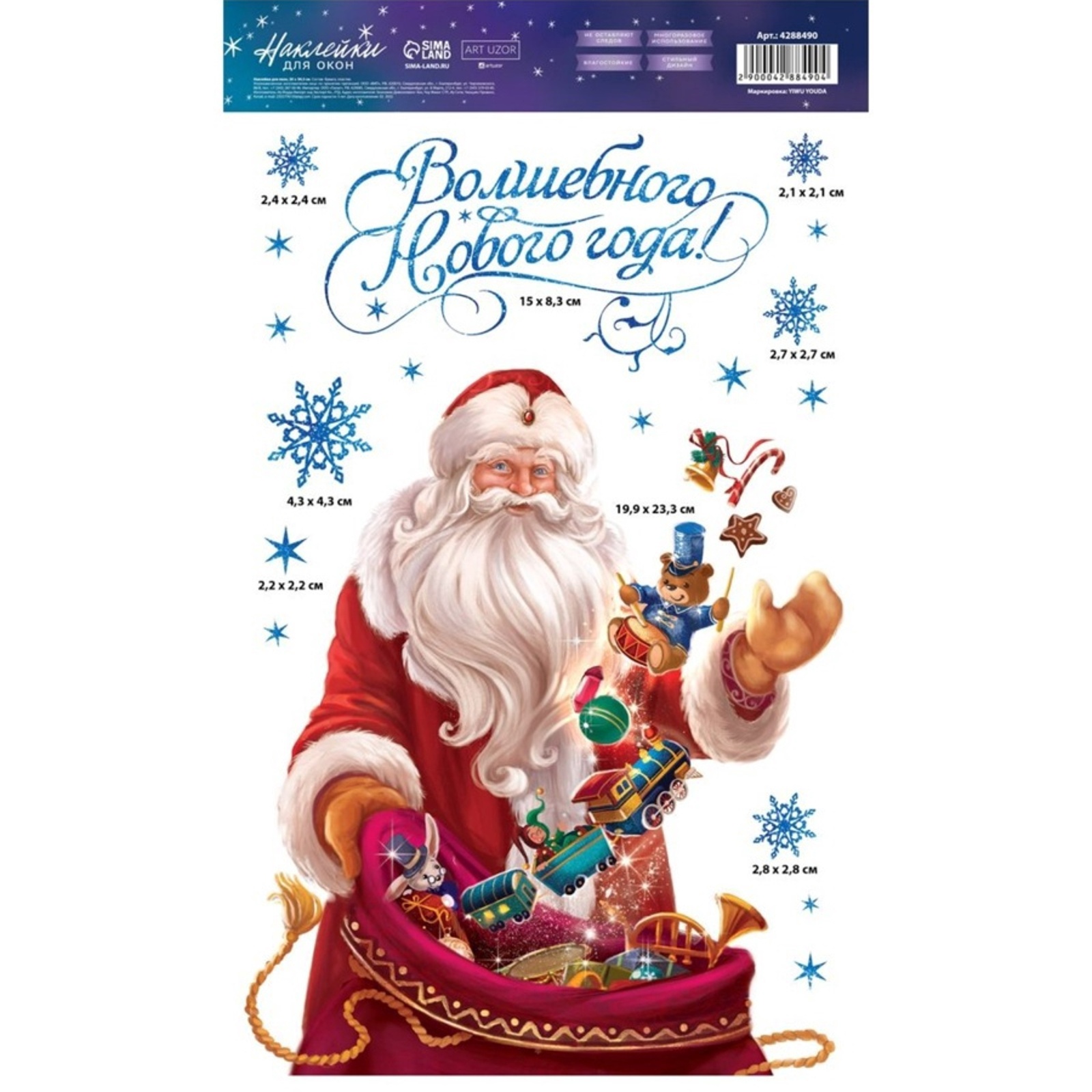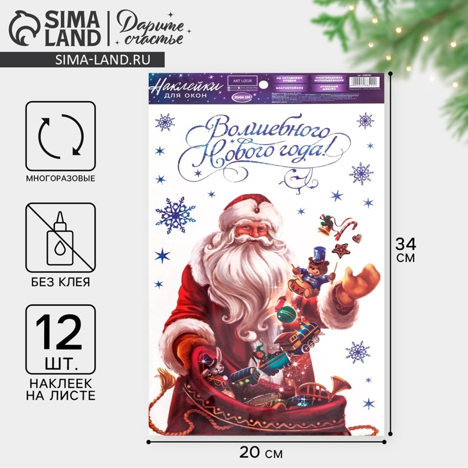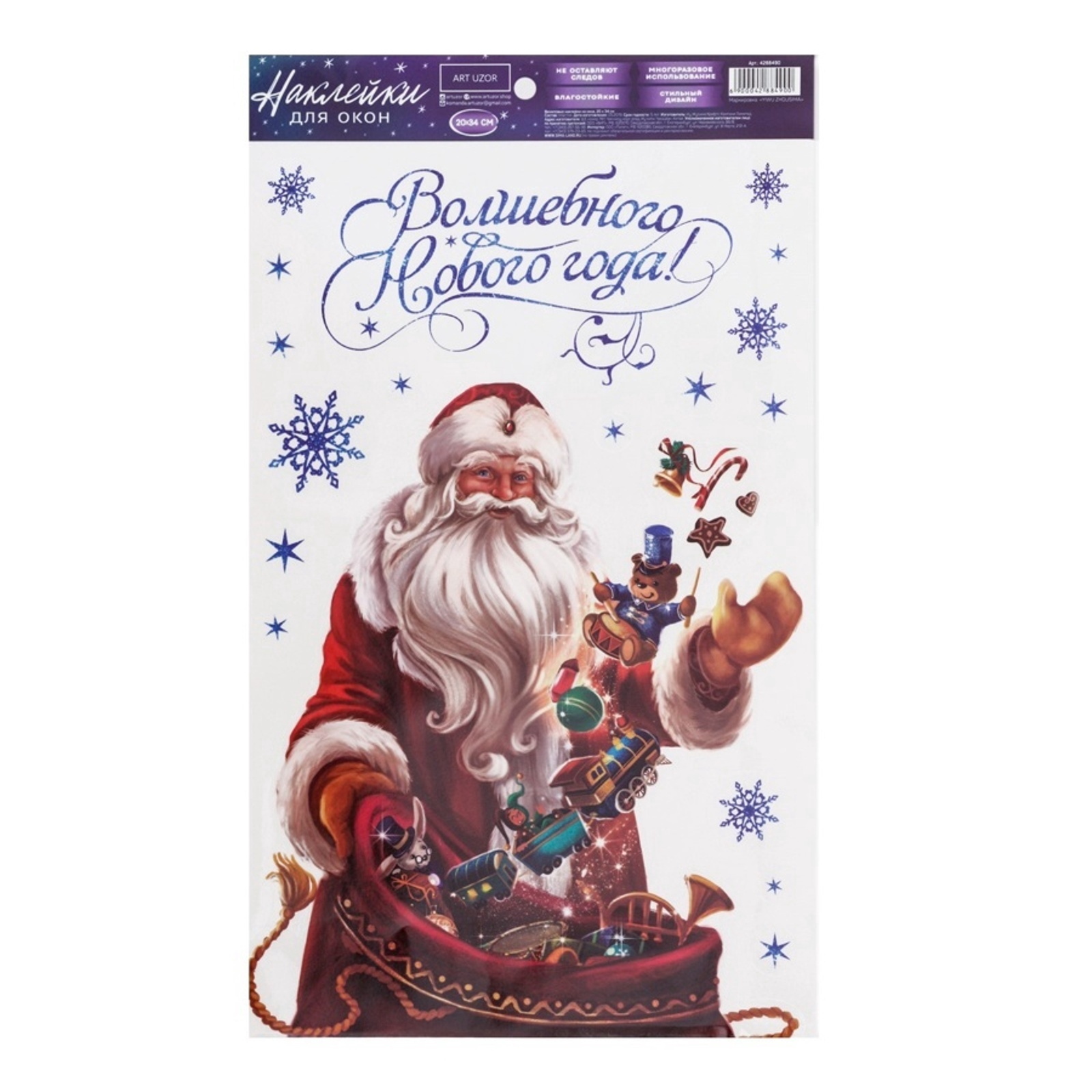 Наклейки на окна многоразовые «волшебного нового года», 20 х 34 см