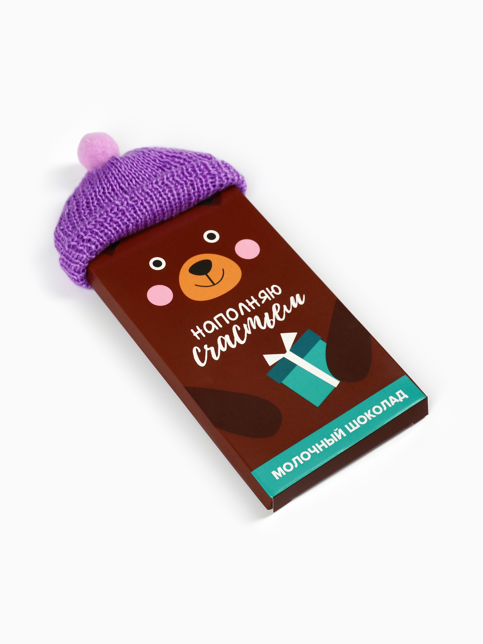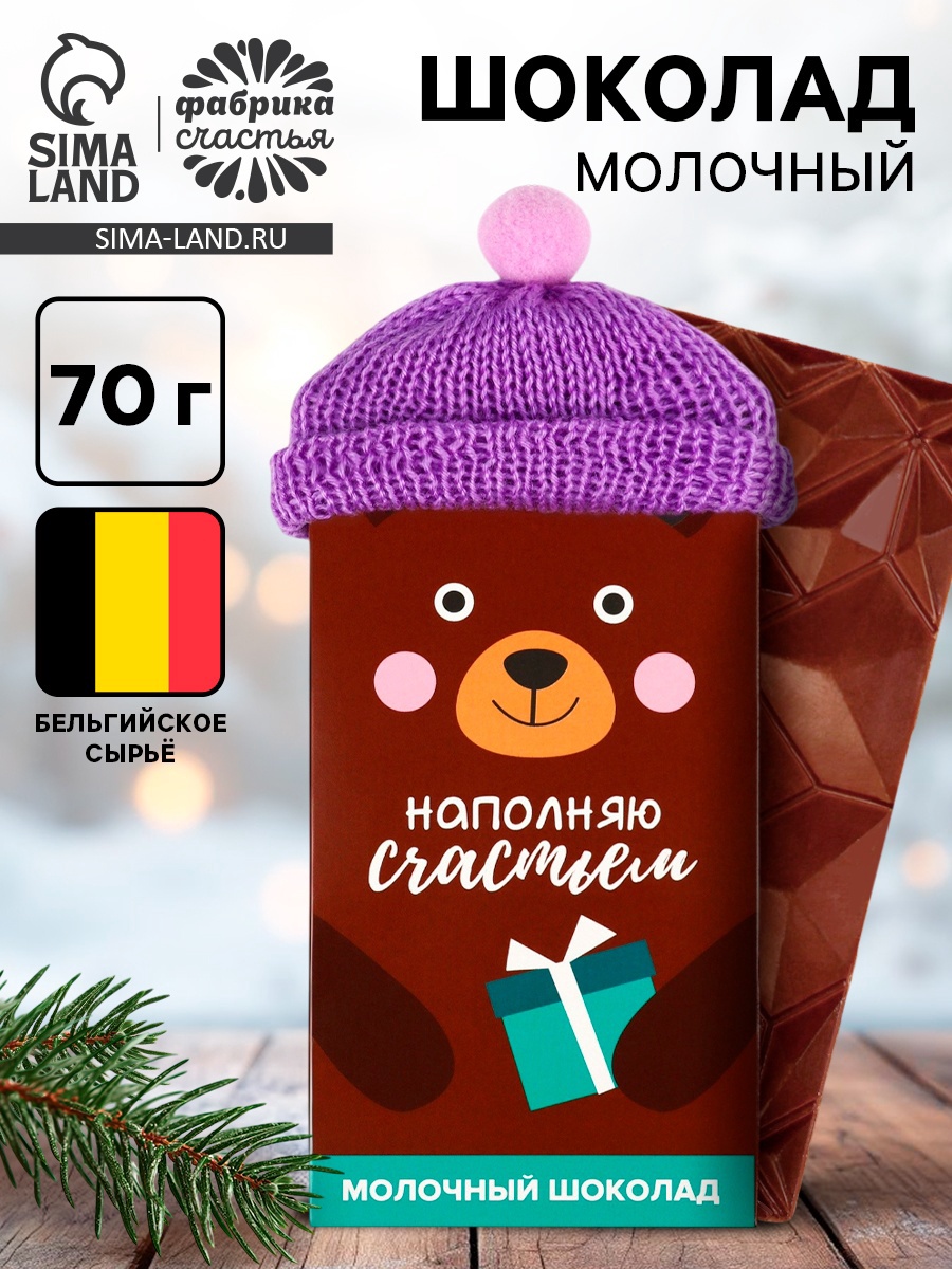 Шоколад новогодний молочный «наполняю счастьем»: в шапочке, 70 г.. При оформление заказа, просим запрашивать актуальные сроки годности у менеджера Состав: сахар, какао - масло, сухие молочные продукты, какао тёртое, какао - порошок, эмульгаторы (лецитин соевый - Е322, PGPR), ароматизатор пищевой Ванилин. Содержание какао - продуктов: не менее 37%. Пищевая ценность в 100 г: белки - 4 г, жиры - 35 г, углеводы - 56 г. Энергетическая ценность в 100 г: 560 ккал/2350 кДж. Срок годности: 12 месяцев Масса нетто: 70 г Белки, г:4|Жиры, г:35|Углеводы, г:56|Вес нетто, г:70|Энергетическая ценность, ккал:560|Символ года:Нет|Тематика праздника:Новый год|Форма:Плитка|Вид шоколада:Молочный|Добавки:Без добавок|Страна:Россия  развернуть описание ▼