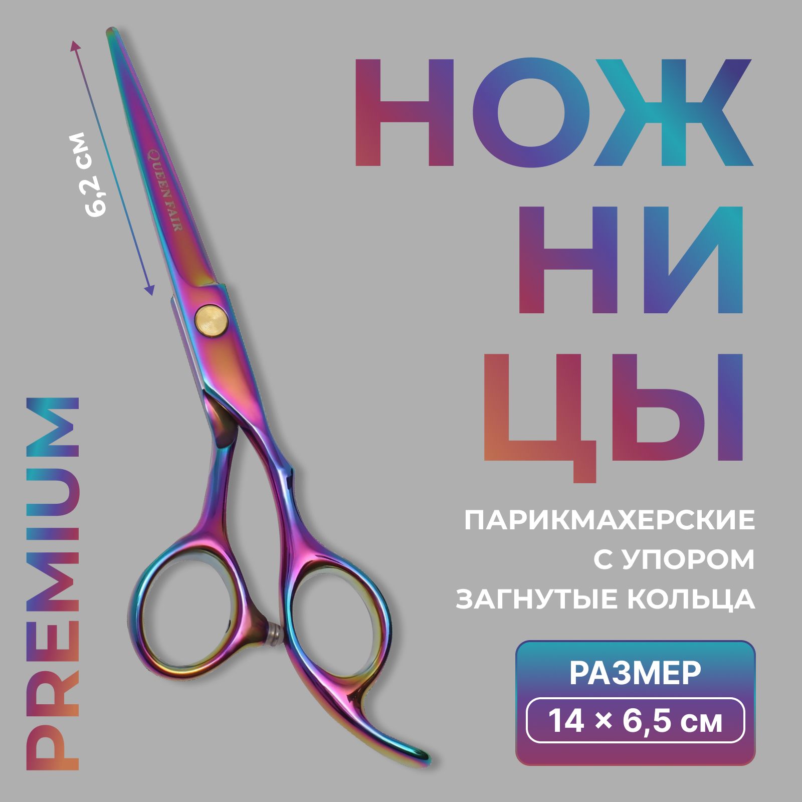 Ножницы парикмахерские с упором premium, загнутые кольца, лезвие — 6.2 см, хамелеоны. Главный инструмент парикмахера — это ножницы. Именно поэтому при их выборе следует обращать внимание на удобную конструкцию, а также материал, из которого изготовлено изделие. Металлические хромированные ножницы служат дольше аналогов без покрытия, устойчивы к износу и ржавчине, сохраняют свой первоначальный внешний вид и не вызывают аллергии. Удобства в использовании добавит дополнительный упор для мизинца. Благодаря выступу из кольца ножницы легче держать и работать ими. А пластиковые накладки внутри предотвратят натирание пальцев. Размер: 5,5 см. Цвет:Разноцветный|Длина лезвия, см:5.5|Вид упаковки:Коробка|Материал:Металл|Покрытие:Хром|Назначение ножниц:Для стрижки|Регулируемые (винт):Да|Упор:Да|Размер, дюйм:5.5|Страна:Китай  развернуть описание ▼