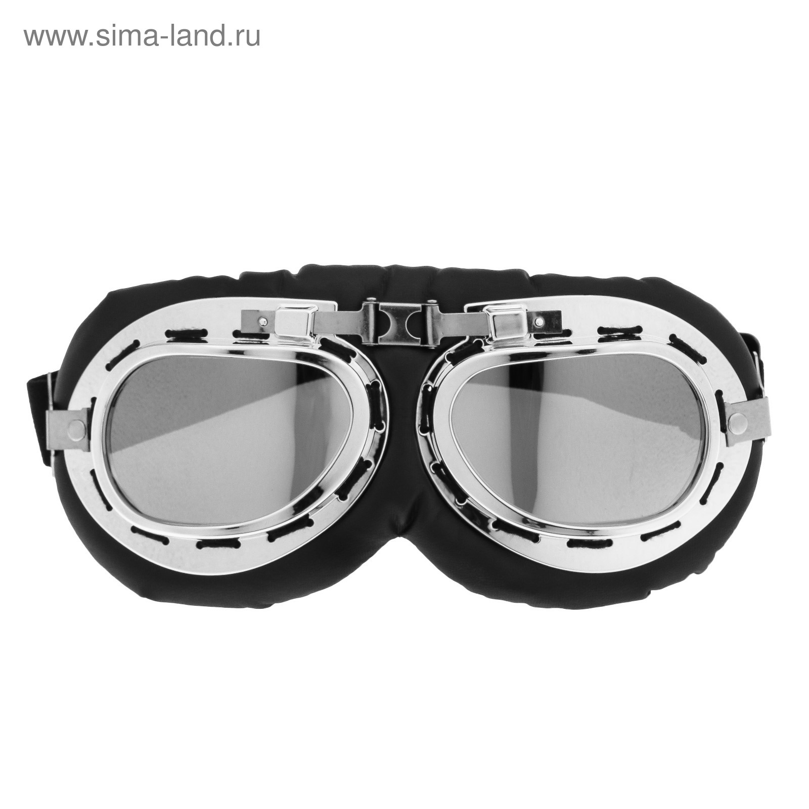 Очки для езды на мототехнике ретро, стекло хром, черные. Надежные маски-очки для мотоциклистов, лыжников и сноубордистов созданы для защиты глаз от ультрафиолетовых лучей или непогоды. Во время езды или скоростного спуска они оберегают глаза и лицо от встречного ветра, насекомых, пыли. Также очки нужны, чтобы помогать владельцу ориентироваться на трассе в любую погоду. Цвет: Чёрный Возраст: Взрослый Цвет линз: Зеркальный Функция подогрева: Нет Тип: Очки Вид стекла: Одинарное  развернуть описание ▼