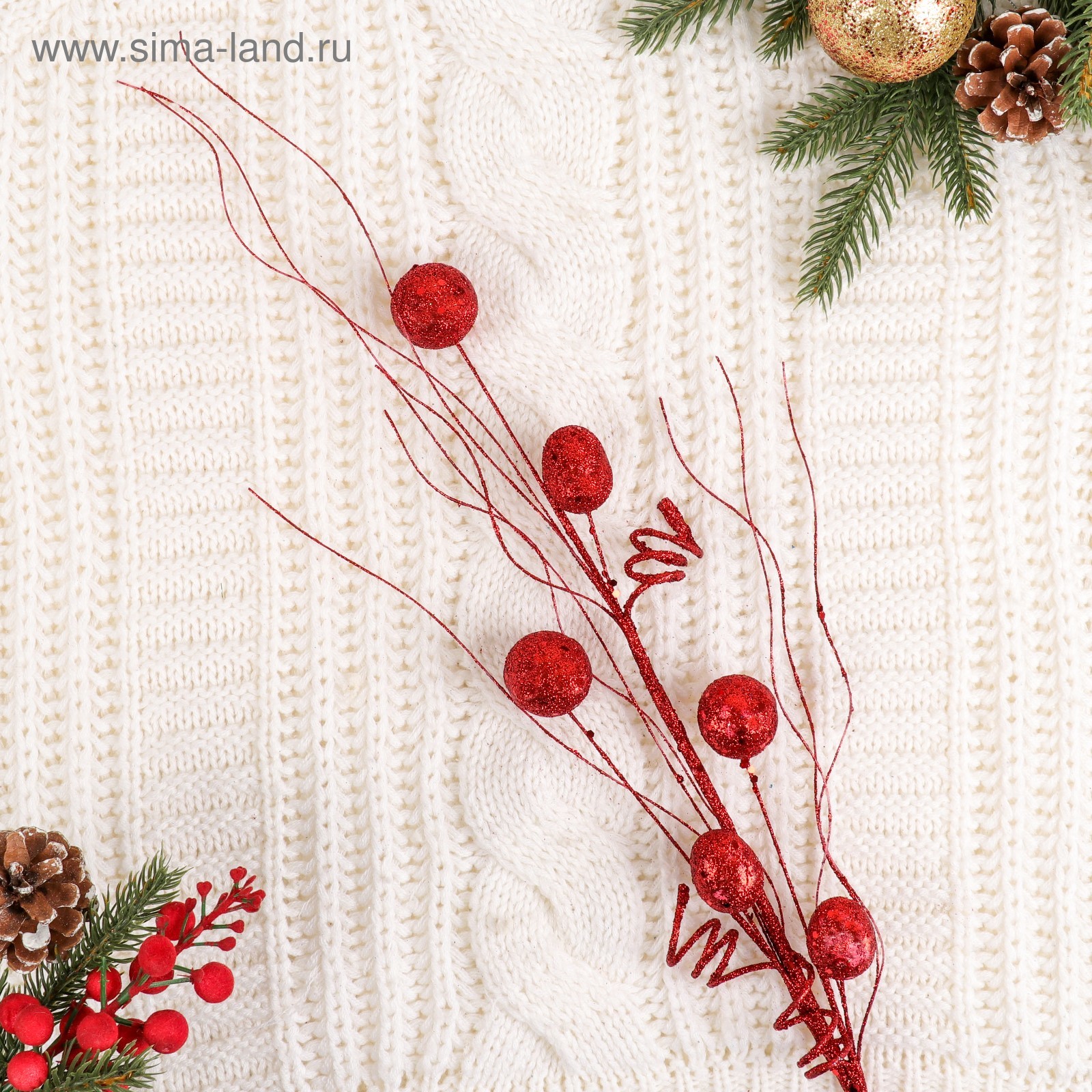 Декор «блеск», ветка с шариками завиток, D=3 см, H=66 см, микс