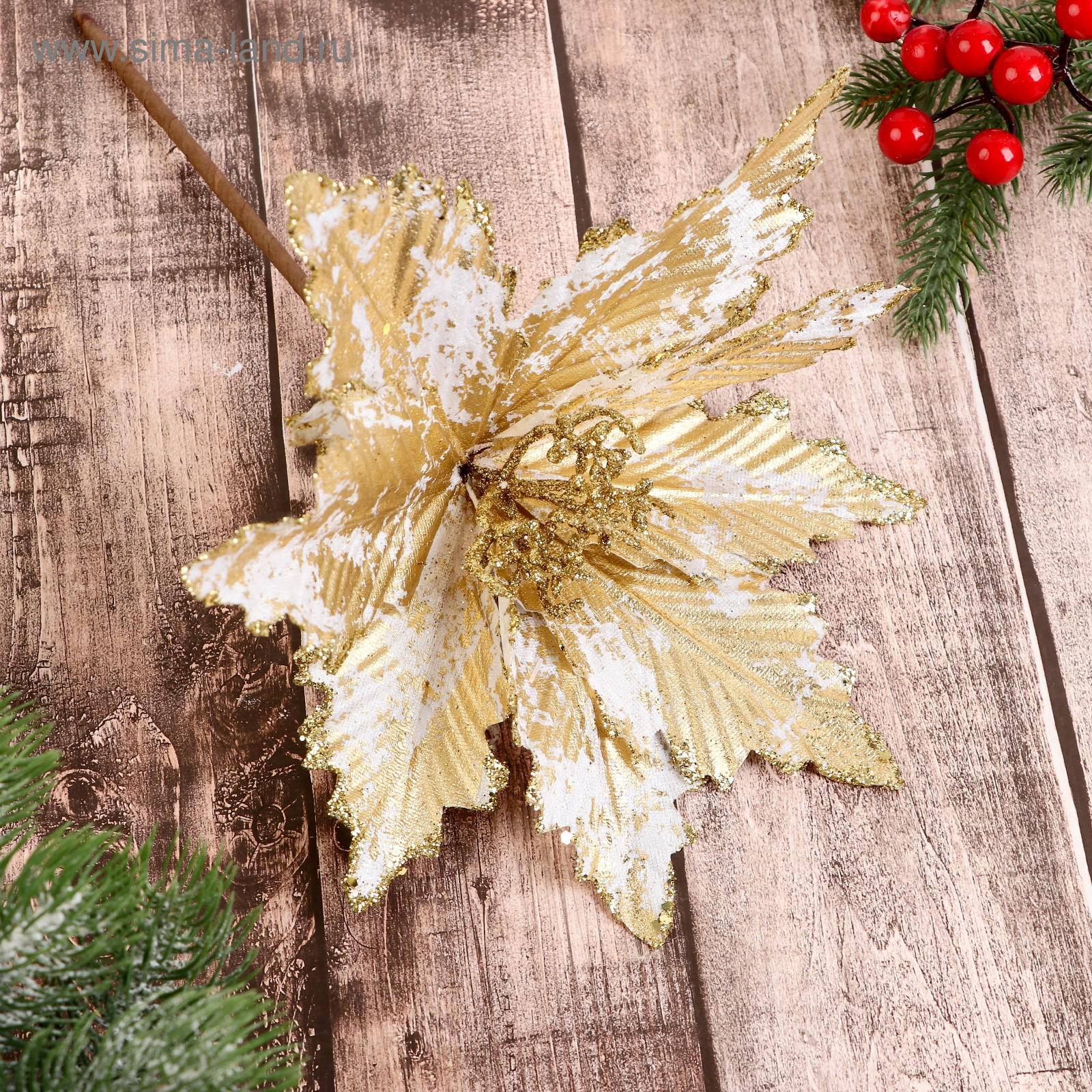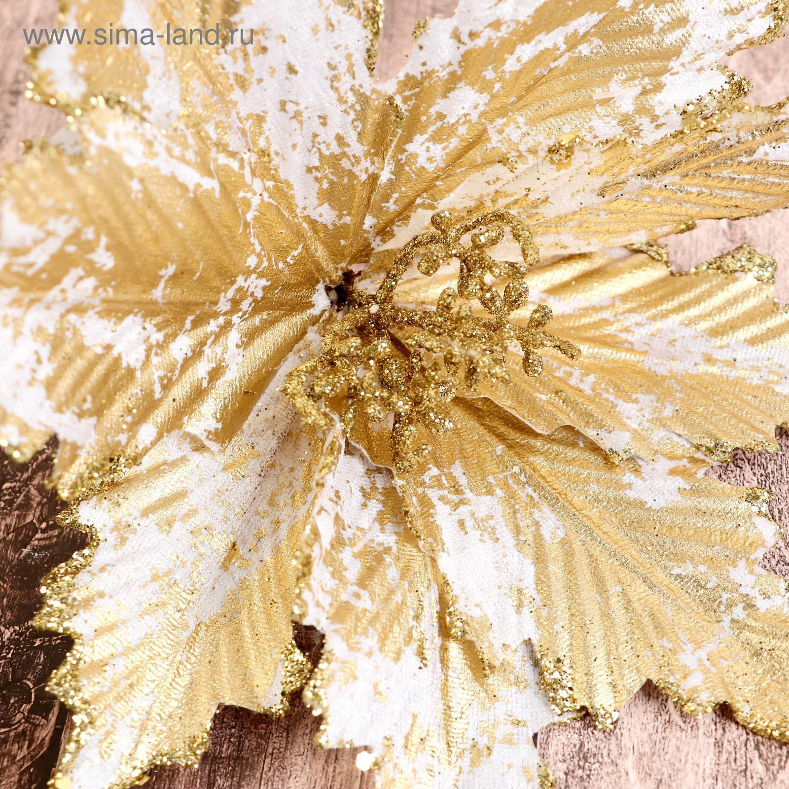 Декор «зимний цветок», кракле, 26 19 см, бело-золотой