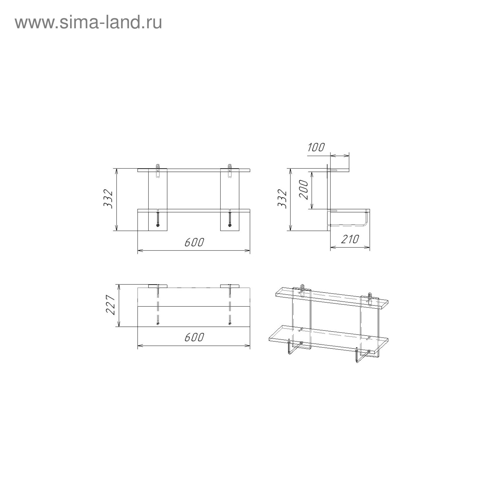 Полка подвесная для ванной комнаты "вега 6002", с держателем полотенец, 60 х 22,6 х 33,2