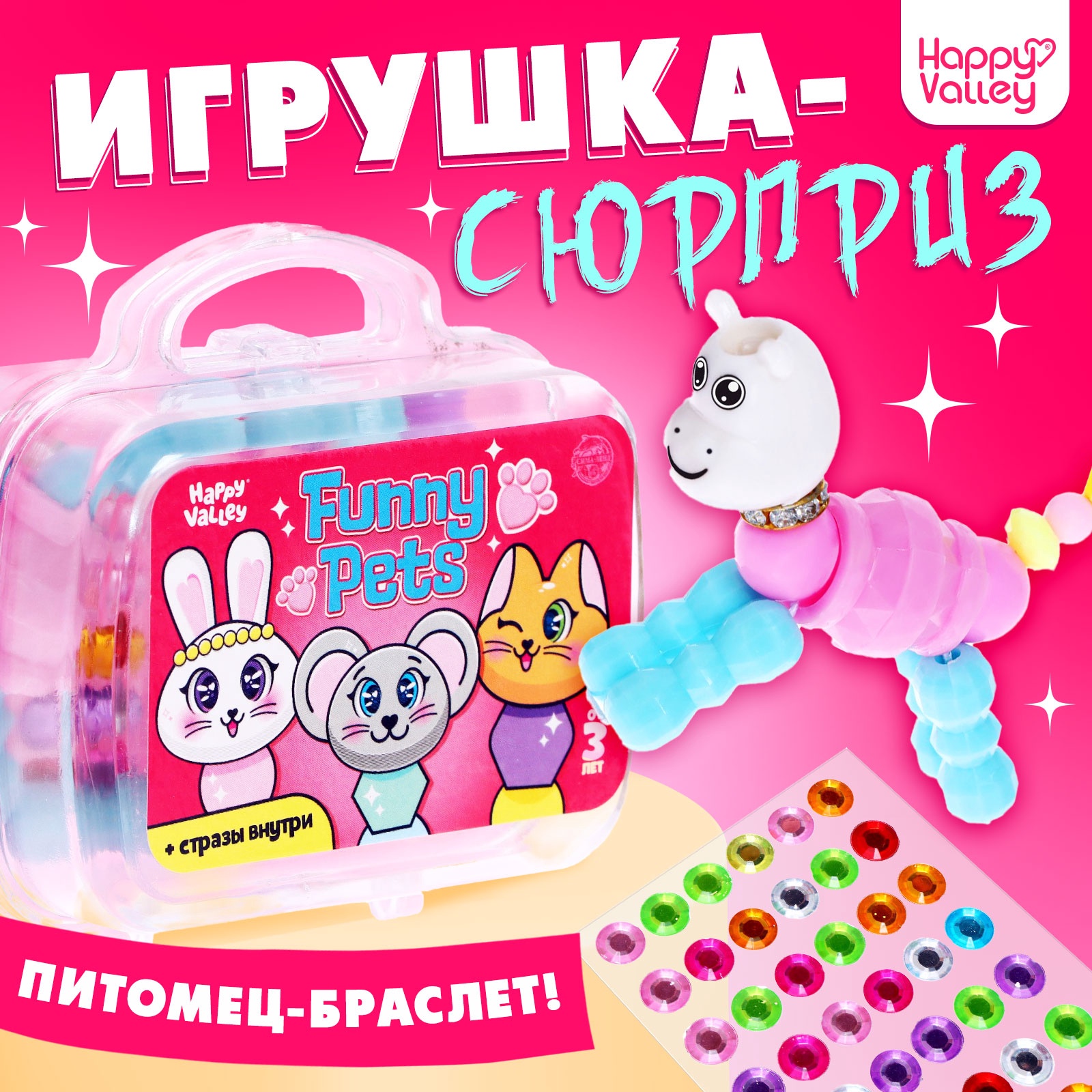 Игрушка-сюрприз Funny Pets со стразами, в сумочке, микс