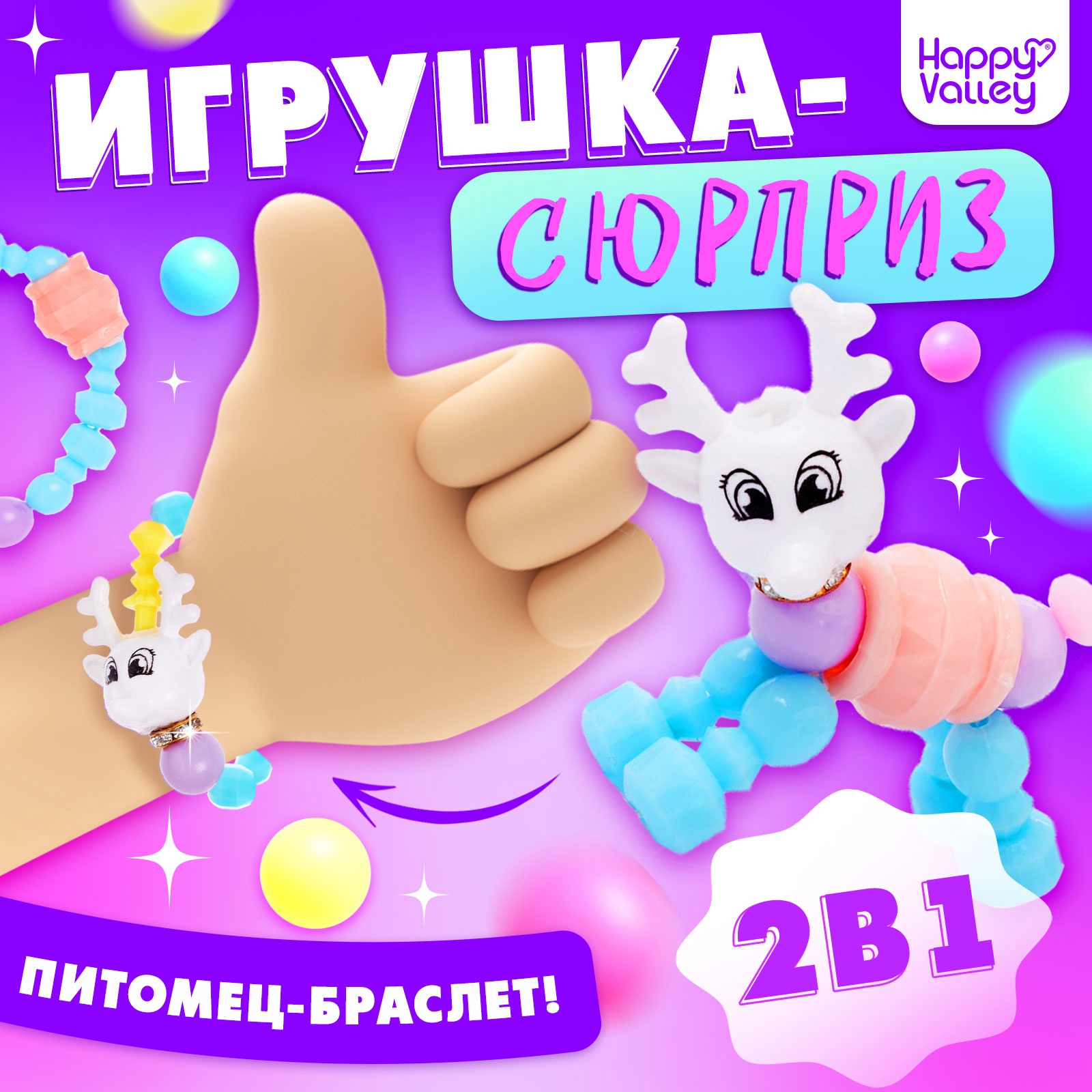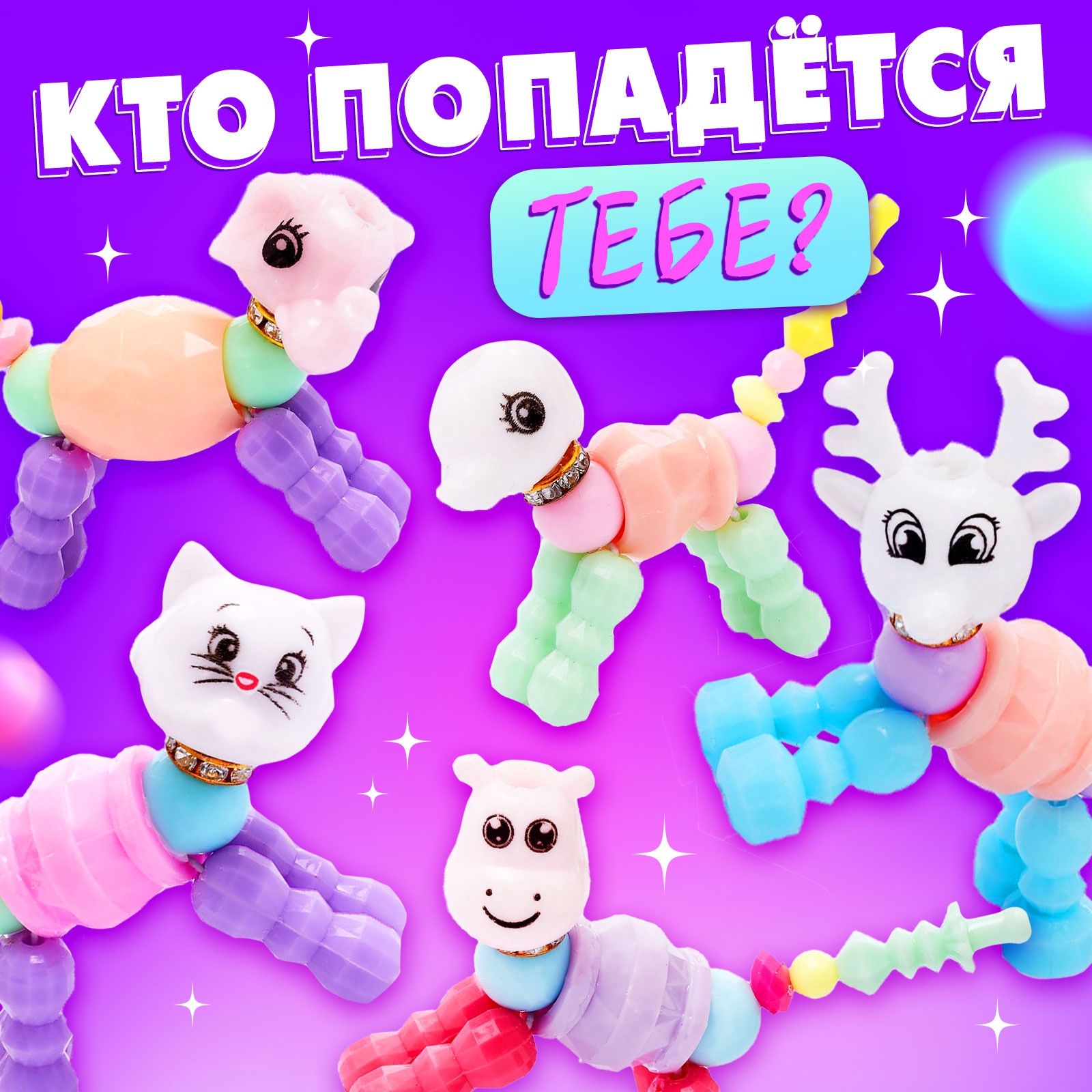 Игрушка-сюрприз funny pets, микс. Ваша принцесса любит играть и модничатьx Значит, от этой игрушки-браслета она будет в восторге! Девочка сможет дополнять модные образы и играть одновременно. Подробнее о наборе Игрушка представляет собой конструкцию, которую можно собрать и браслетом, и фигуркой животного. Это позволит не потерять игрушку на прогулке, ведь, наигравшись, можно надеть её на руку!Браслет на резинке, подойдёт на обхват руки до 18 см. Подходит для детей от 3 лет.В серии представлены и другие браслеты. Соберите их все! Чем полезны игры с набором Взаимодействуя с такой игрушкой, девочка развивает мелкую моторику, логику, креативное мышление, фантазию, а также эстетический вкус. Для кого:Для девочки|Возраст:От 3 лет|Вид упаковки:Пакет|Материал:Картон|Материал:Пластик|Вид:Набор украшений|Страна:Китай  развернуть описание ▼