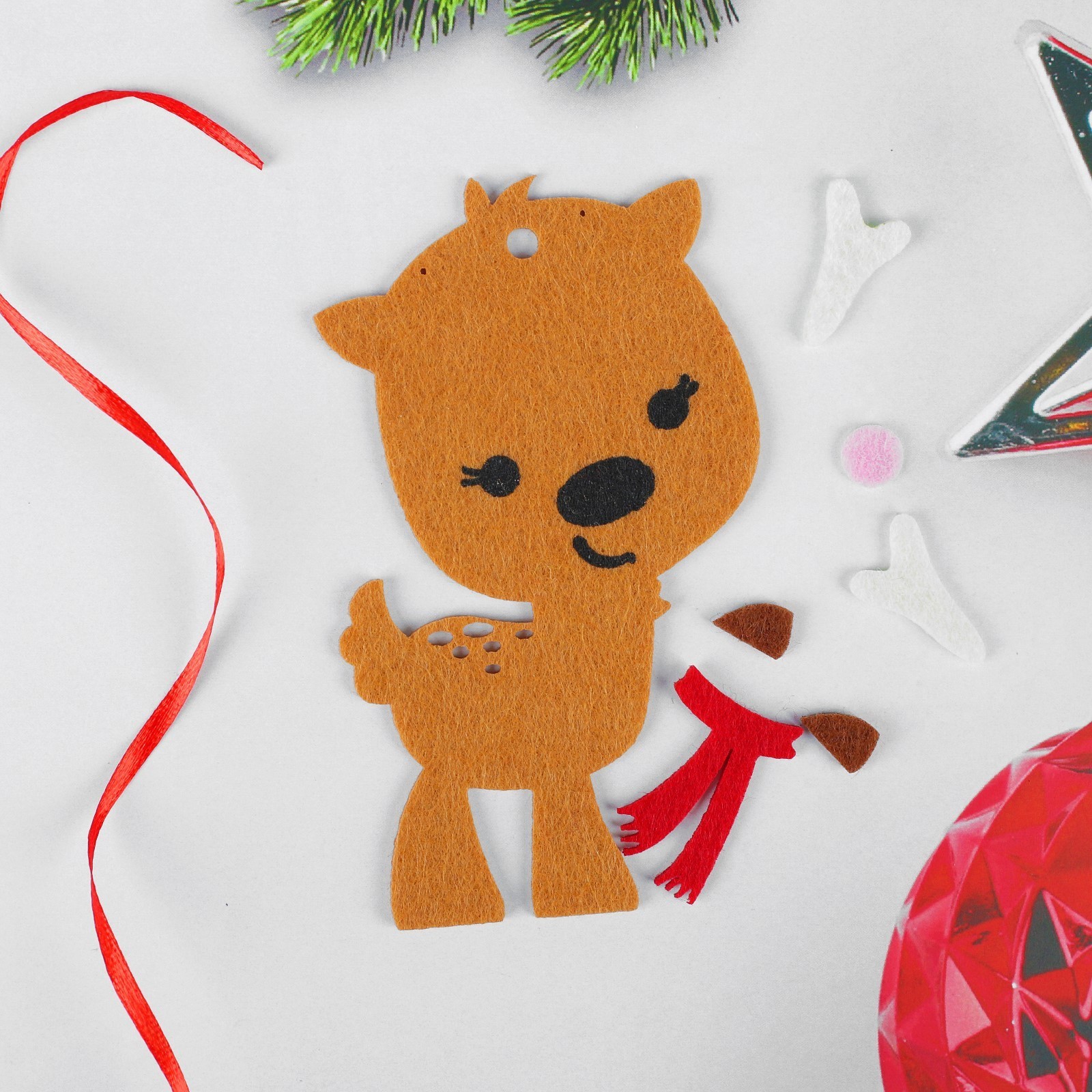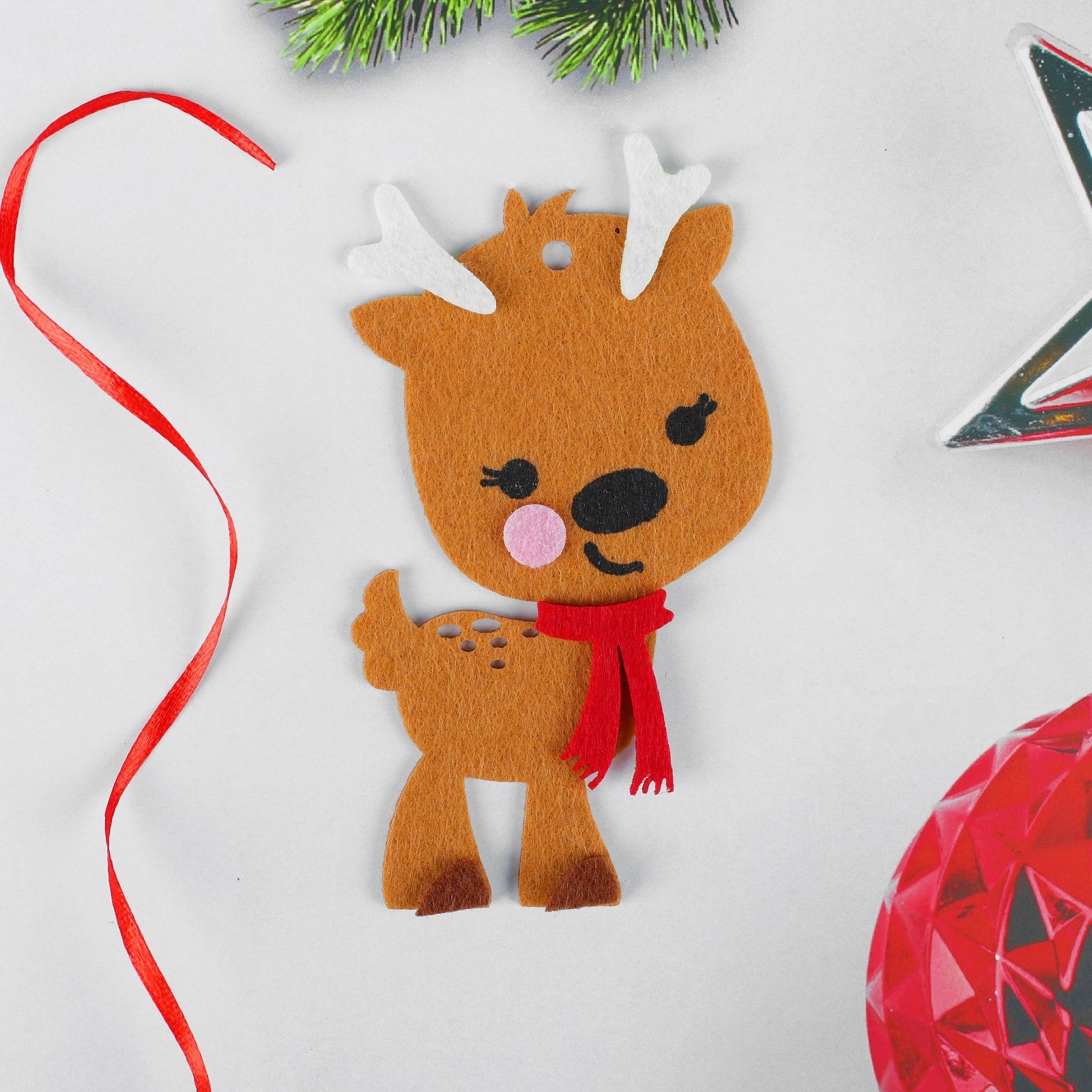 Ёлочная игрушка из фетра «оленёнок в шарфике», своими руками