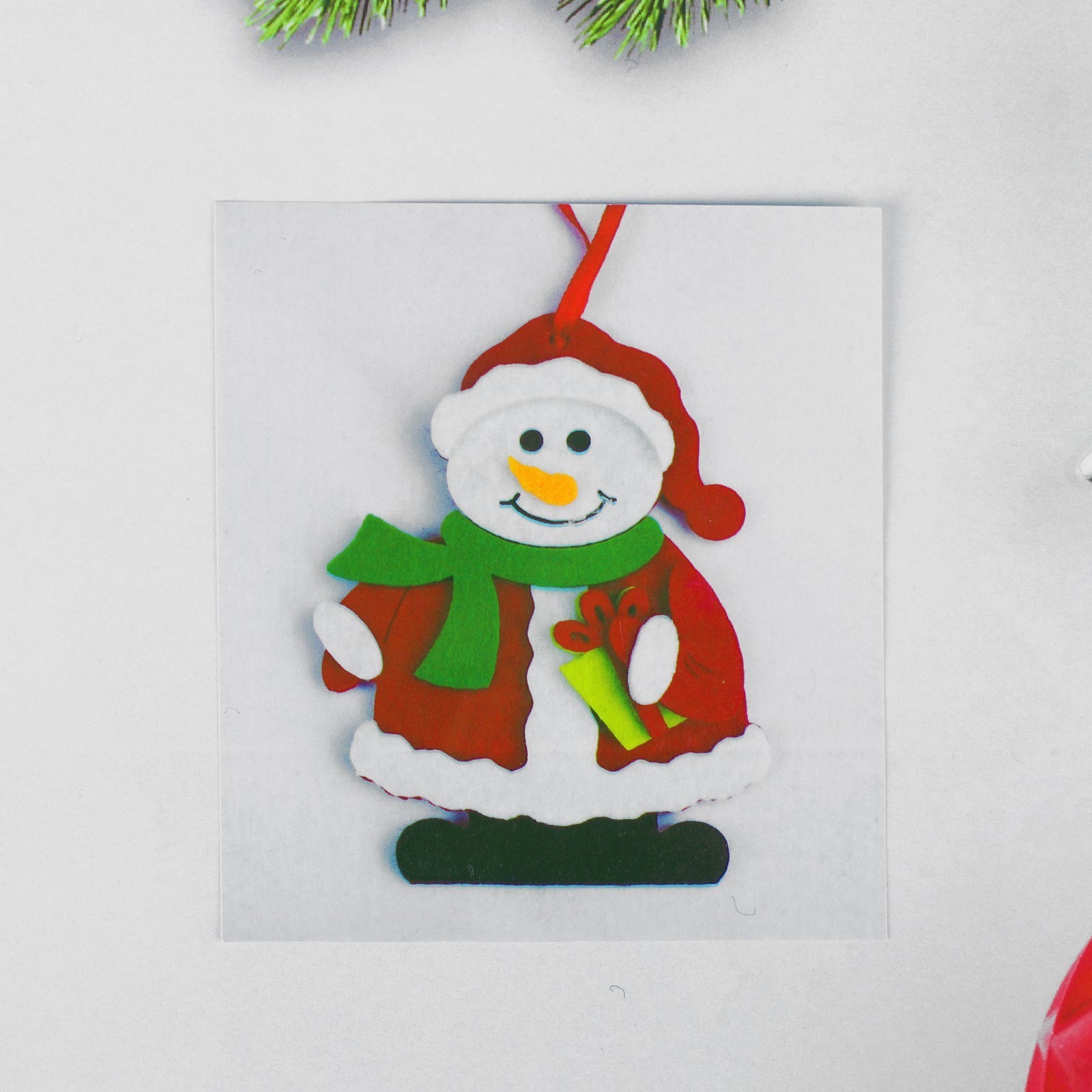 Ёлочная игрушка из фетра «снеговик с подарком», своими руками