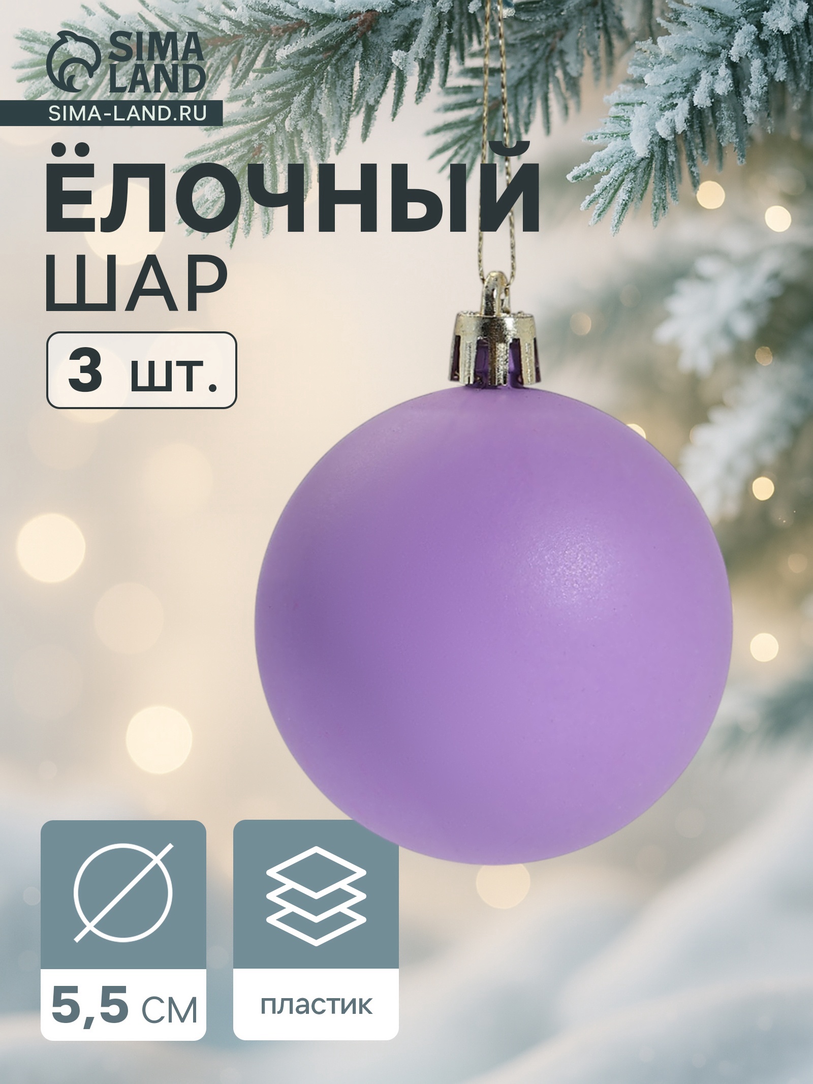 Ёлочные игрушки «матовый», шары новогодние, D=5.5 см, набор 3 шт., фиолетовый
