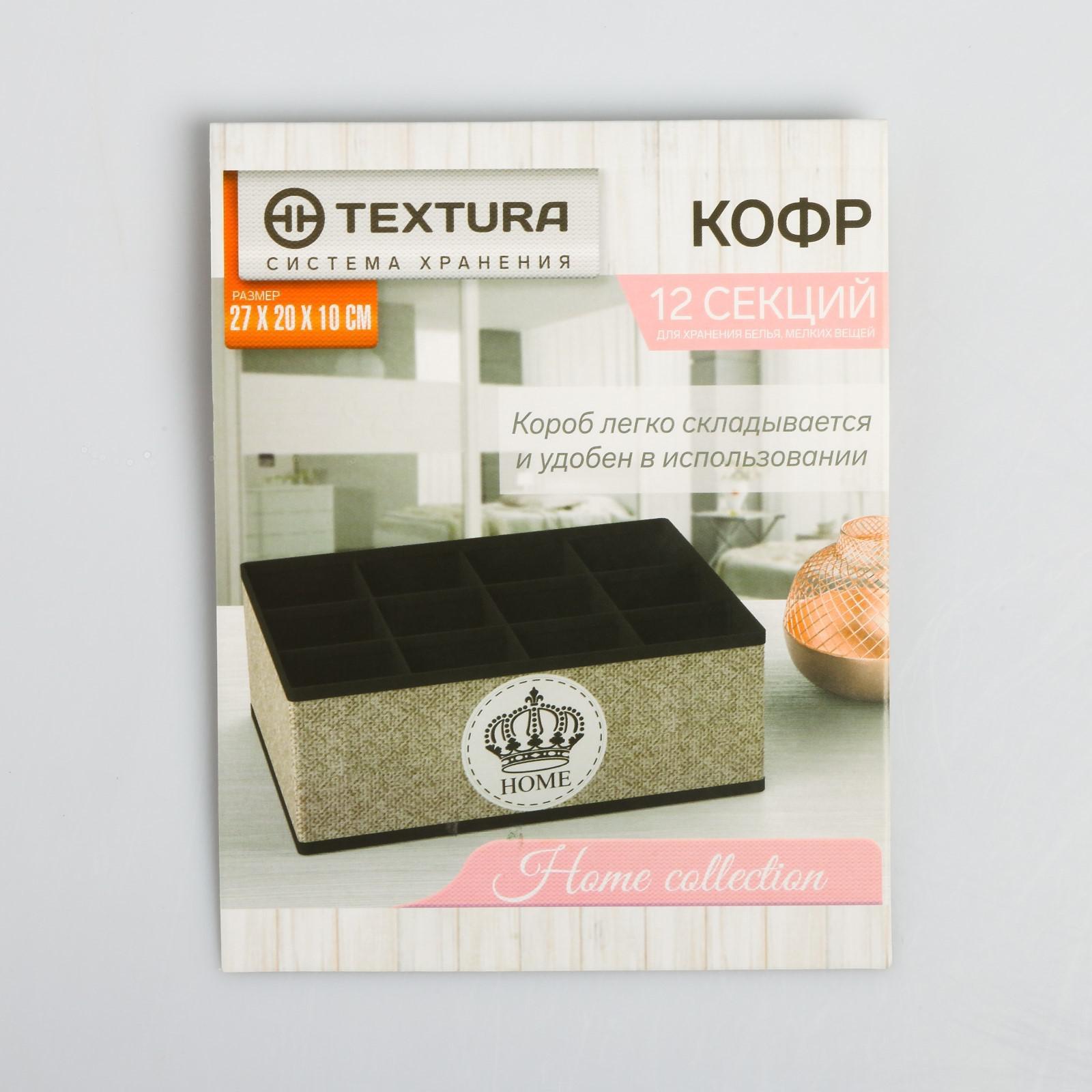 Органайзер для хранения белья, кофр 12 ячеек «home», 27 х 20 х 10 см.