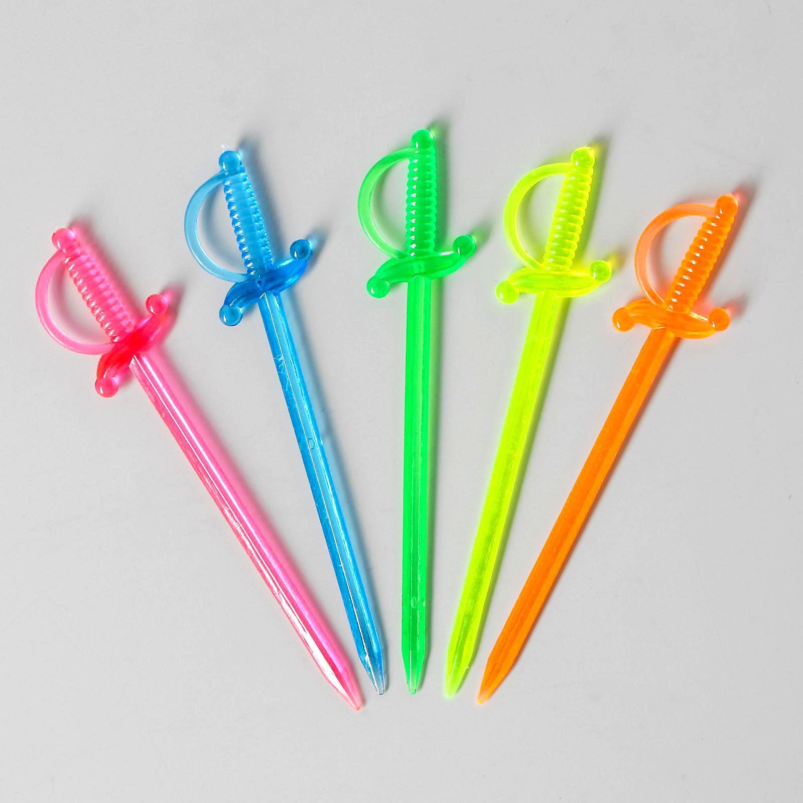 Шпажки для канапе «шпага», набор 50 шт., 8 см, цвета микс. Шпажки станут стильным украшением праздничных и повседневных блюд. Они идеально подойдут для закусок: маленьких бутербродов, пирожков, салатов, добавят пикантности фруктам и десертам. С такими аксессуарами угощения будут выглядеть ещё аппетитнее, а стол ярче. Удивляйте не только вкусом, но и креативной подачей блюд! Цвет: МИКС Длина, см: 8 В наборе, шт.: 50 Материал: Пластик  развернуть описание ▼