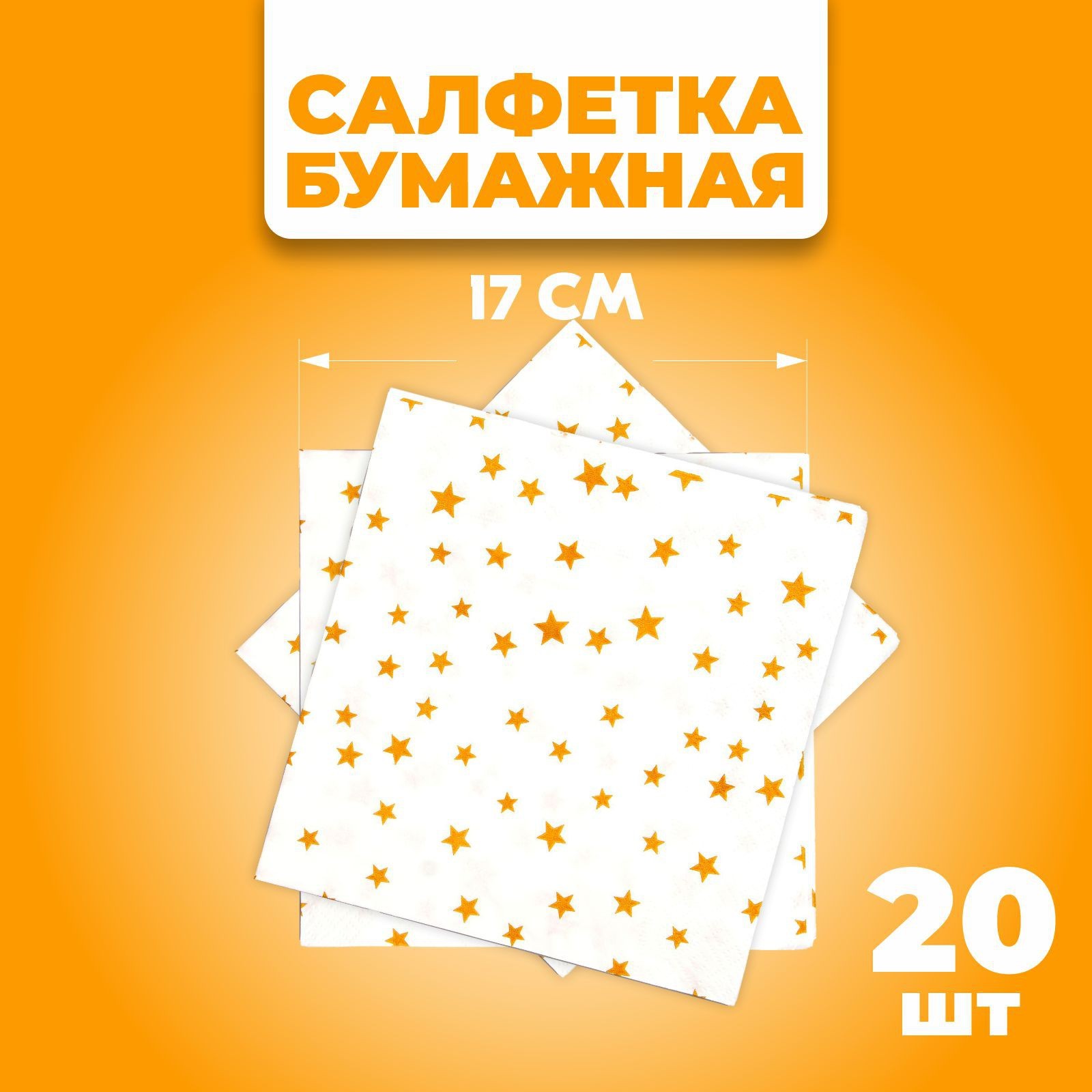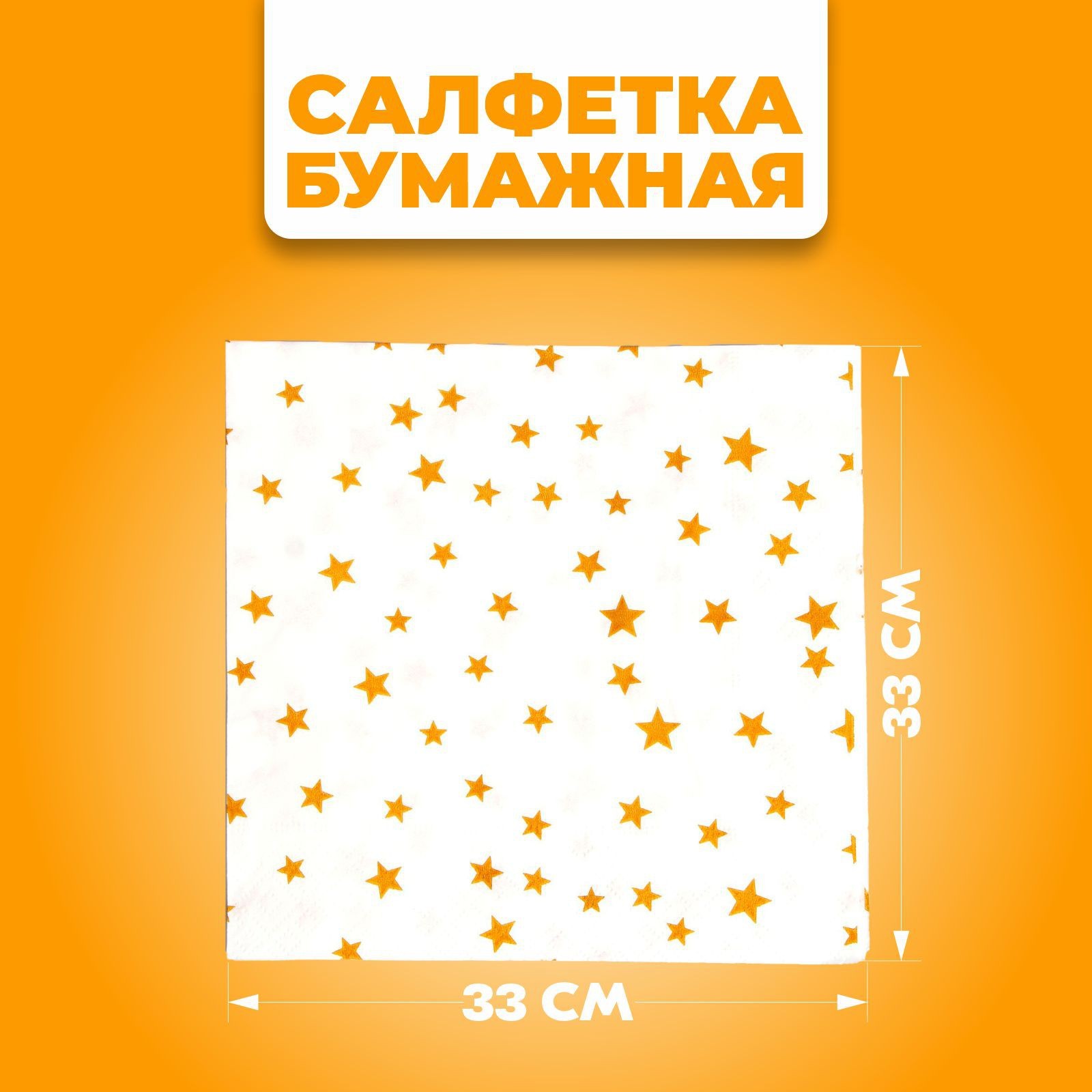 Салфетки бумажные «звёзды», 33х33 см, набор 20 шт., цвет золотой