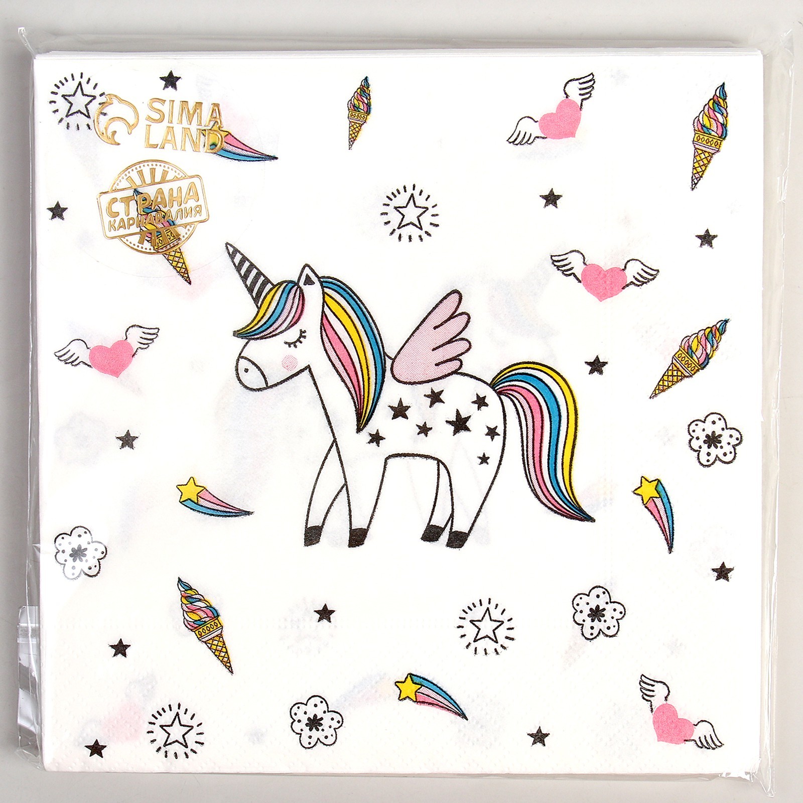 Салфетки бумажные «единорог», 33х33 см, набор 20 шт., цвет белый