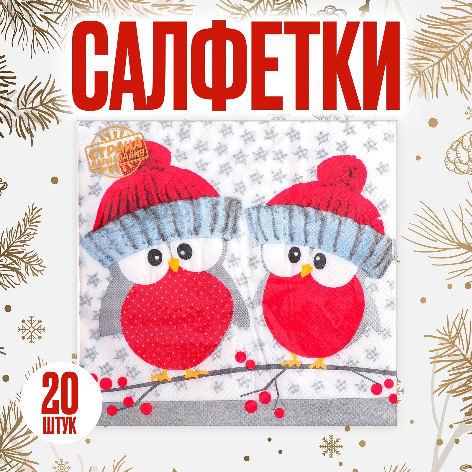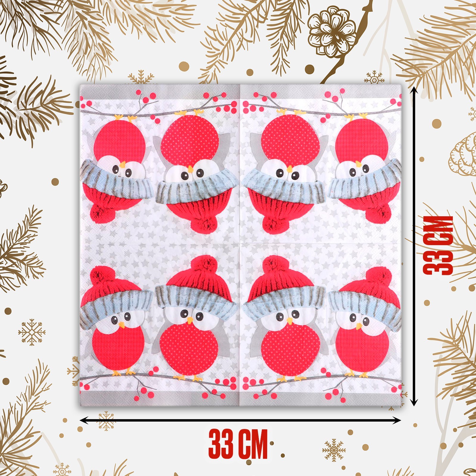 Салфетки бумажные «совушки в шапочках», 33х33 см, набор 20 шт.