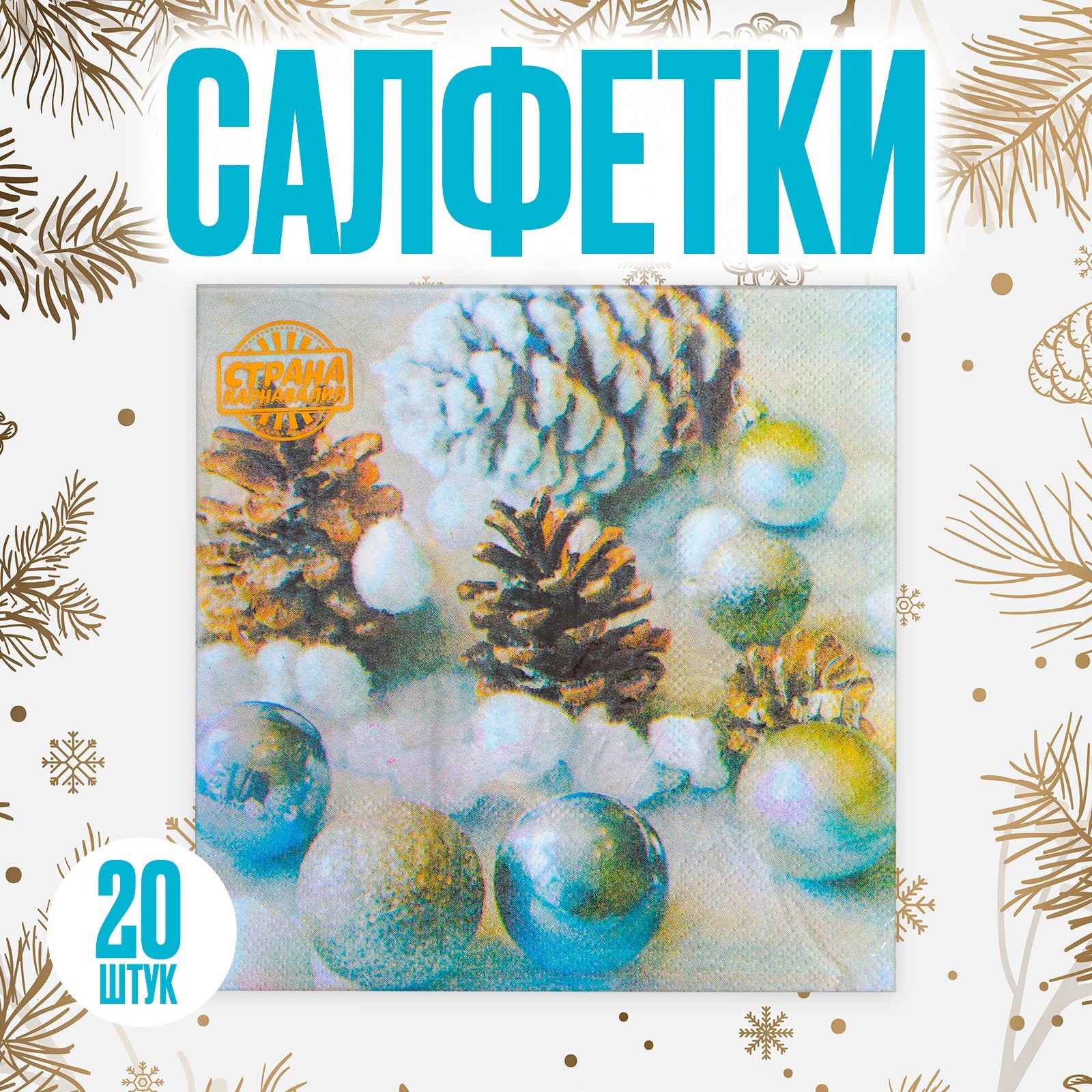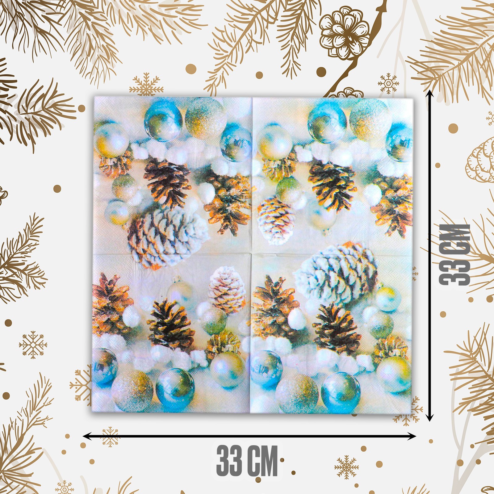 Салфетки бумажные «новогодние игрушки», 33х33 см, набор 20 шт.