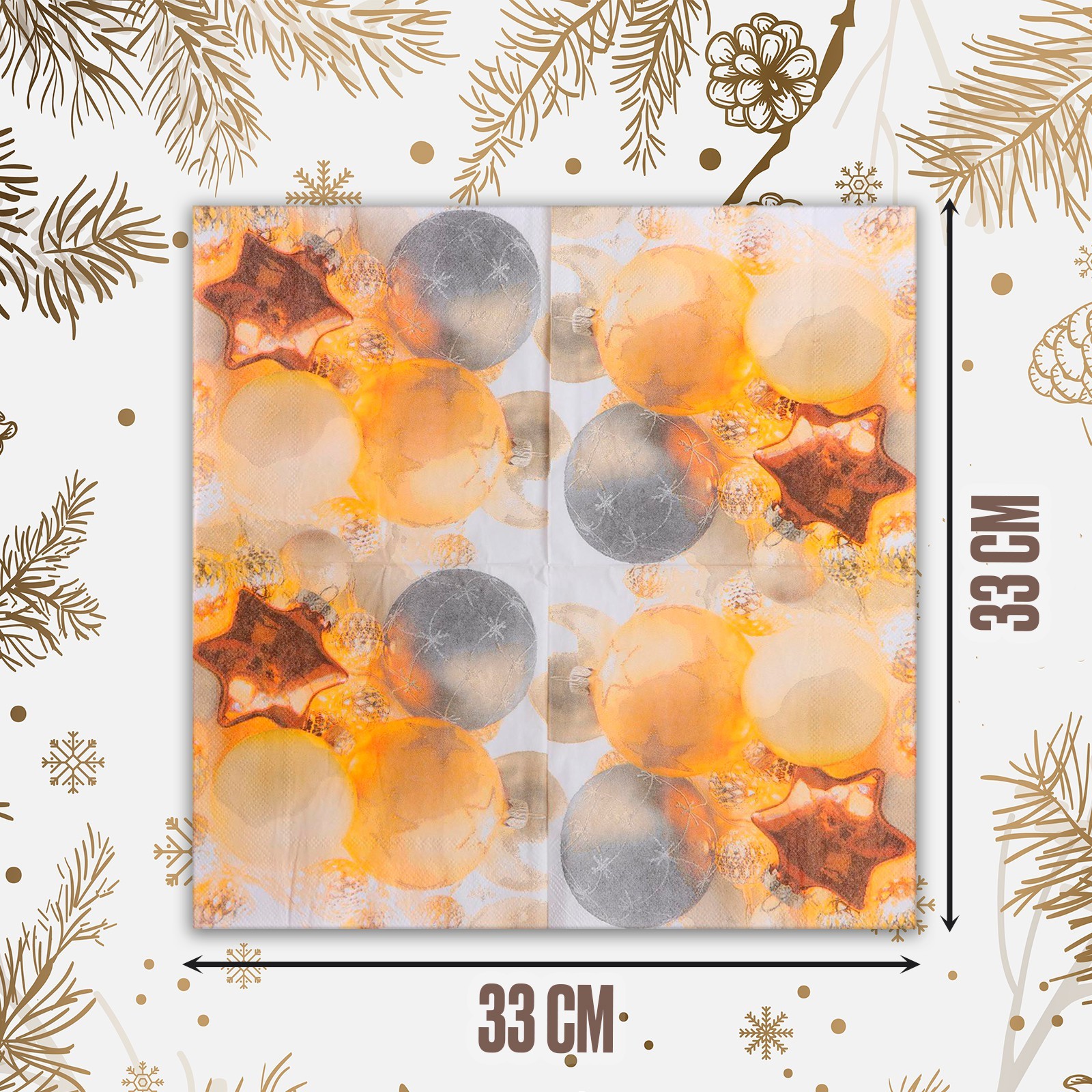 Салфетки бумажные «ёлочные украшения», 33х33см, набор 20 шт.