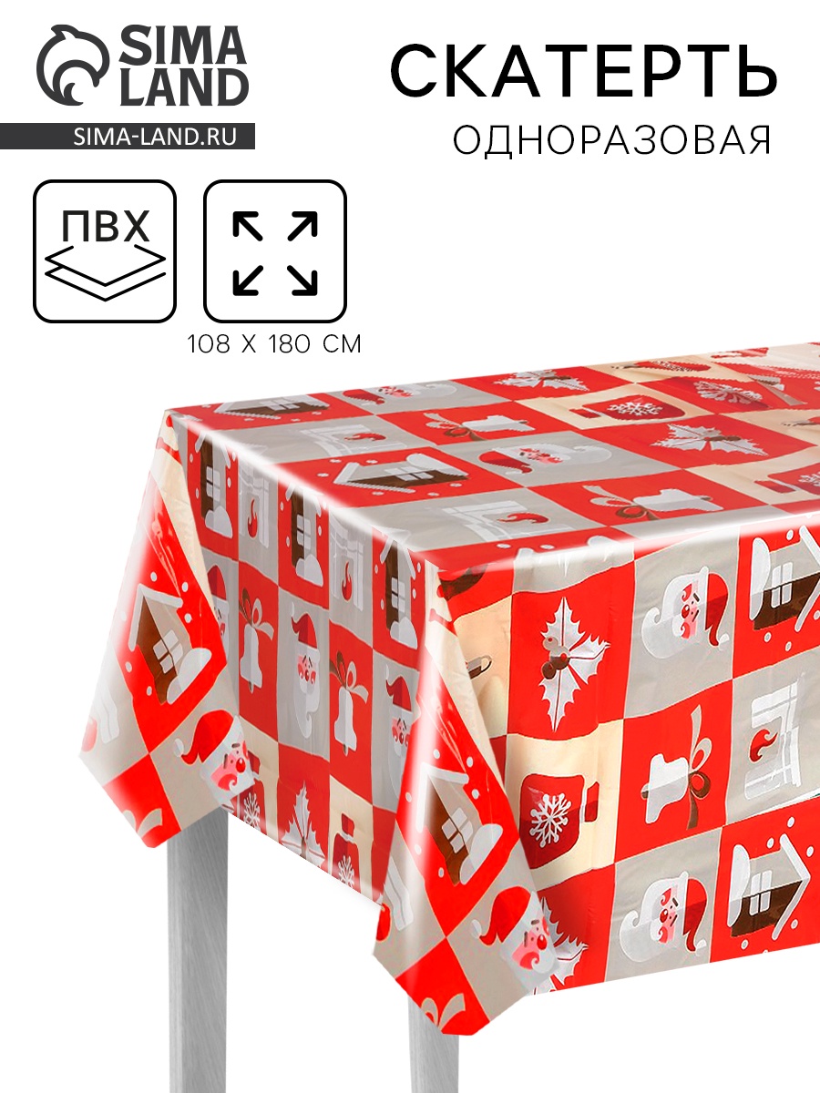 Скатерть новогодняя одноразовая, размер 108 180 см