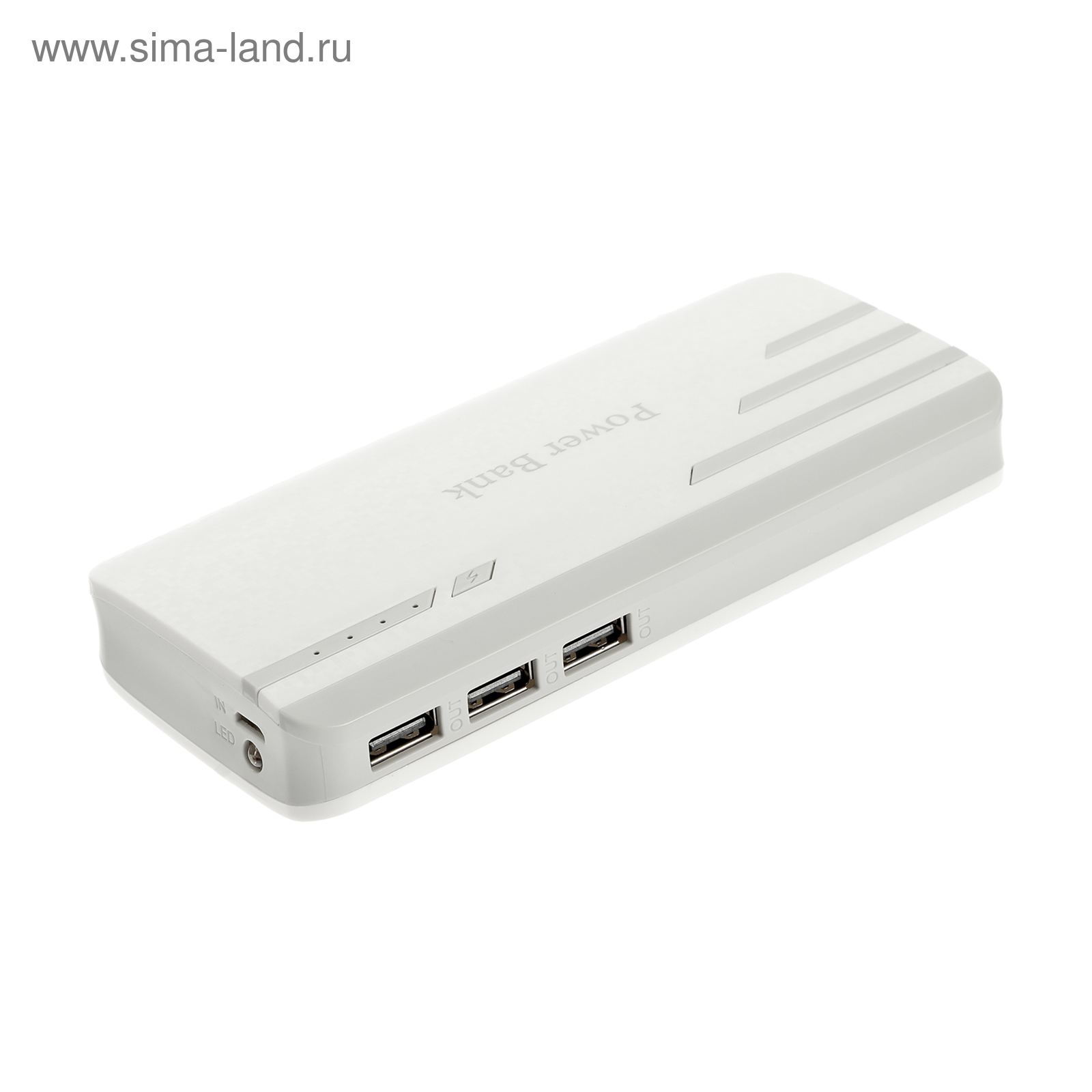 Внешний аккумулятор Luazon Pb-25, 10000 мач, 3 Usb, 1 а, индикатор, фонарик, серо-белый