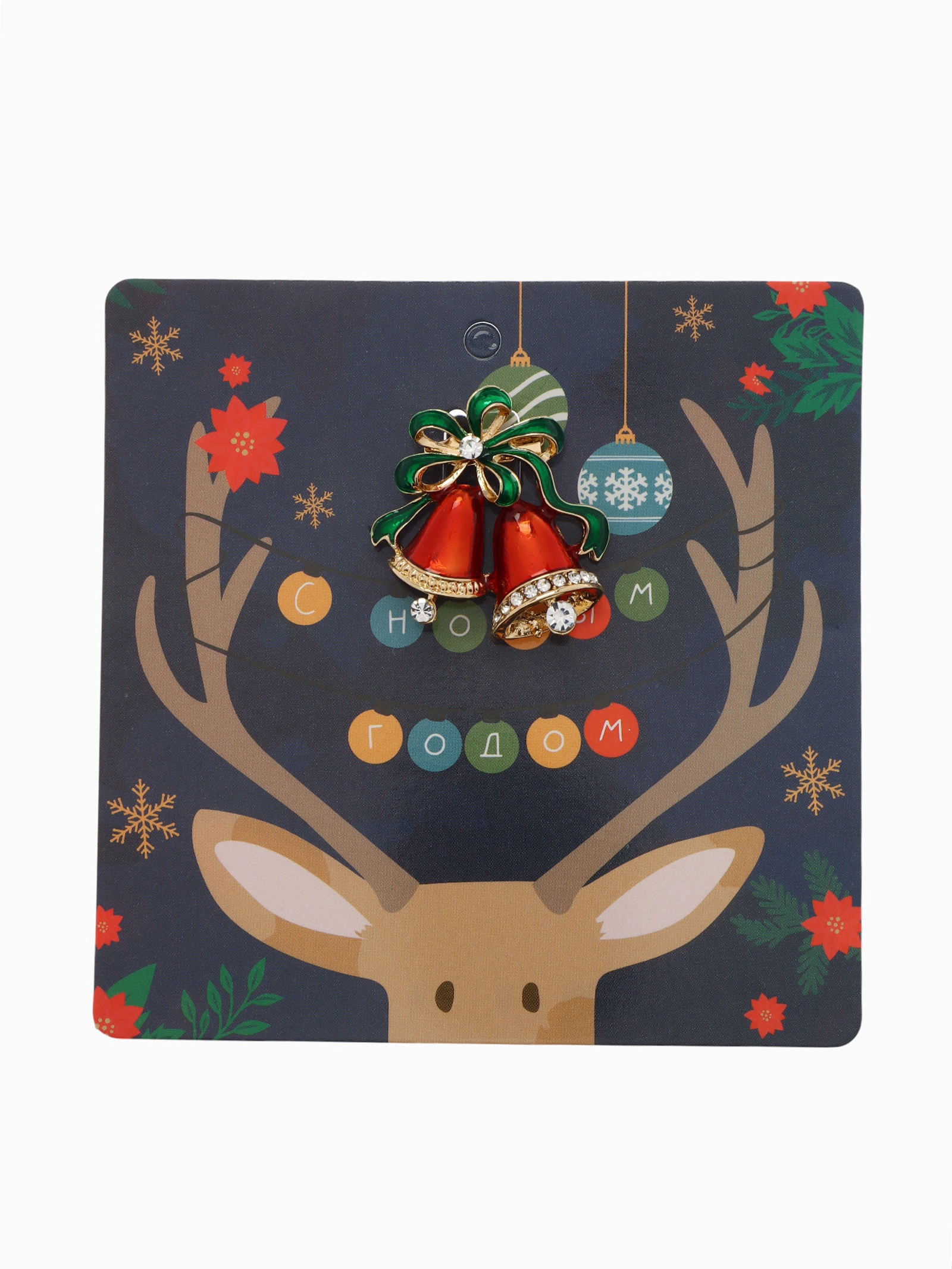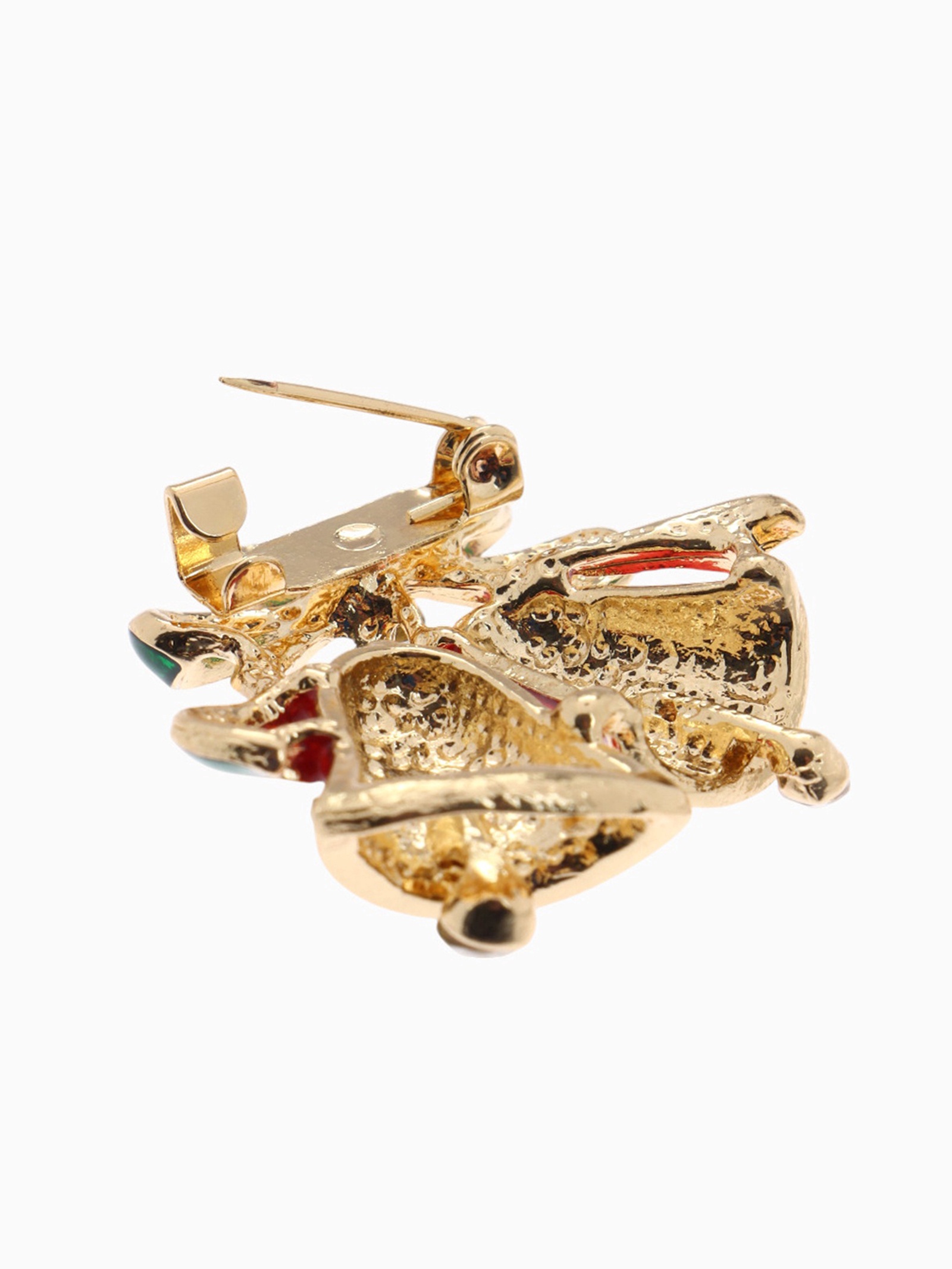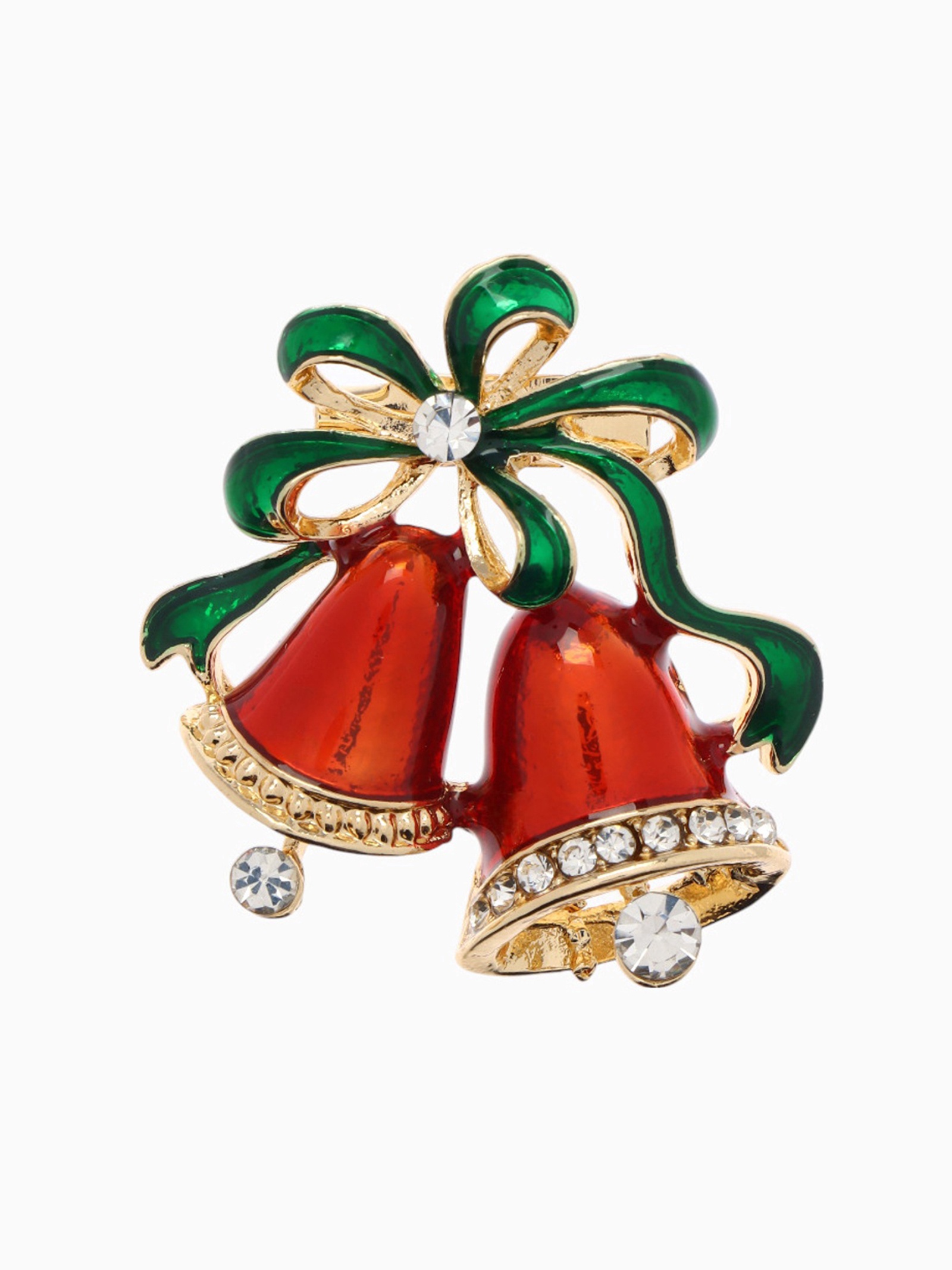 Брошь новогодняя «колокольчики», красная, зелёная в золоте