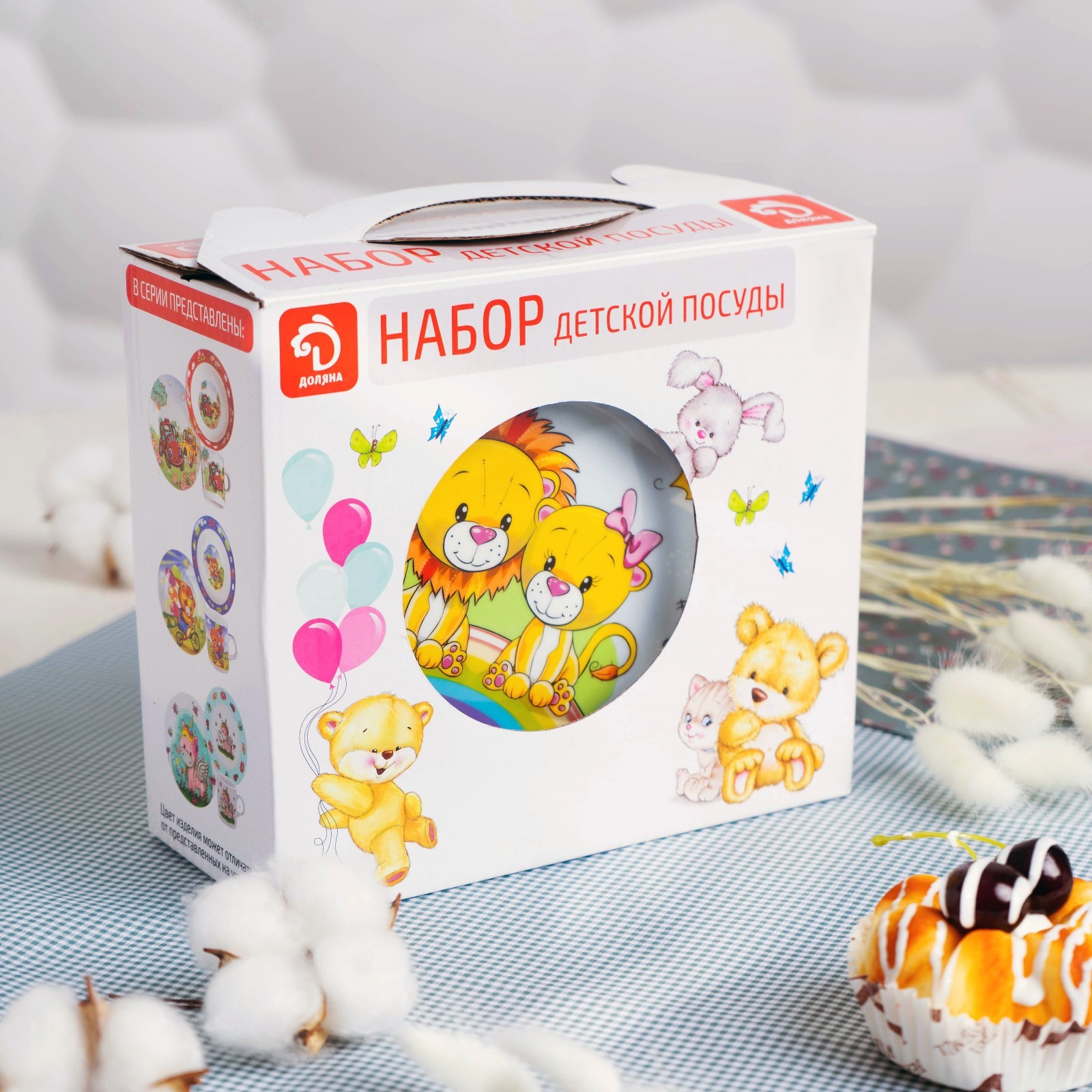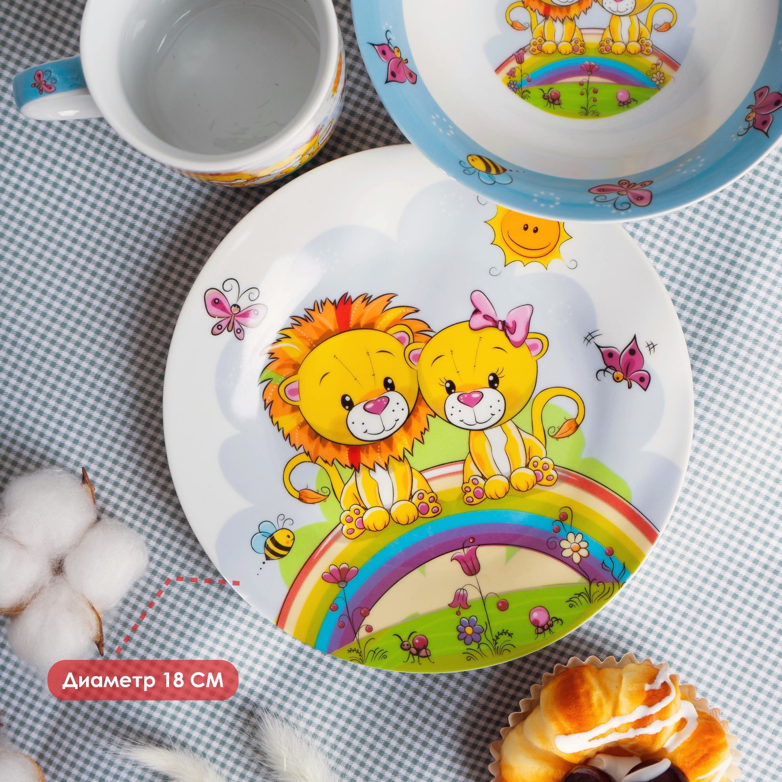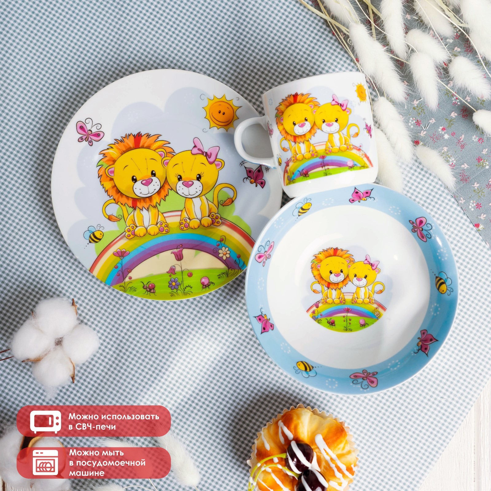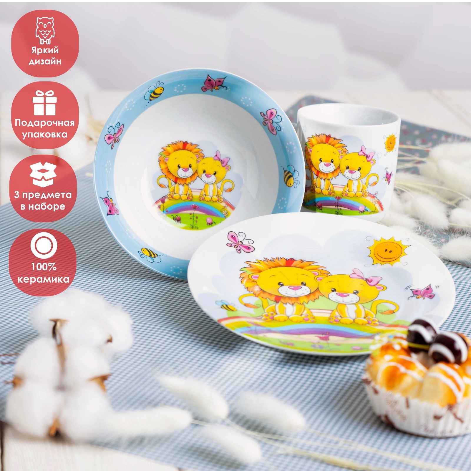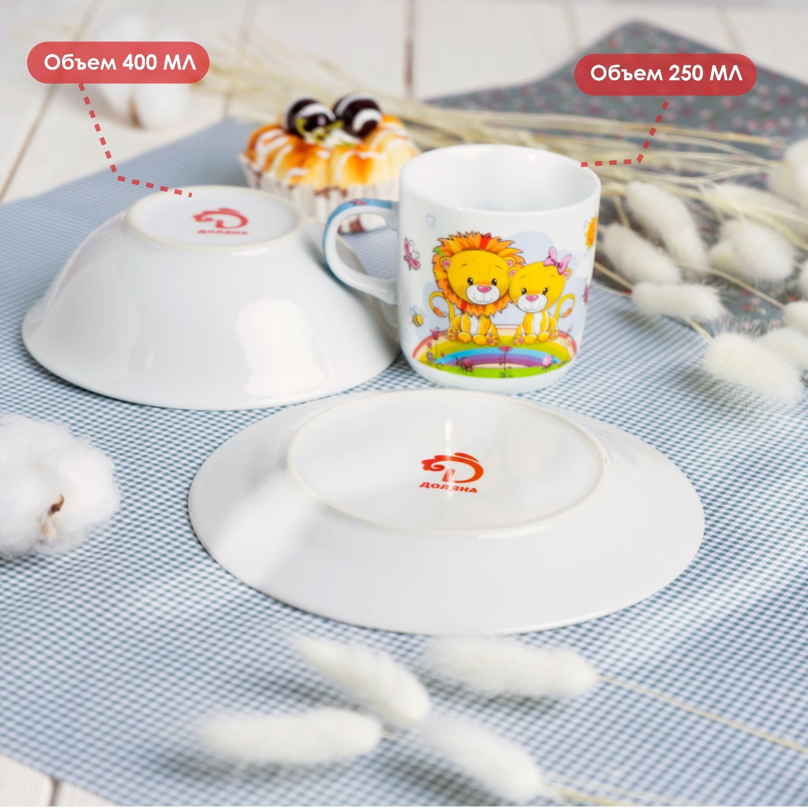 Набор детской посуды доляна «львята», 3 предмета: кружка 230 мл, миска 400 мл, тарелка D=18 см
