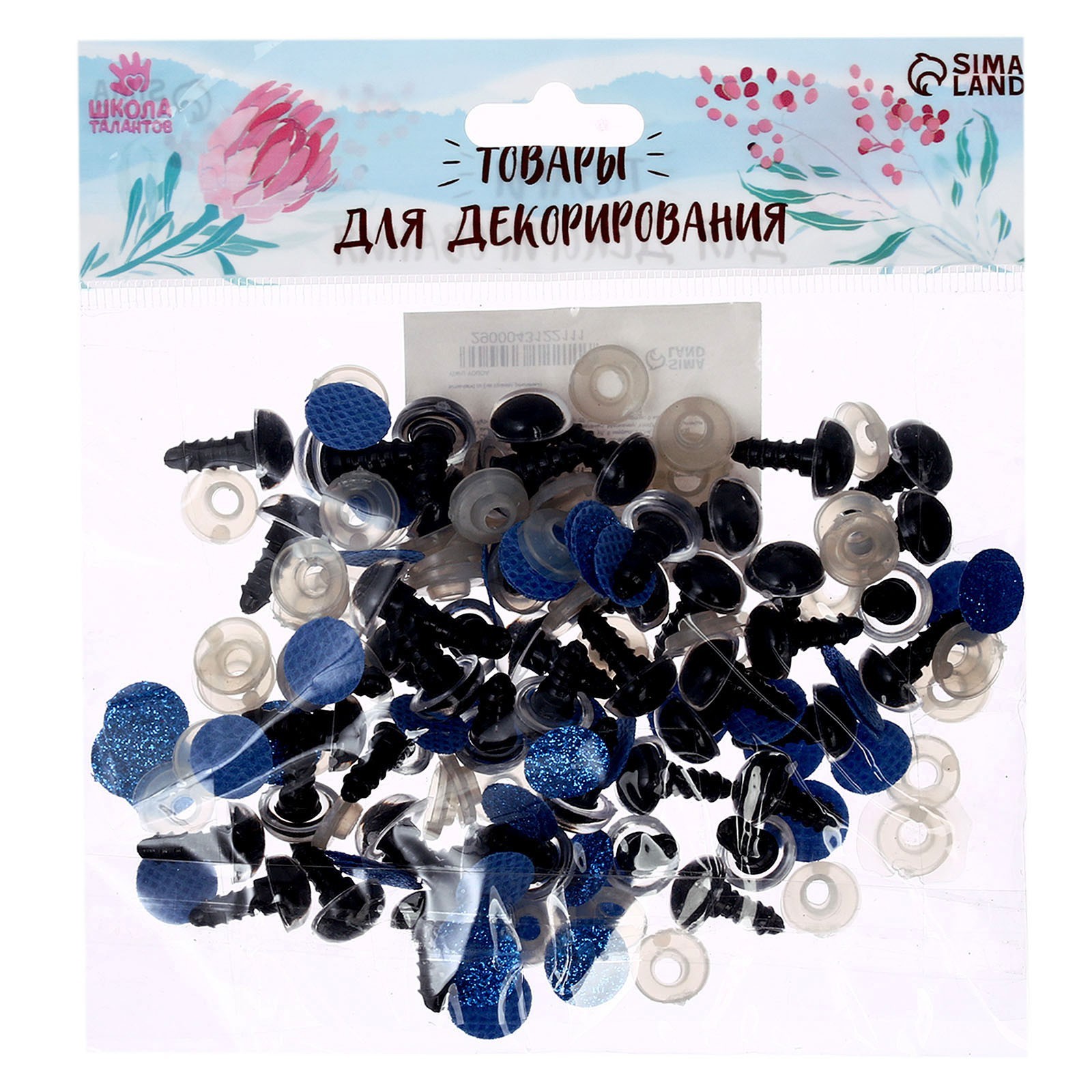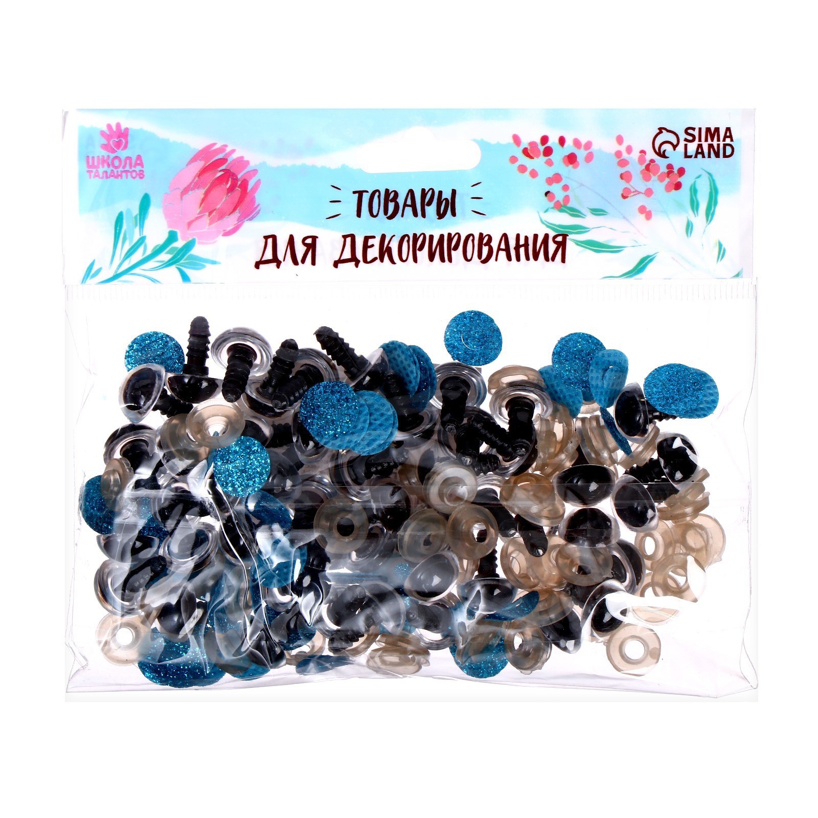 Глаза винтовые с заглушками, «блёстки» набор 48 шт., размер 1 шт.: 1.2 см, голубые