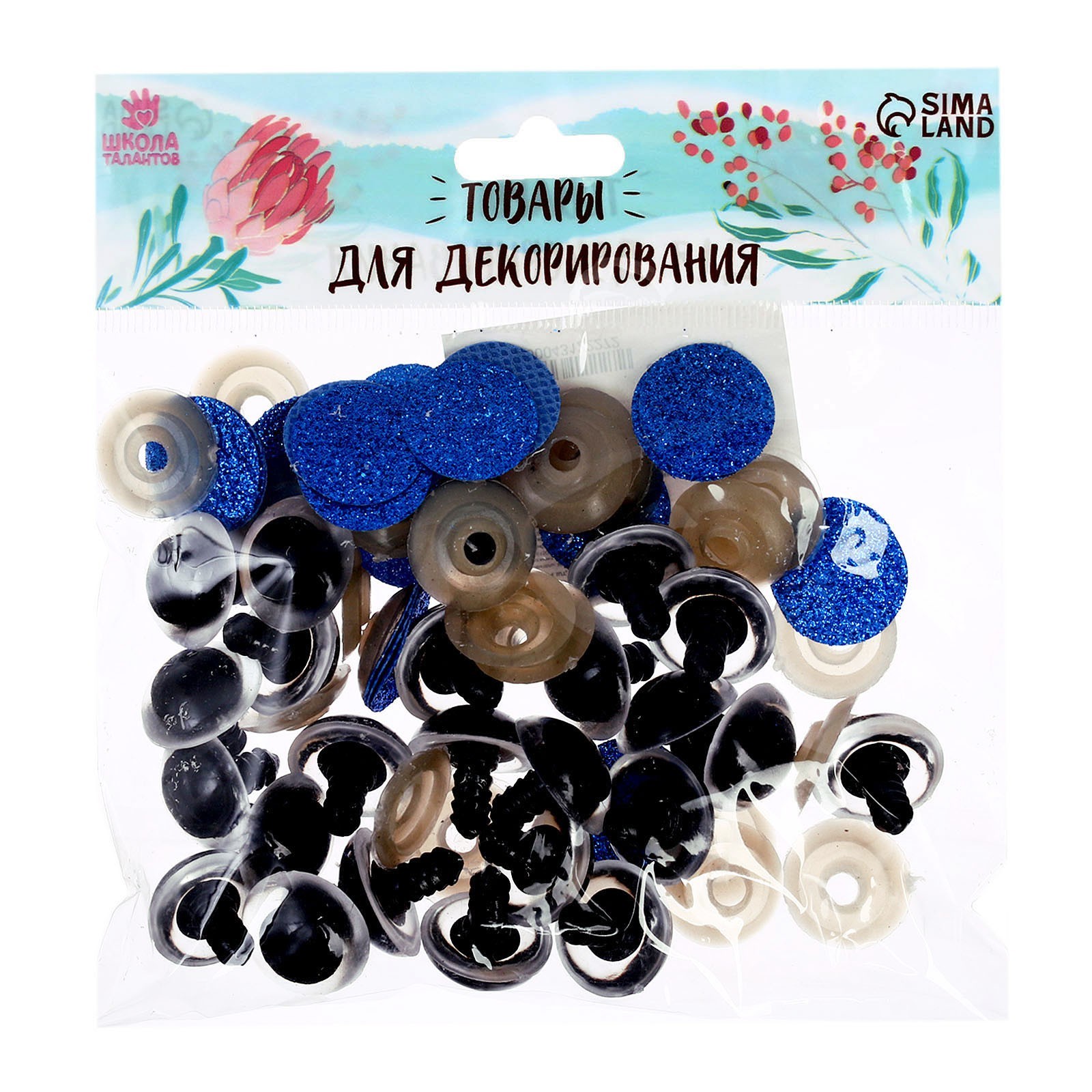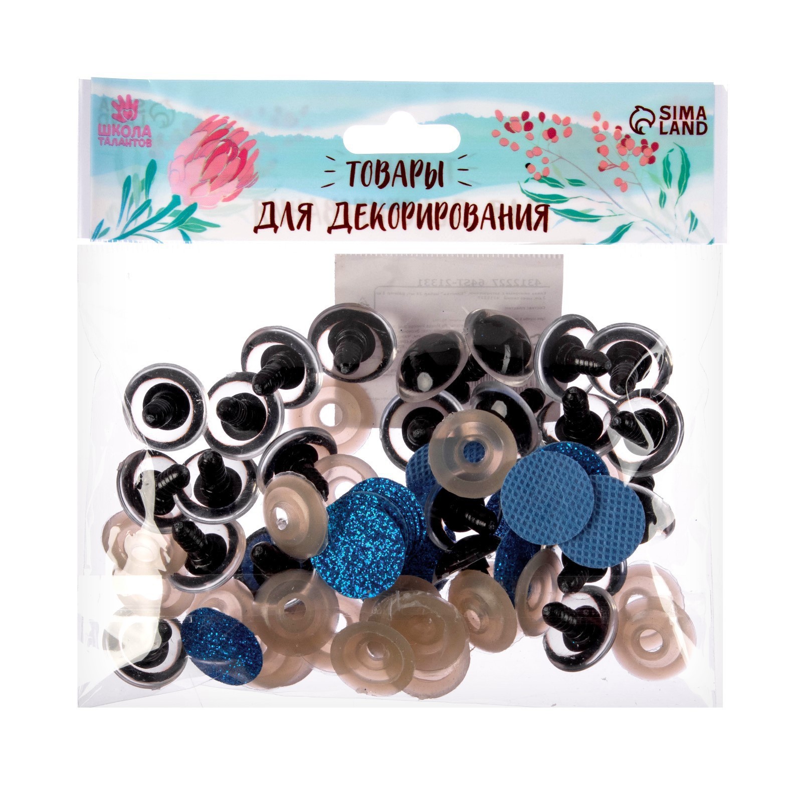 Глаза винтовые с заглушками, «блёстки» набор 24 шт., размер 1 шт.: 2 см, синие