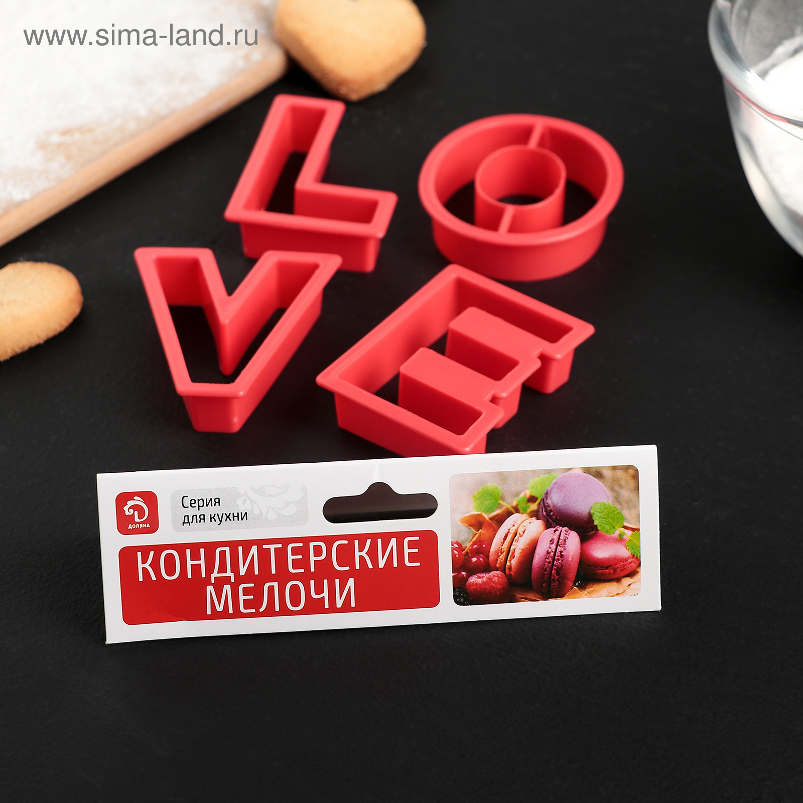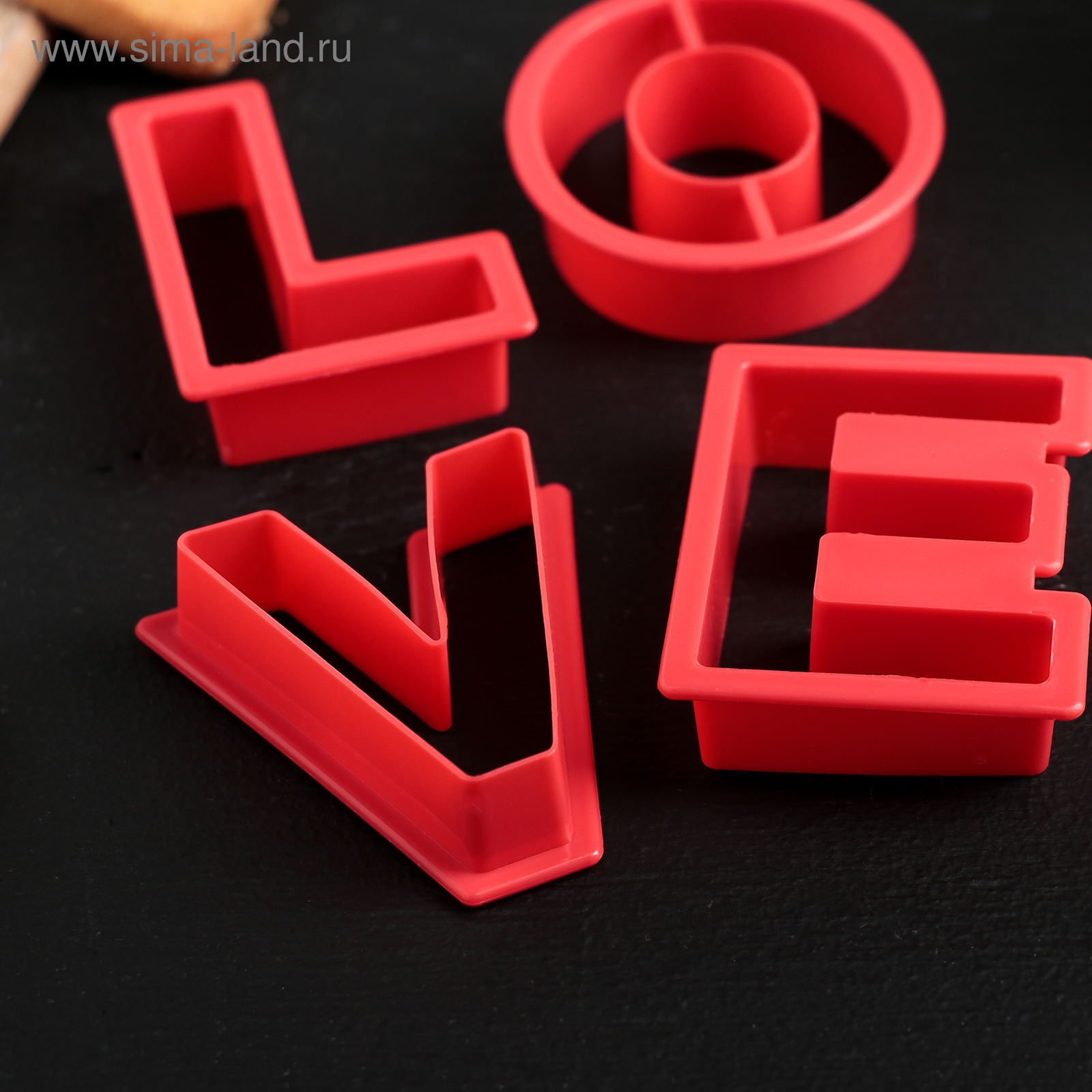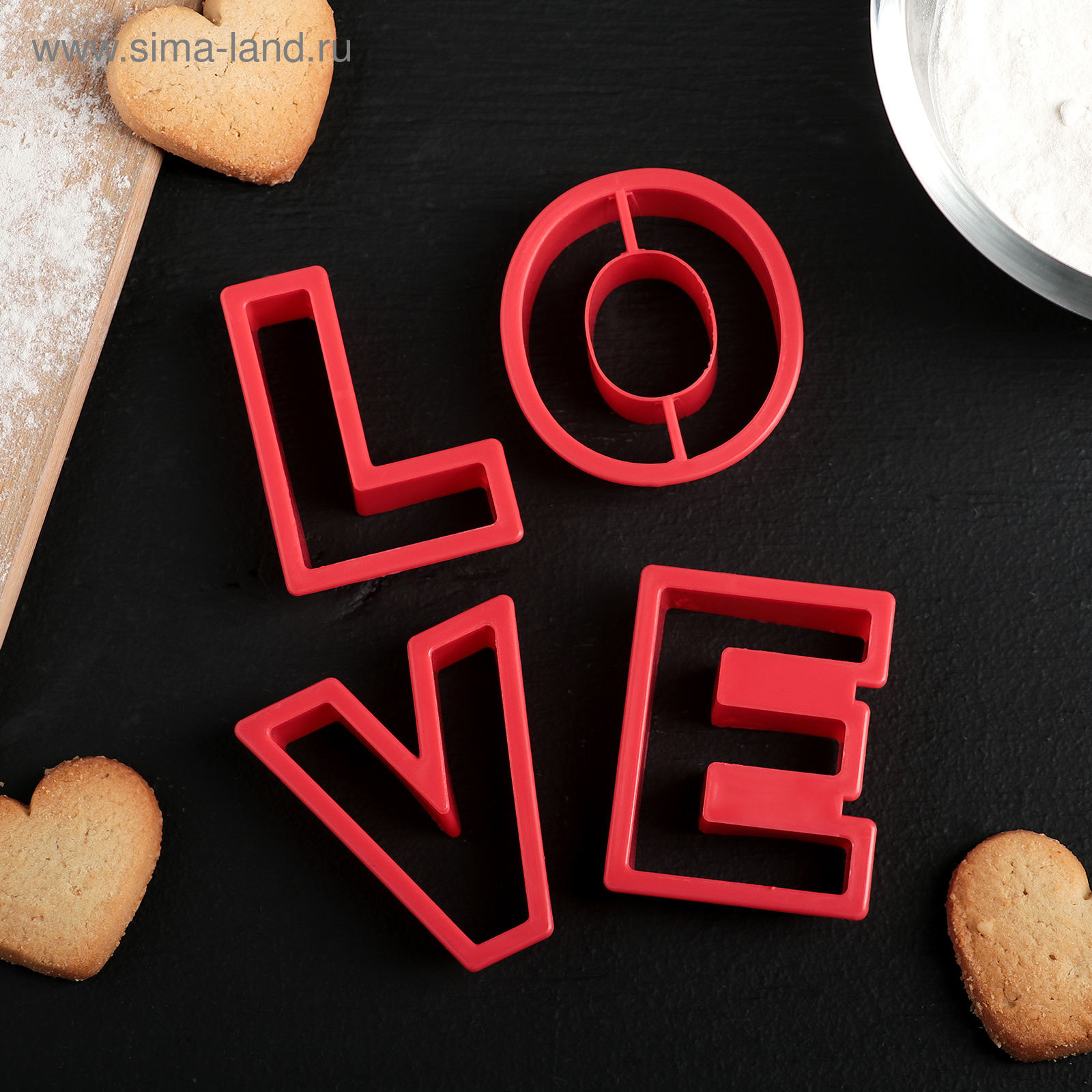 Набор форм для вырезания печенья доляна «любовь», 4 шт, 12,5x10,5x2 см, цвет красный