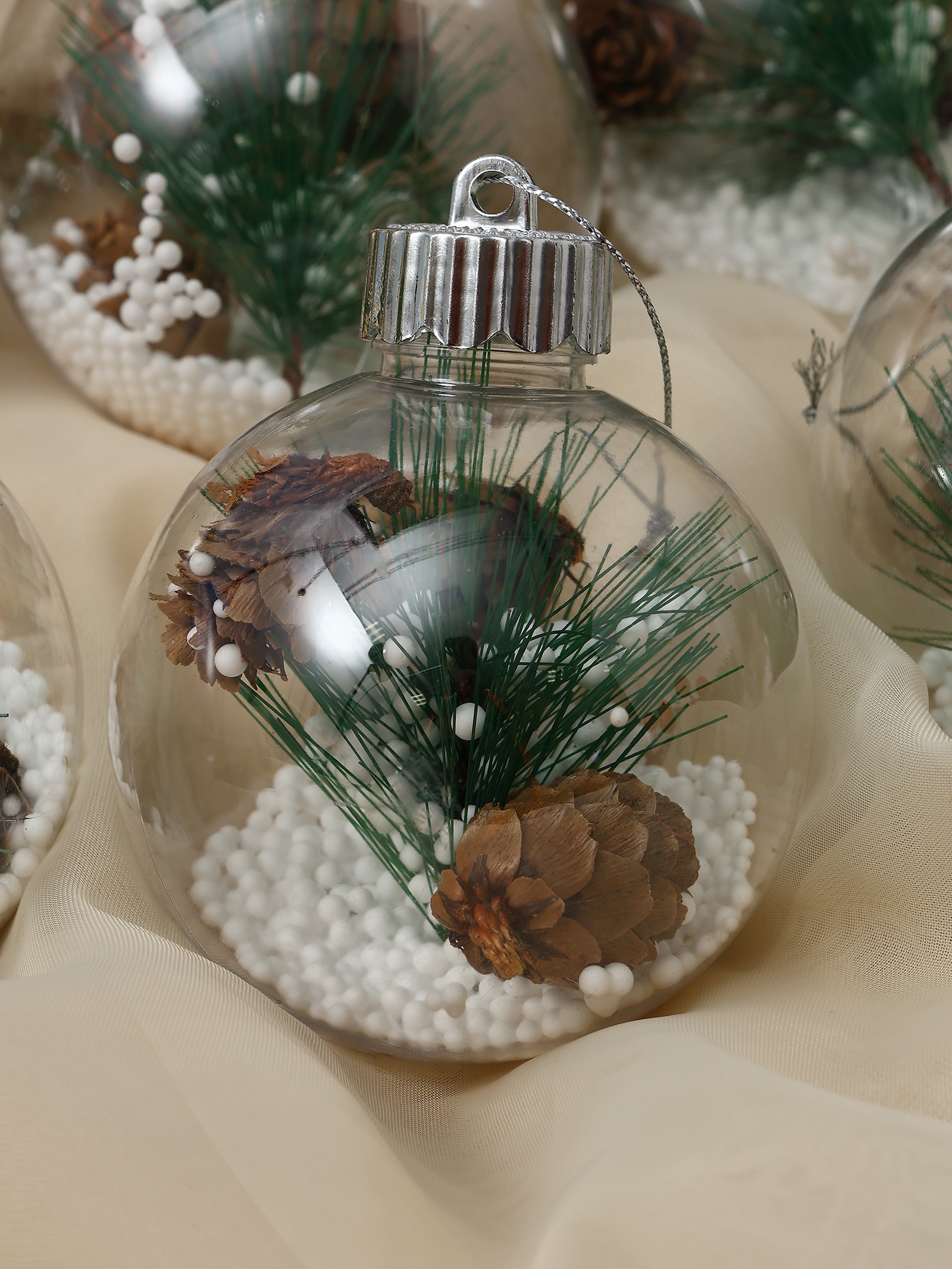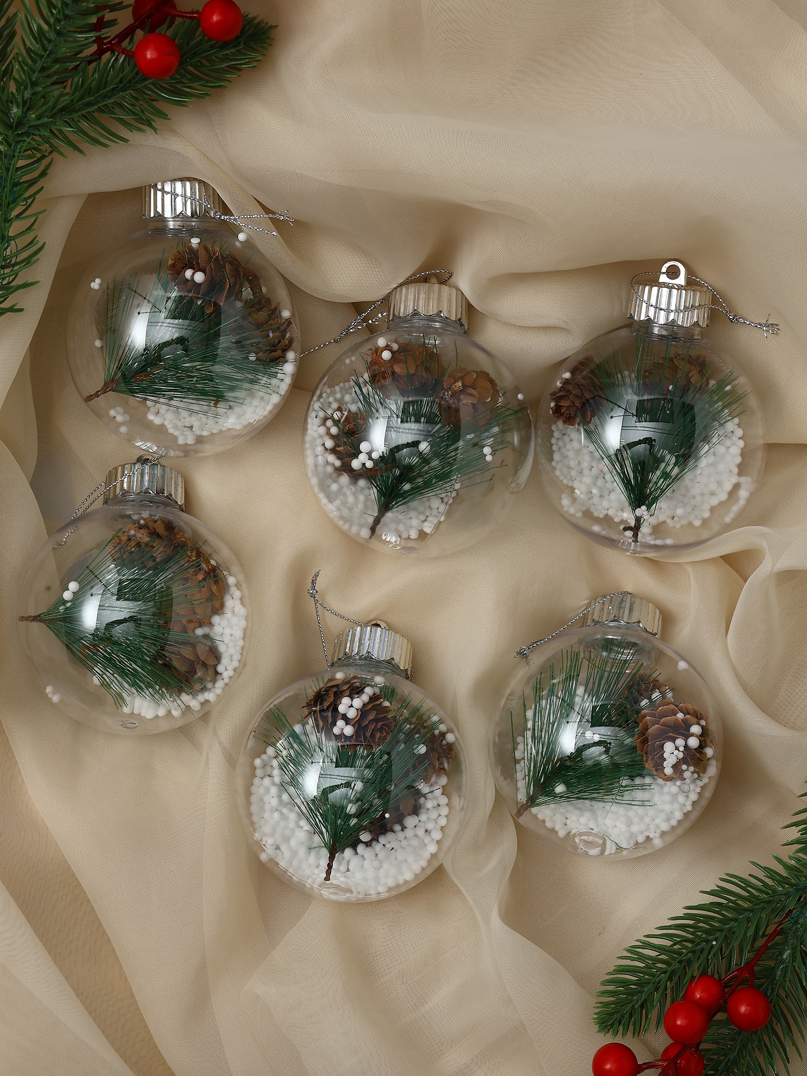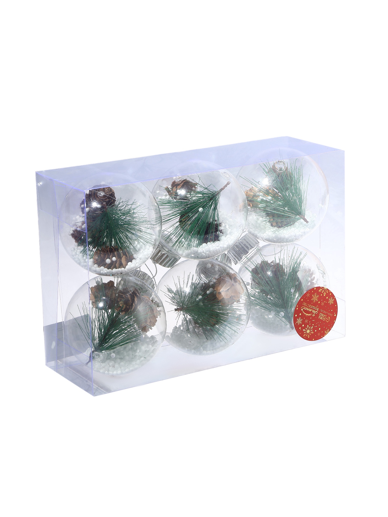 Ёлочные игрушки «льдинка - шишки», шары новогодние, D=8 см, набор 6 шт., прозрачный