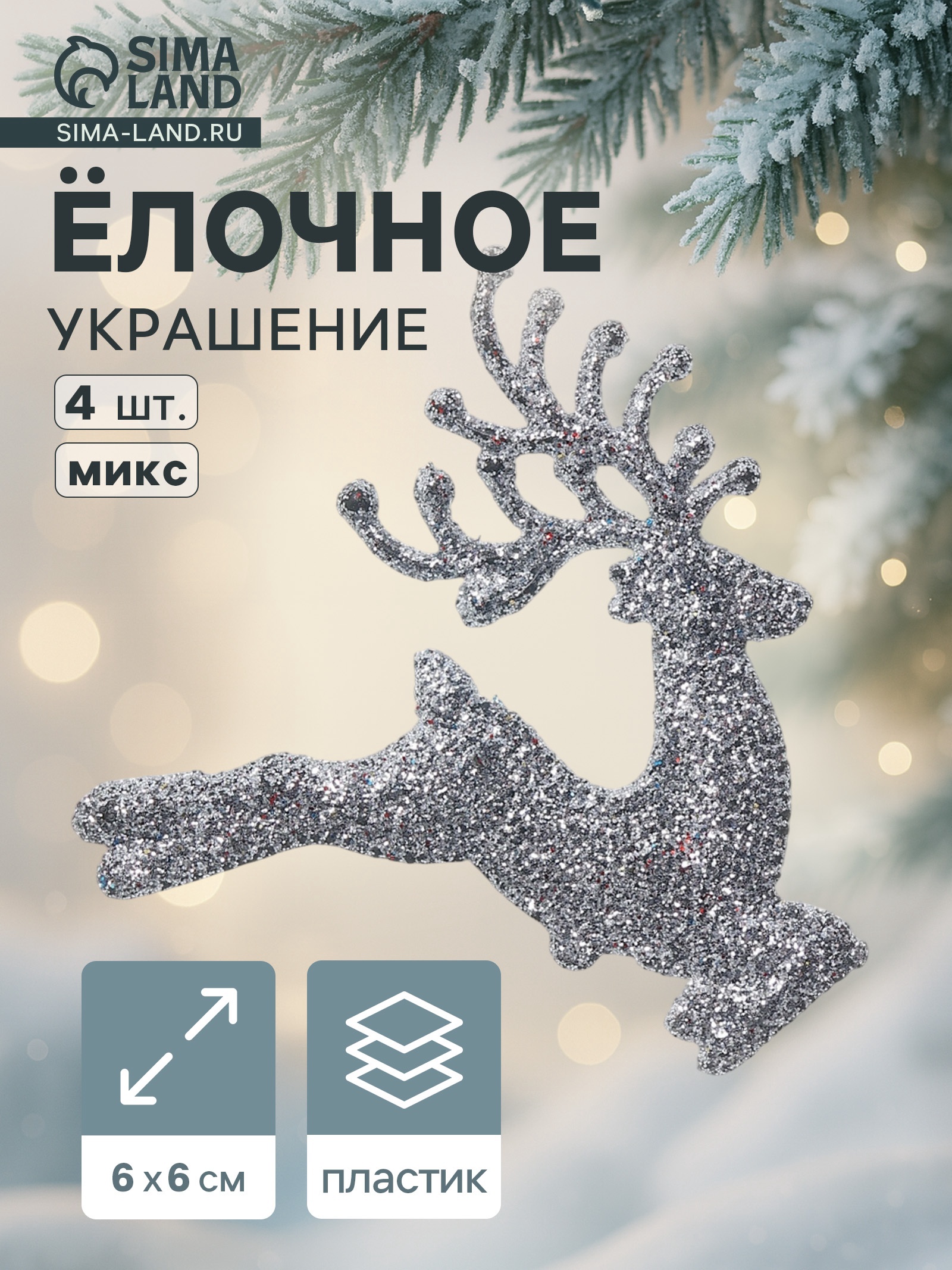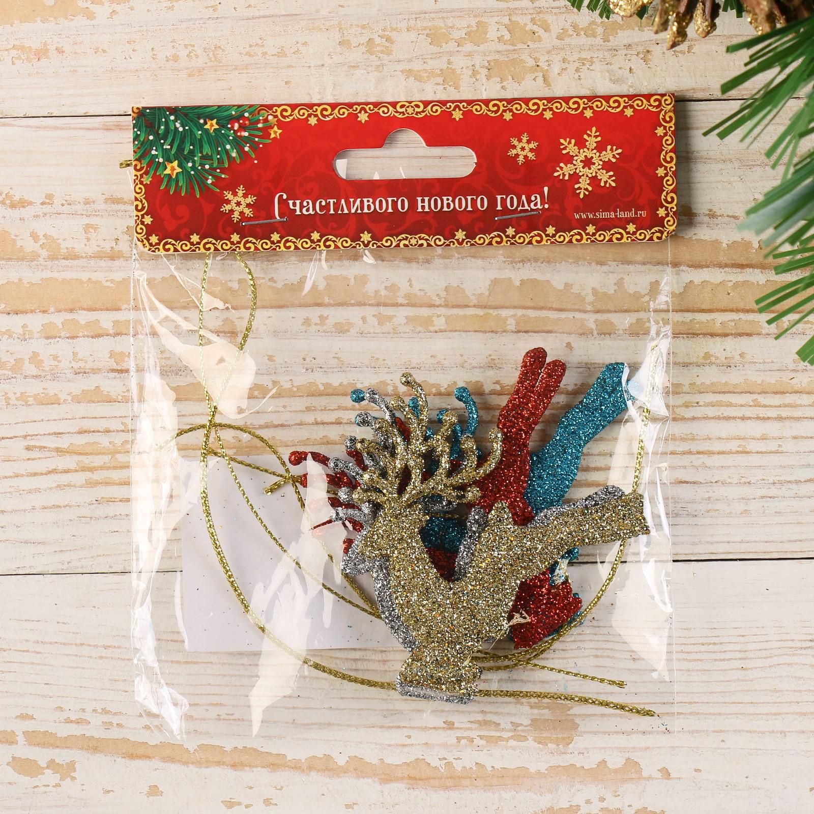 Ёлочные игрушки 4 шт. «зимнее волшебство. олень в прыжке» пластик, 6 6 см, микс
