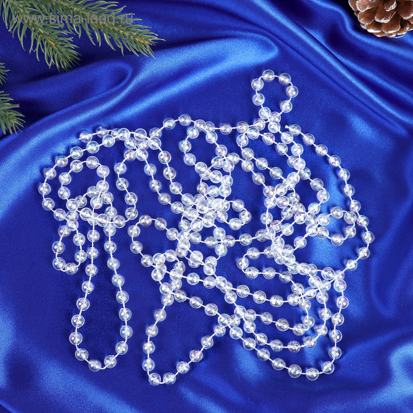 Бусы на ёлку «ледяные шарики», длина 2.7 м, D=7.5 мм, белые