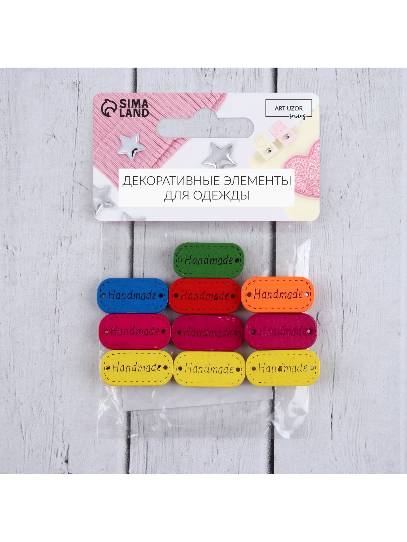 Набор нашивок из дерева hand made, 2.4 1.2 см, 10 шт., микс. Набор деревянных нашивок Handmade — это идеальное дополнение для тех, кто ценит стиль и индивидуальность в мелочах. Эти бирки, выполненные из экологичного дерева, добавят уникальности и тепла вашим проектам, будь то одежда, аксессуары или предметы интерьера. Они не просто украшают, а превращаются в мелкие, но значимые акценты, раскрывающие вашу креативную натуру. Особенности продукта Комплектация из 10 единиц разнообразного дизайна. Миниатюрный размер: 2,4 х 1,2 см — идеально подходит для стилистического декора. Высококачественный материал: долговечное дерево. Универсальное применение: от одежды до домашнего декора.Декорируйте с вдохновением Каждая из этих деревянных нашивок — это возможность выразить свои творческие идеи. С легкостью украшая любые изделия, такие бирки сделают проекты более естественными и стильными. Их разнообразие позволяет каждому найти что-то, что подходит именно ему, превращая рутинные вещи в шедевры. Набор:Да|Цвет:МИКС|В наборе, шт.:10|Материал:Дерево|Страна:Китай  развернуть описание ▼
