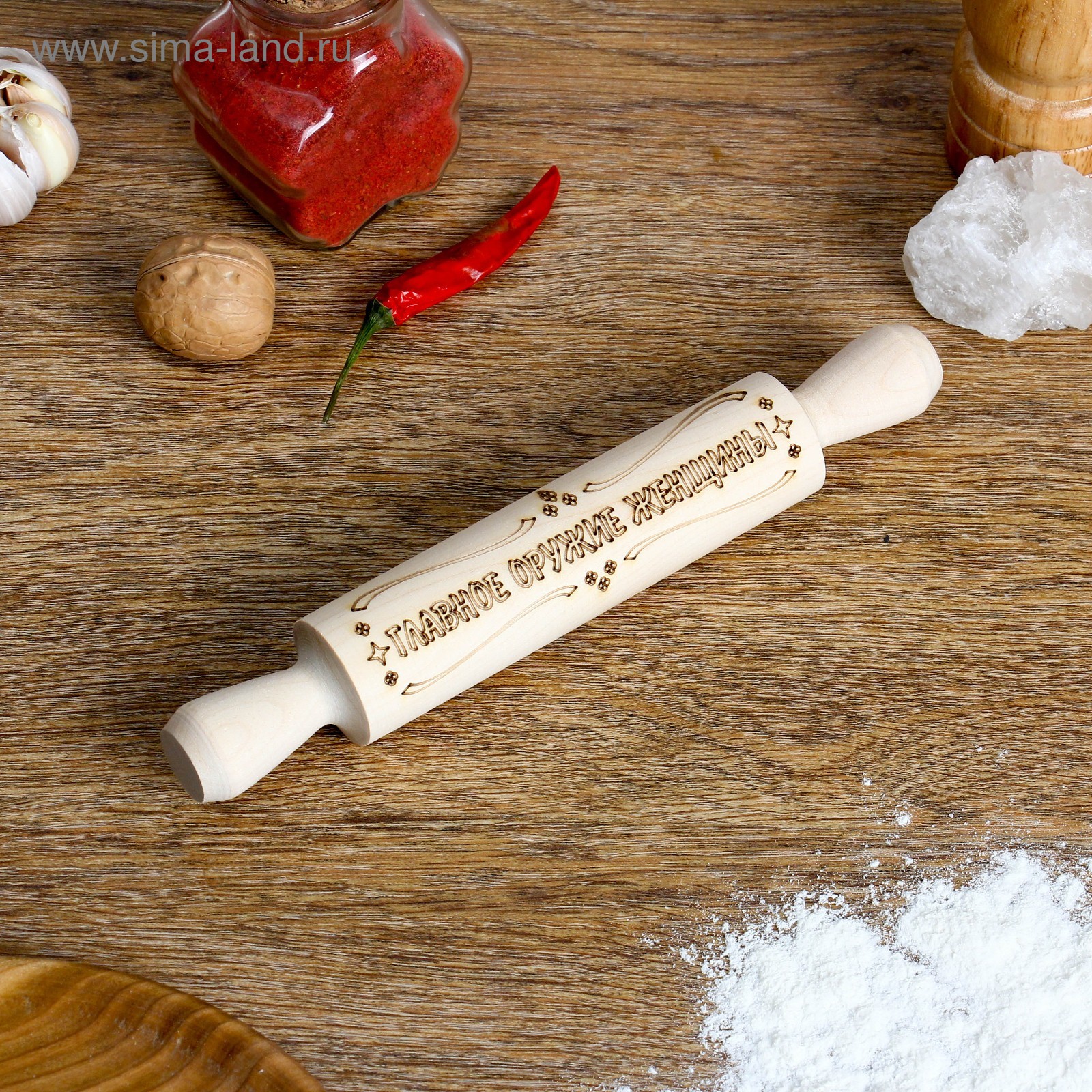 Скалка с надписью "главное оружие женщины", берёза, 21,5x3,5 см