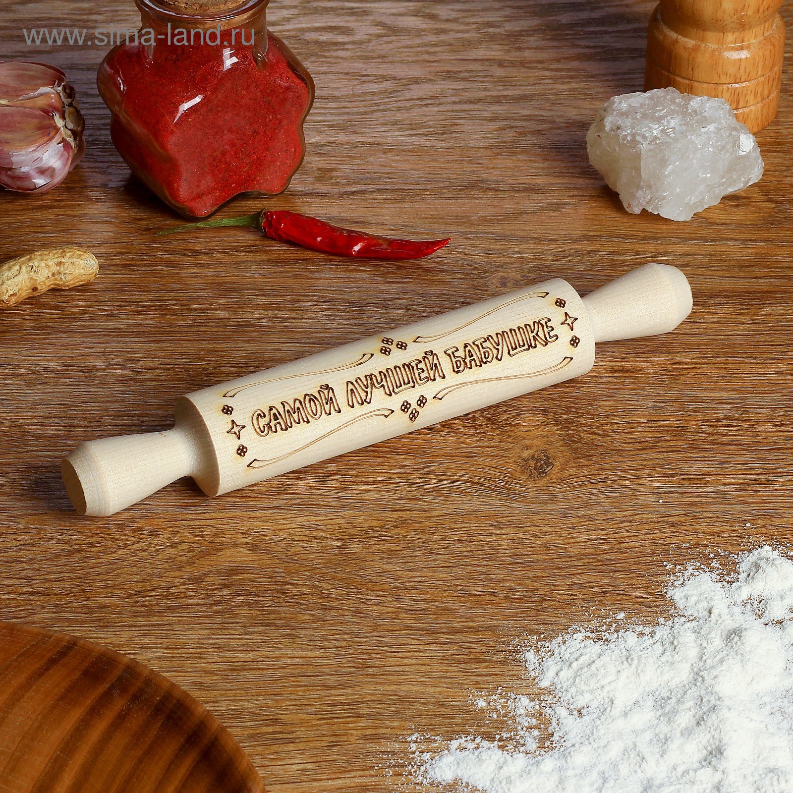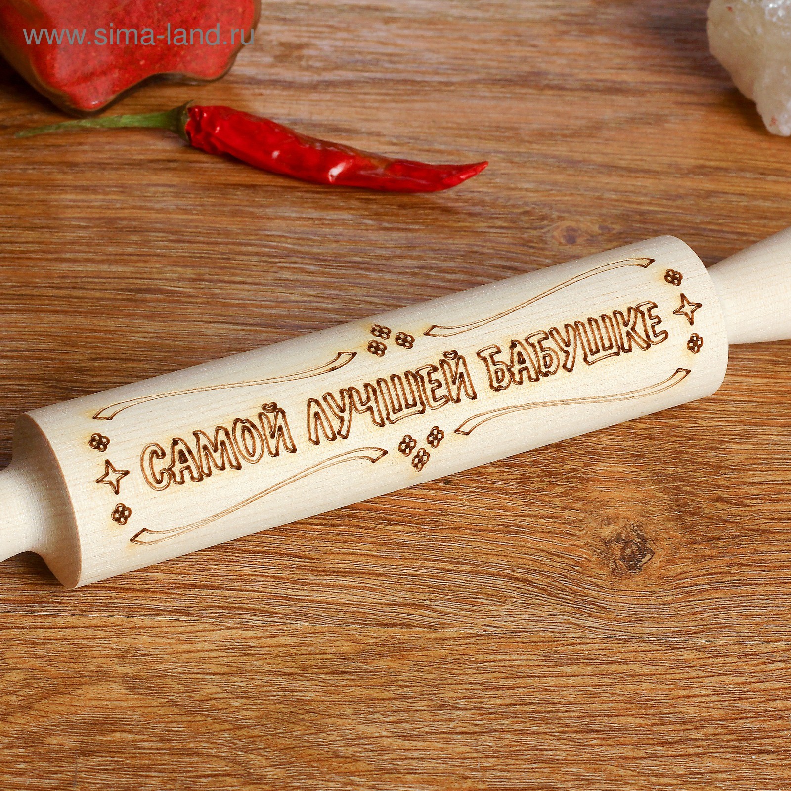 Скалка с надписью "самой лучшей бабушке", берёза, 21,5x3,5 см