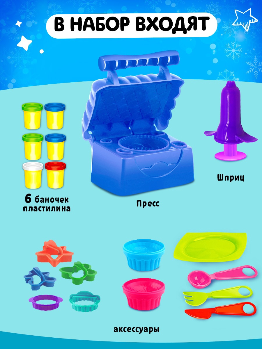 Игровой набор для игры с пластилином «новогодние угощения», 6 баночек с массой для лепки, формочки, пресс