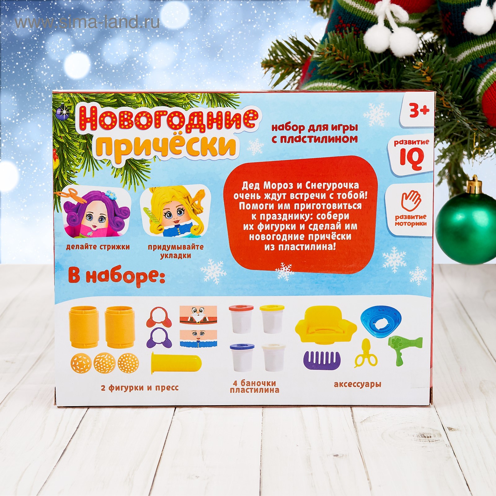 Набор для игры с пластилином «новогодние причёски», 4 баночки пластилина