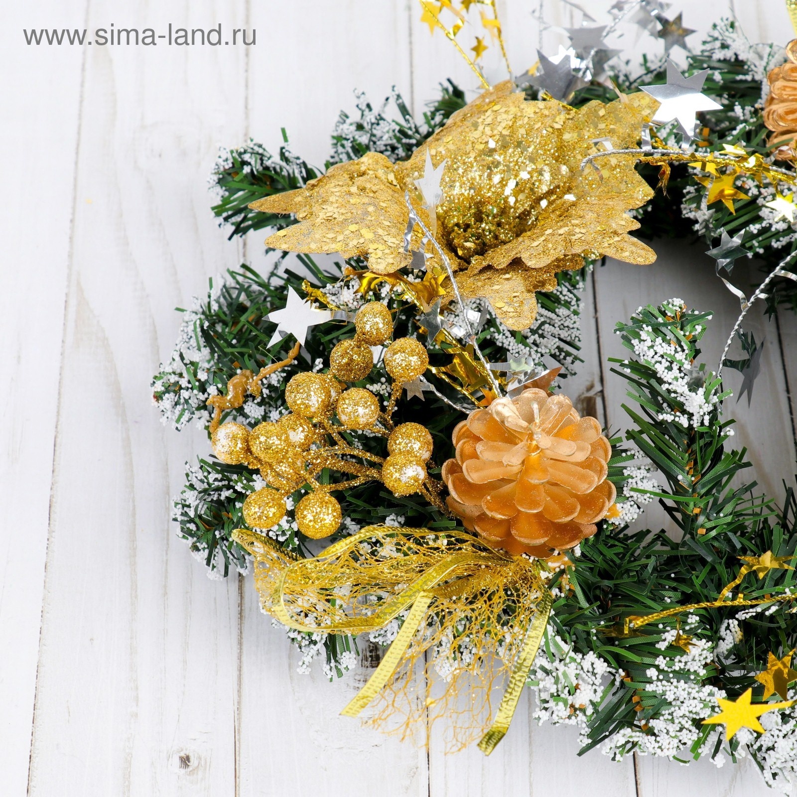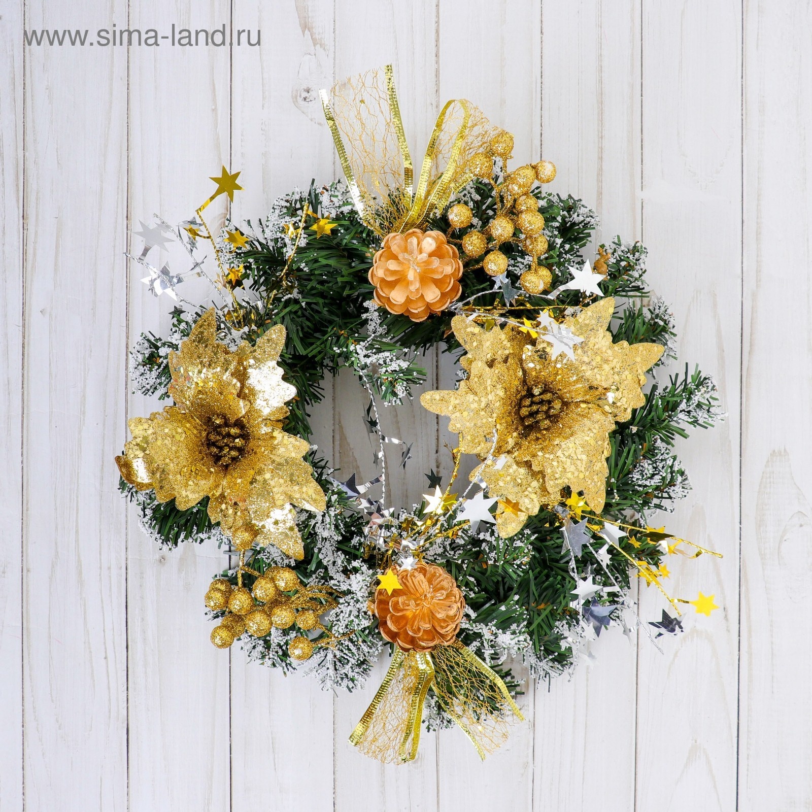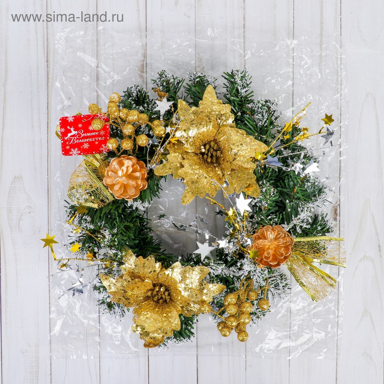Венок новогодний d=24 см «зимнее волшебство. цветы и шишки», золотистый. Позвольте Вашему дому засиять в новогодней атмосфере с очаровательными украшениями. Созданные для тех, кто ценит тепло и уют зимних праздников. Венок станет ярким акцентом вашего интерьера. Яркий акцент: насыщенные тона создают контраст, привлекая внимание и добавляя настроения.Универсальное применение: идеально подходит для оформления входной двери, камина или стены, где он будет радовать Вас и Ваших близких.Создаёт атмосферу: благодаря дизайну, венок способен мгновенно передать дух праздника и согреть домашнюю обстановку.Пусть каждый уголок Вашего дома излучает радость и гармонию незабываемыми украшениями! Цвет:Золотистый|Диаметр, см:24|Символ года:Нет|Тематика праздника:Новый год|Материал:Пластик|Материал:Текстиль|Стиль:Ар-деко|Стиль:Классика|Стиль:Новогоднее барокко|Страна:Китай  развернуть описание ▼