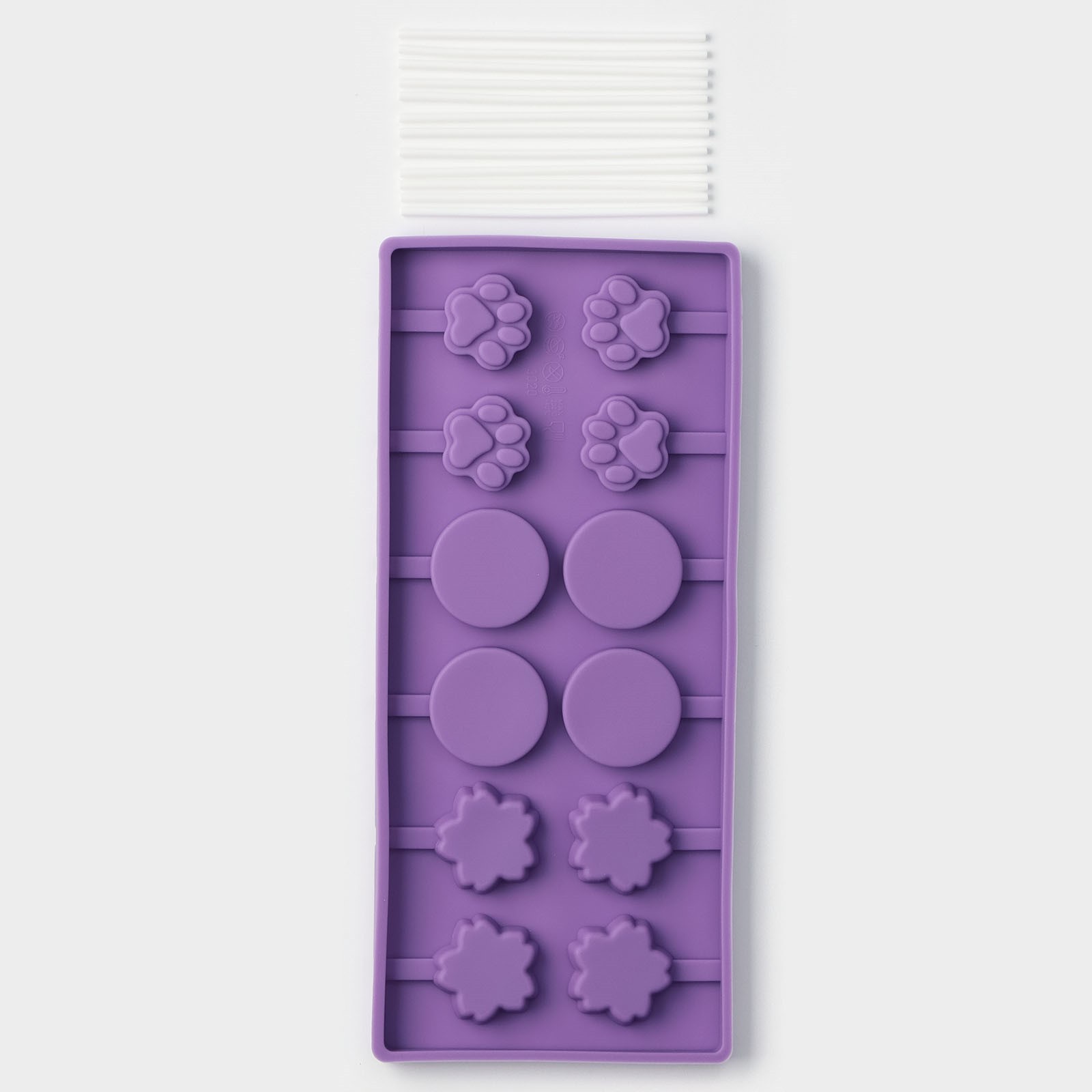 Форма силиконовая для леденцов доляна «вкусная сладость», 26,5x11,5 см, 12 ячеек (d=4 см), с палочками, цвет микс