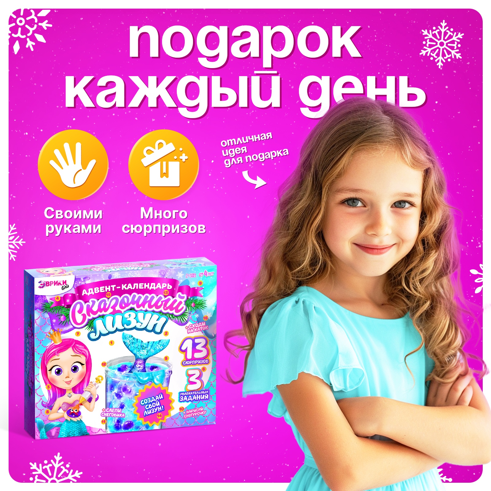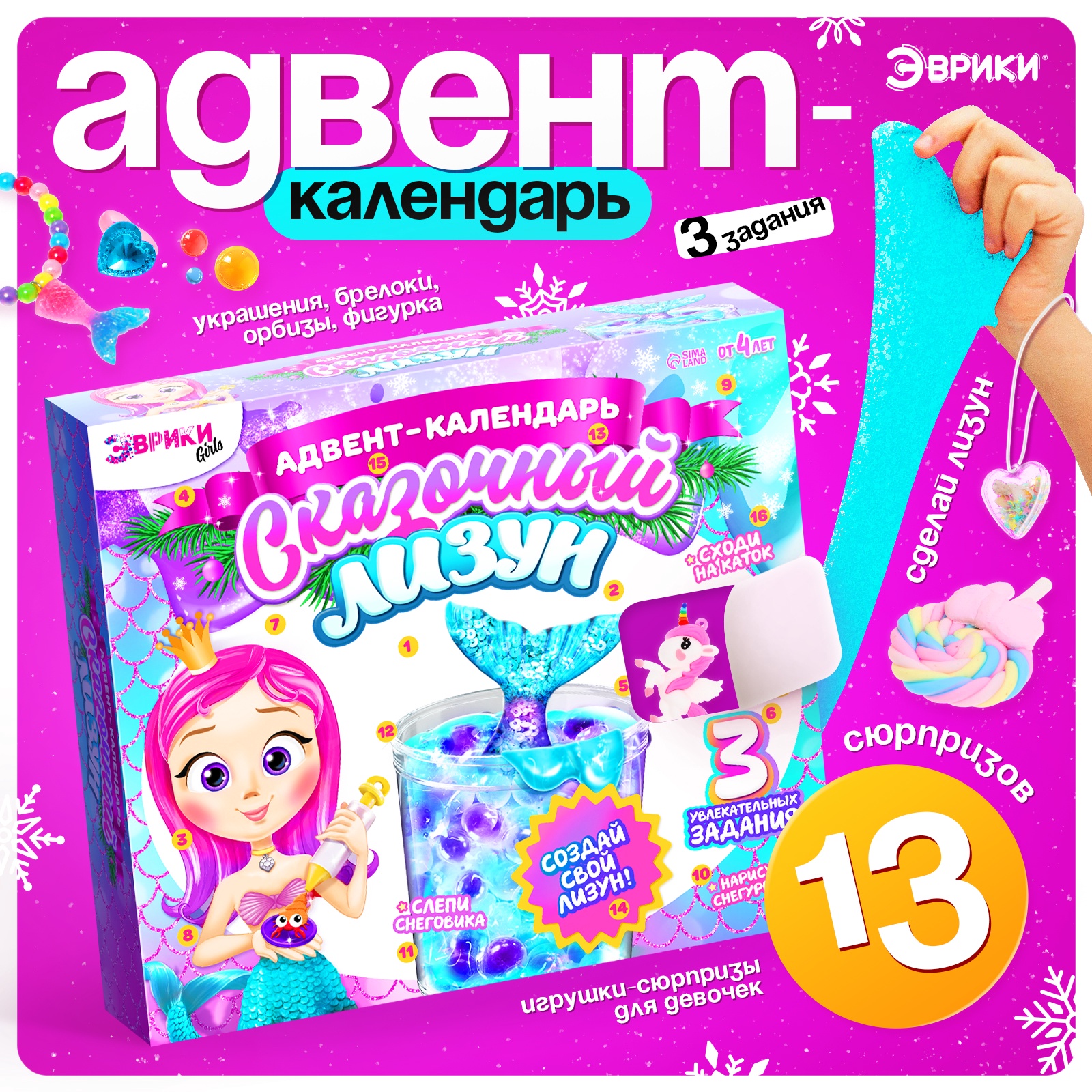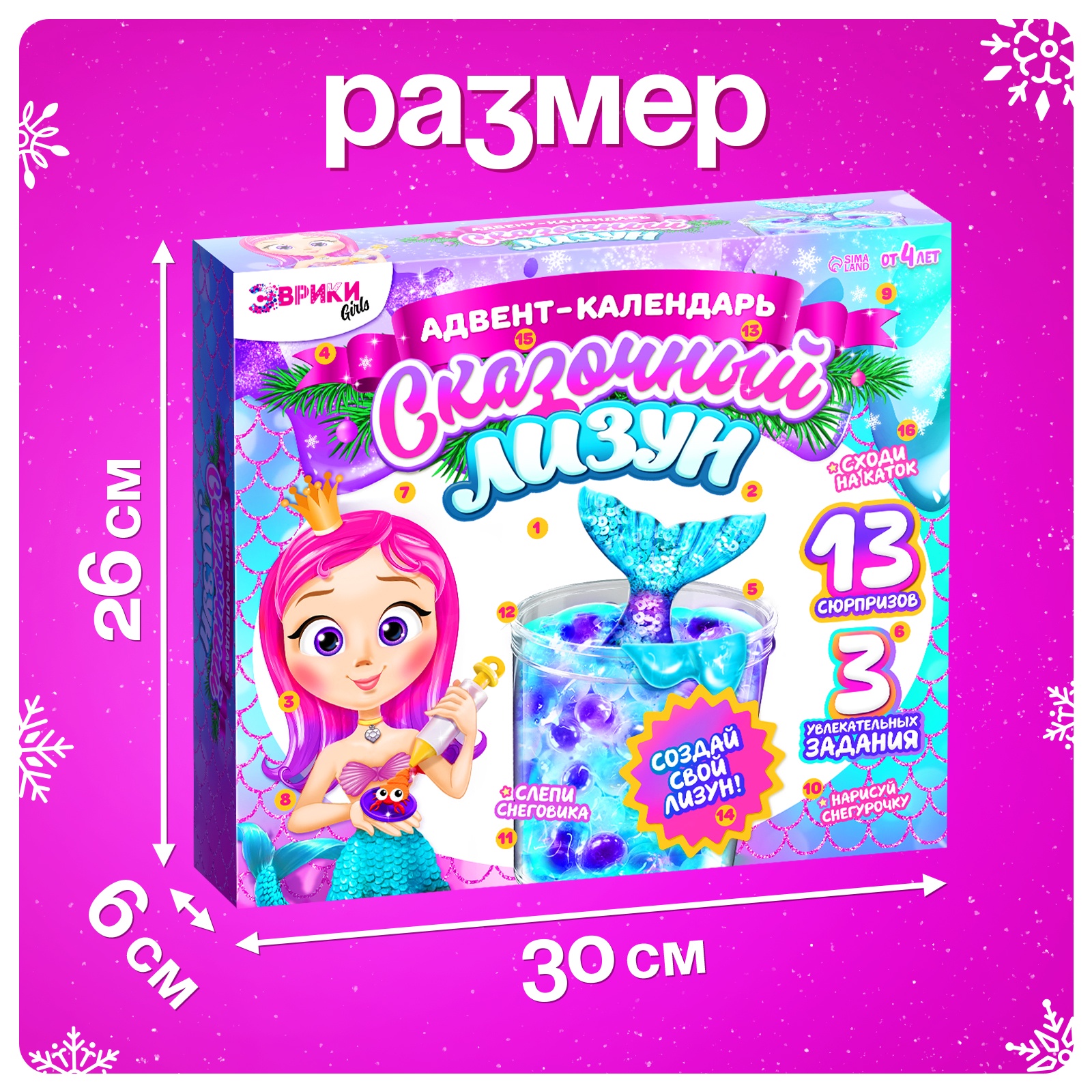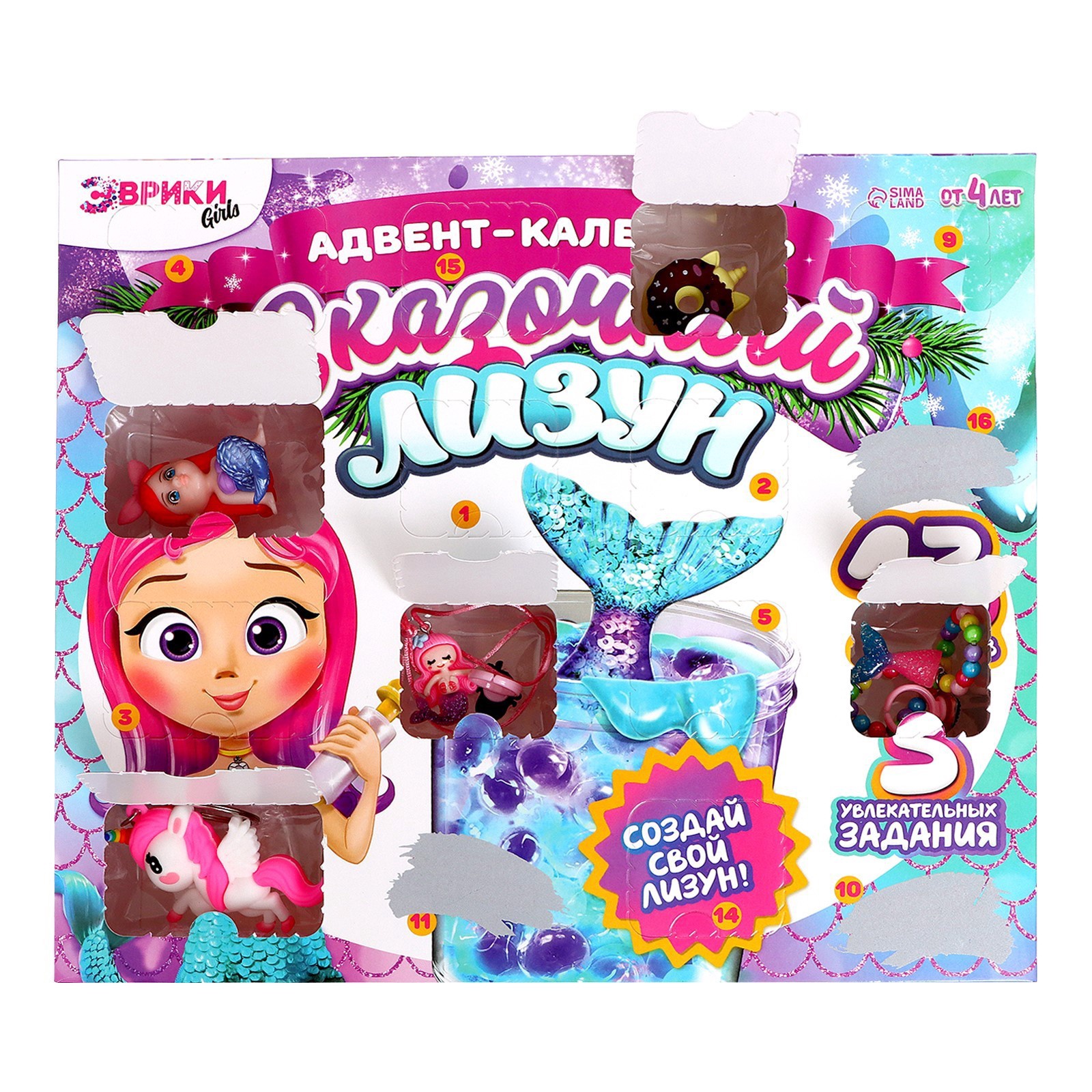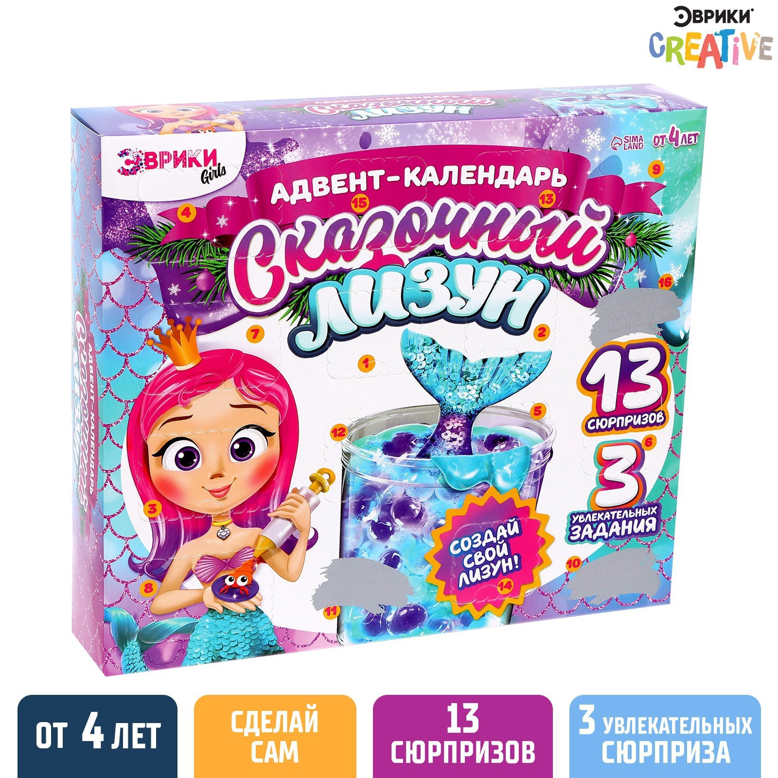 Адвент - календарь новогодний «сказочный лизун», детский, 13 окошек с подарками