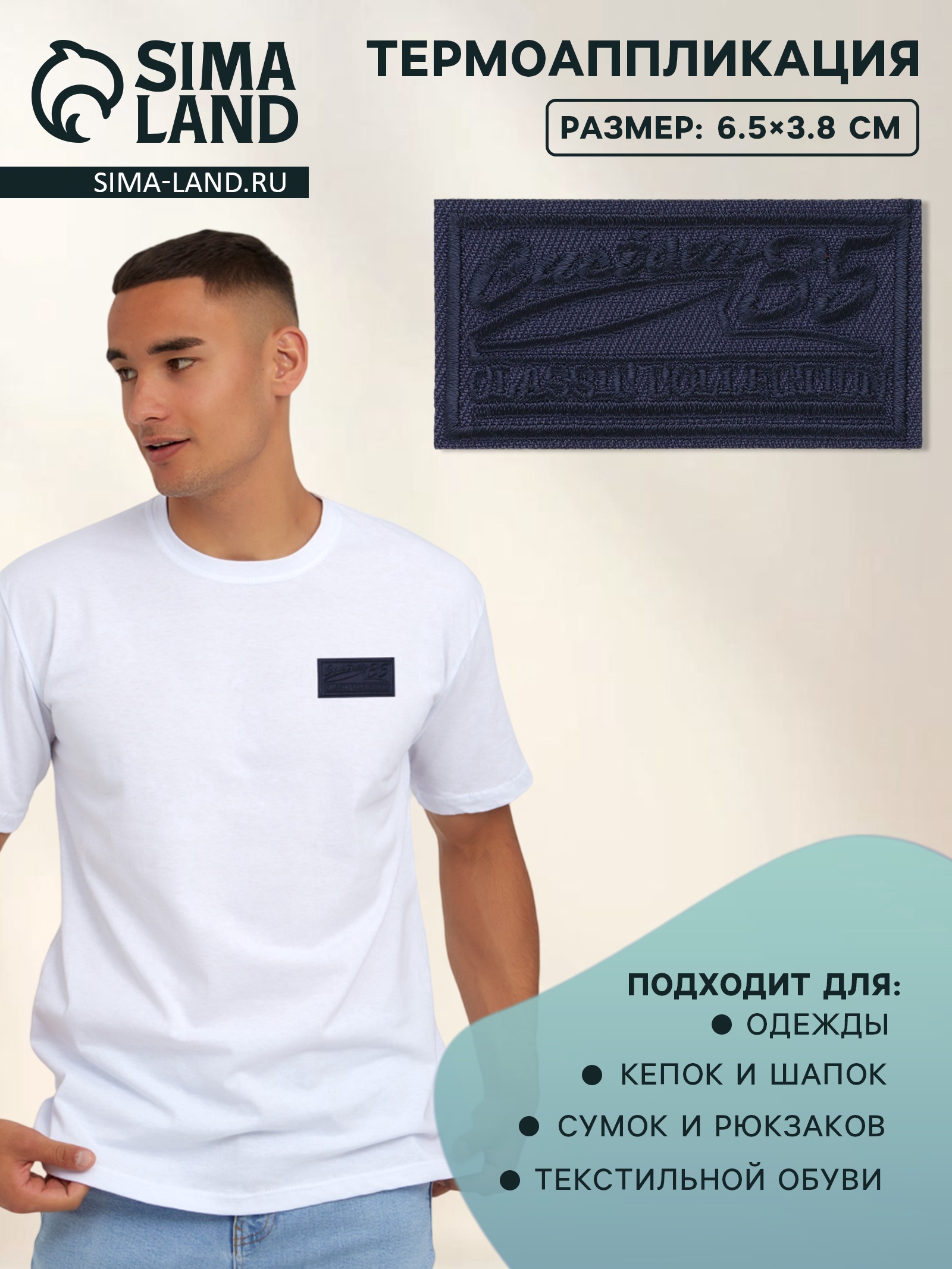 Тёмно-синяя термонаклейка прямоугольной формы – универсальный декор для обновления одежды и аксессуаров. Размер 6.5 3.8 см хорошо смотрится на рукавах, груди или спинке футболок. Полиэстеровая основа сохраняет цвет после множества стирок.