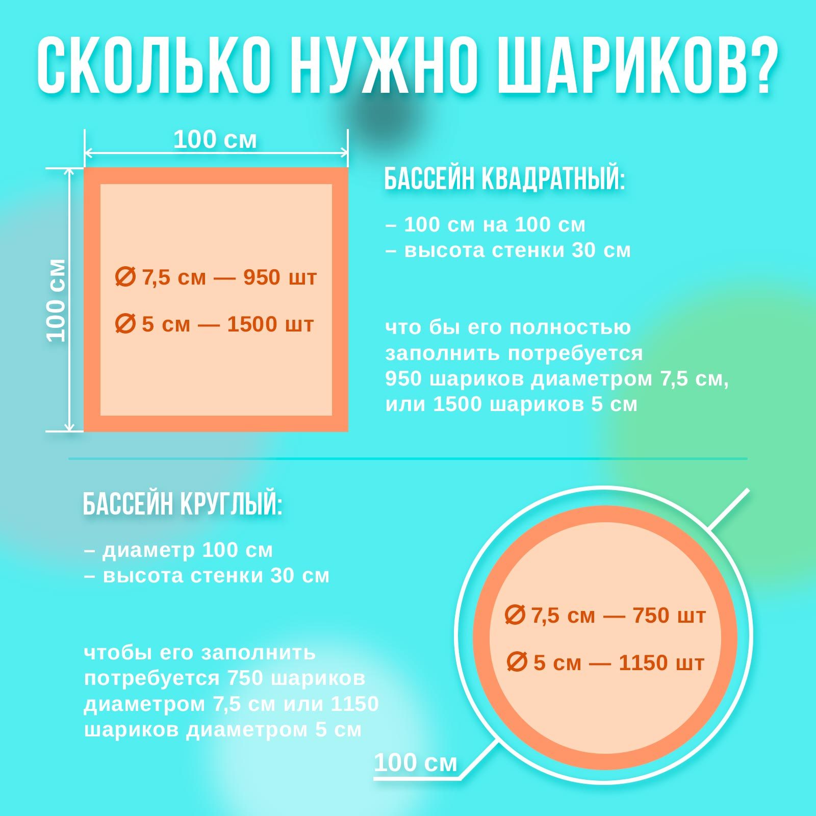 Шарики для сухого бассейна 150 шт, цвета: бирюзовый, серый, белый, чёрный, салатовый, бежевый, диаметр шара 7,5 см. Яркие разноцветные шарики для сухого бассейна добавят в детские игры больше позитива, веселья и азарта! Выполнены в сочных глянцевых красках, они отлично развивают у малышей восприятие цвета. Кругляшками можно наполнить детскую палатку с дном или бассейн. В них ребёнок будет «купаться», валяться, а также подбрасывать лёгкие шарики вверх и учиться их ловить. В игре у юных непосед развиваются такие полезные навыки, как координация движений, меткость, ловкость и умение взаимодействовать с другими детьми. Полная безопасность Товар разработан и произведён в России из российских материалов и соответствует всем ГОСТам, имеет множество преимуществ. Особенности: Все детали сделаны из особого гипоаллергенного полиэтилена, который не выделяет вредных летучих веществ, в том числе и при нагревании.Безопасный и прочный материал практически невозможно сломать, он выдерживает большие нагрузки. Если наступить на любую деталь, она просто деформируется, а не сломается, что исключает любую возможность пораниться.Полиэтилен и красители в составе шариков — сырьё, не подвергшееся переработке, а значит, совершенно безопасное для нежной детской кожи.Качество, подтверждённое сертификатами Строгий контроль на всех этапах, начиная от производства, заканчивая упаковкой товара, исключает брак и делает шарики действительно качественными. Стыки деталей обрабатываются вручную, а затем проходят дополнительную проверку на отсутствие острых частей. Имеет сертификат соответствия ЕАС. Диаметр одного элемента 7,5 см. Набор предназначен для деток от 1 года. Цвет:Бирюзовый|Цвет:Чёрный|Цвет:Серый|Цвет:Зелёный|Цвет:Бежевый|Цвет:Белый|Диаметр, см:7.5|Возраст:От 1.5 лет|В наборе, шт.:150|Страна:Россия  развернуть описание ▼